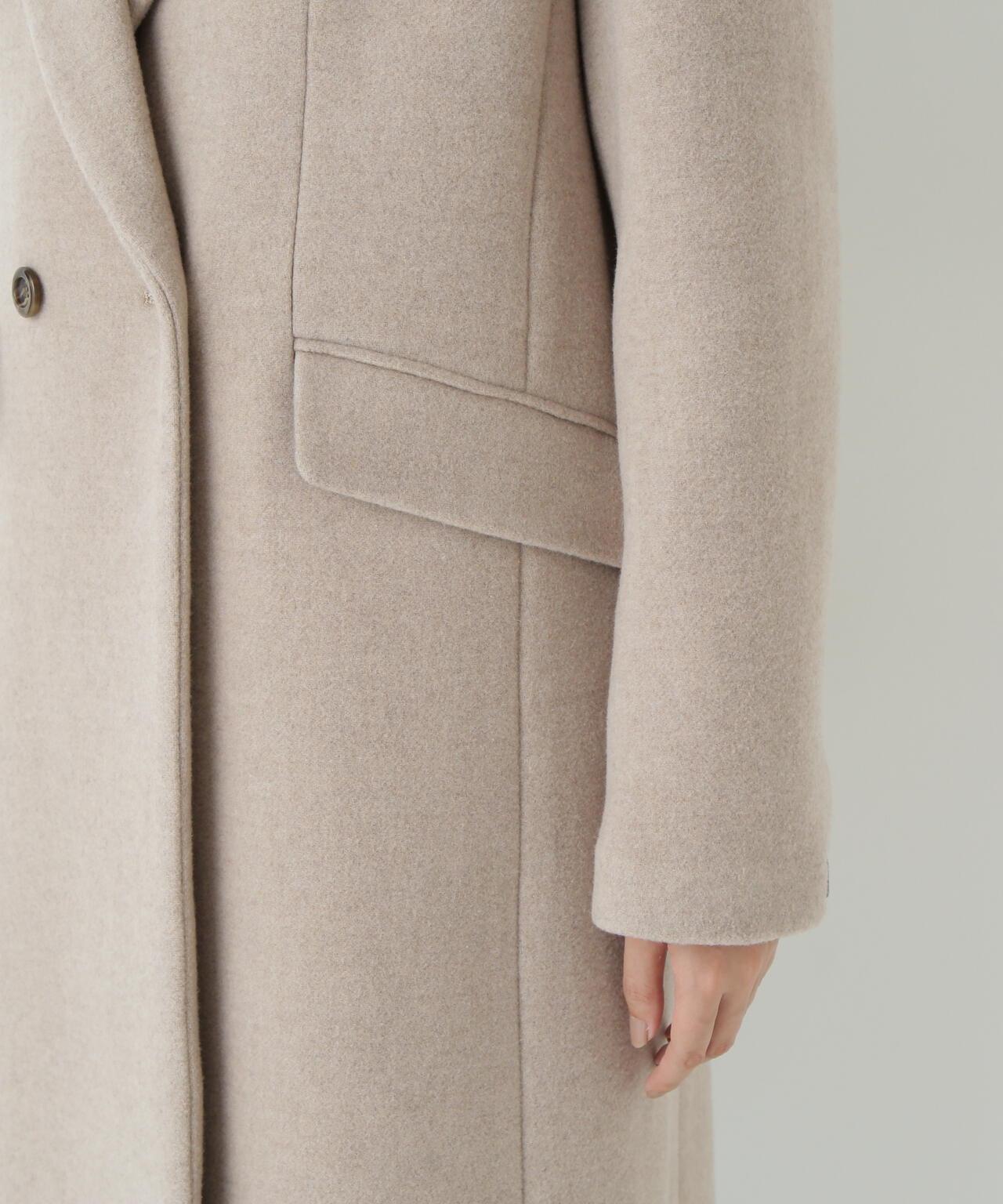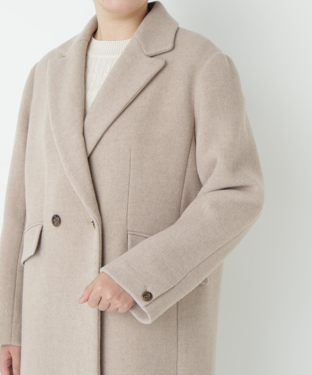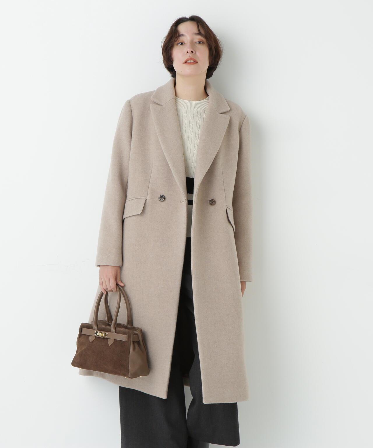 適用於上班和下班的雙排扣大衣 [設計要點] 這是一款整潔的雙排扣大衣,採用非常輕盈的雙馬賽克面料製成。袖襯、後襯和內袋均採用條紋設計,營造出豐滿的內部空間。雙層雙馬賽克面料柔軟蓬鬆。與外觀不同的是,這種面料非常輕盈。切斯特大衣是一款優雅的大衣,無論上班還是下班都可以穿著。這款大衣還建議搭配休閒派克大衣和牛仔褲,打造法式傳統冬季風格。