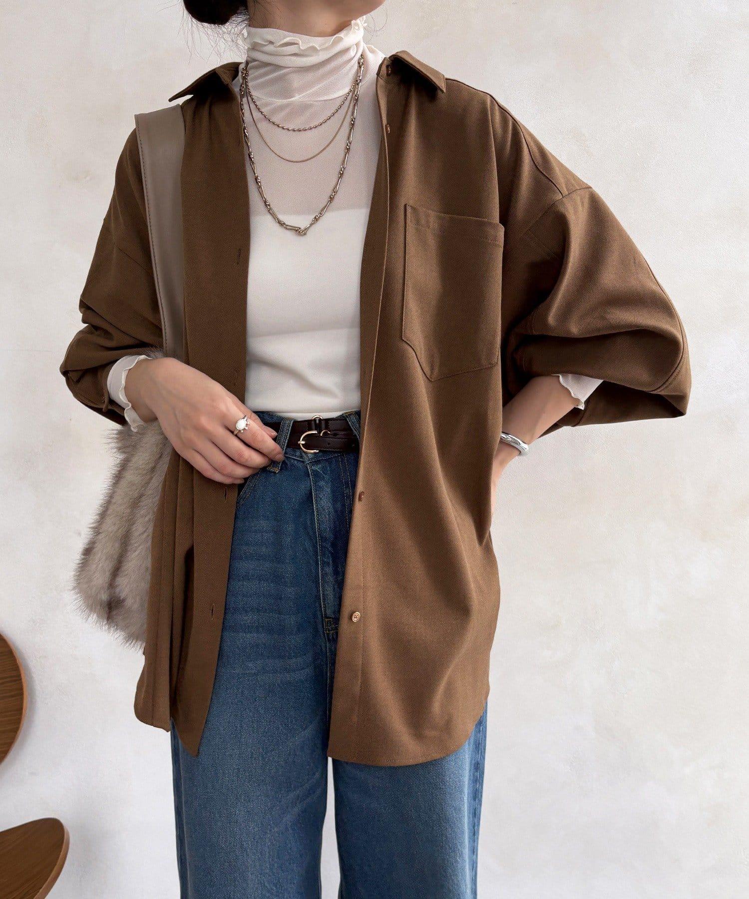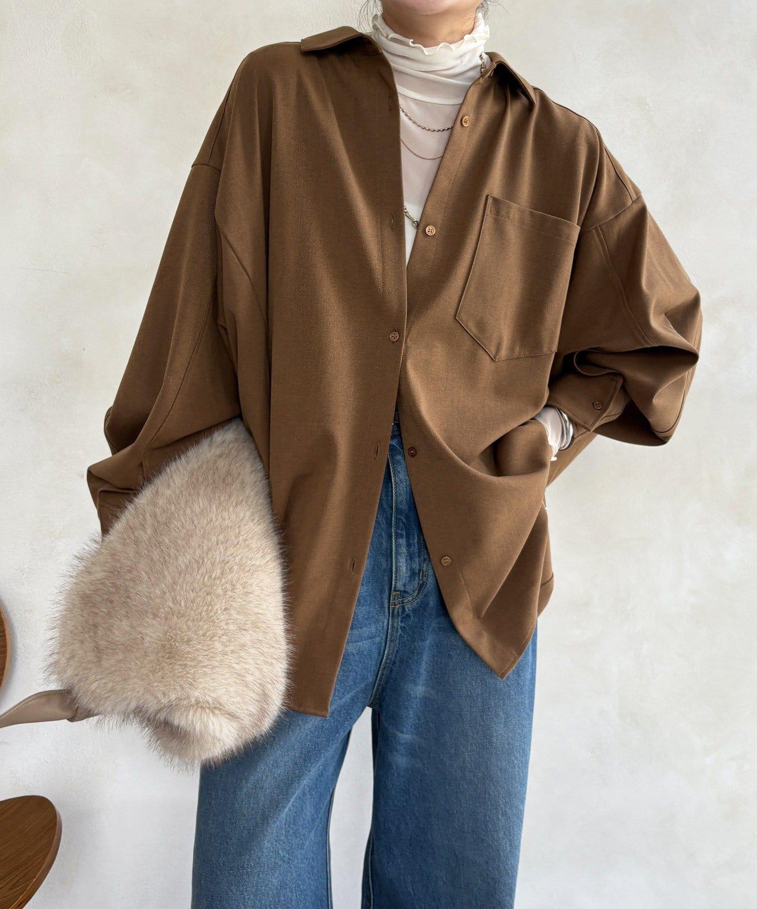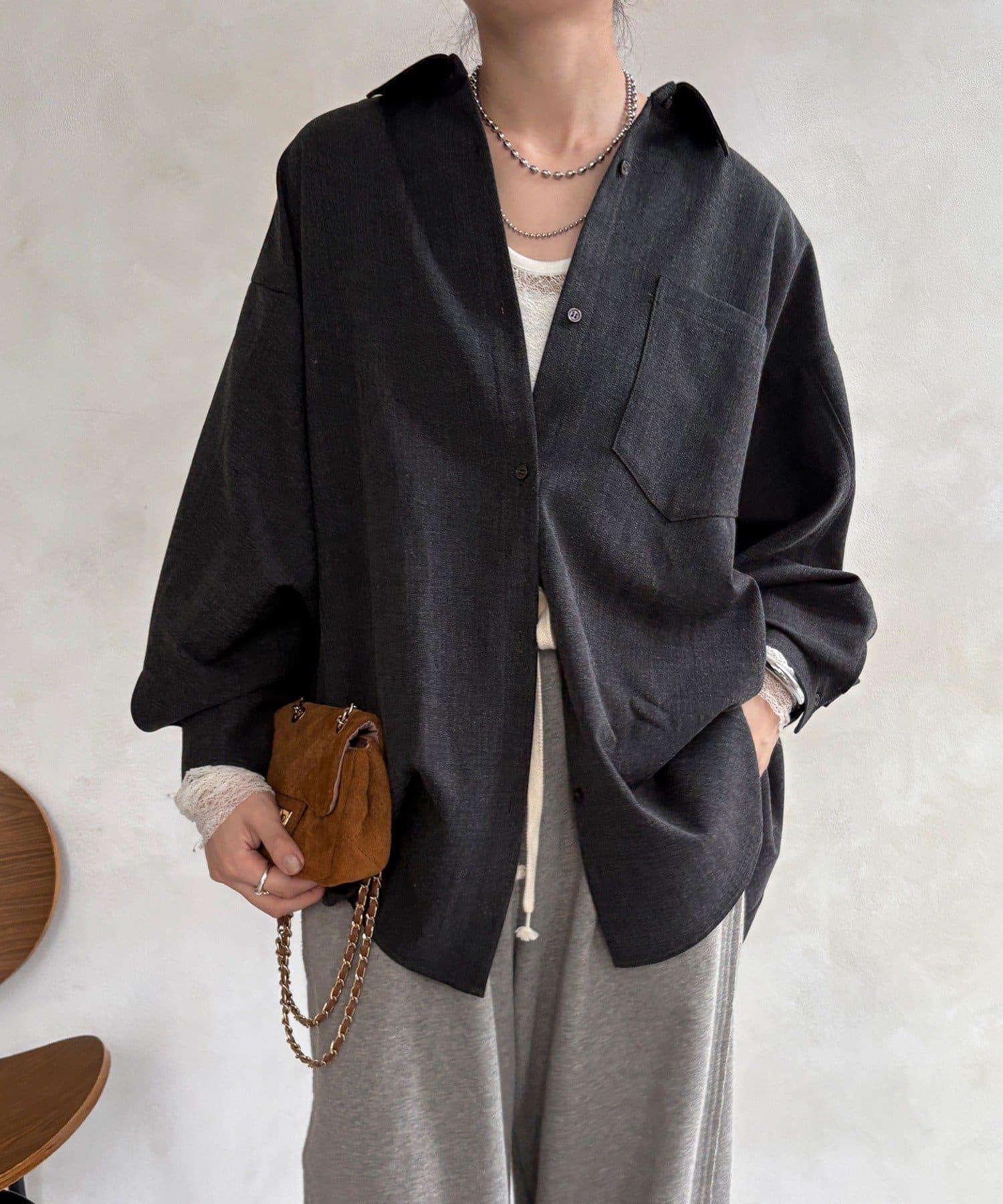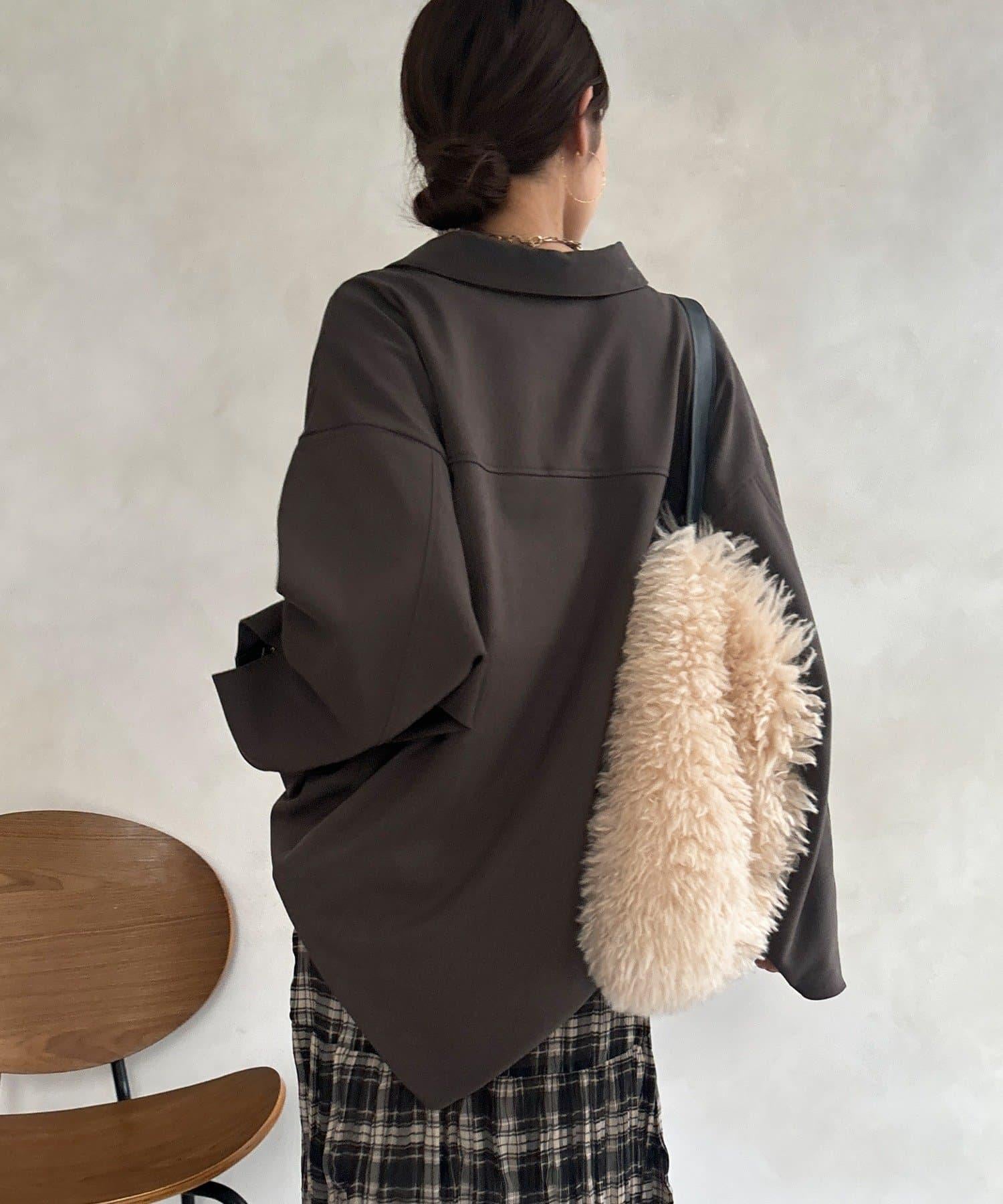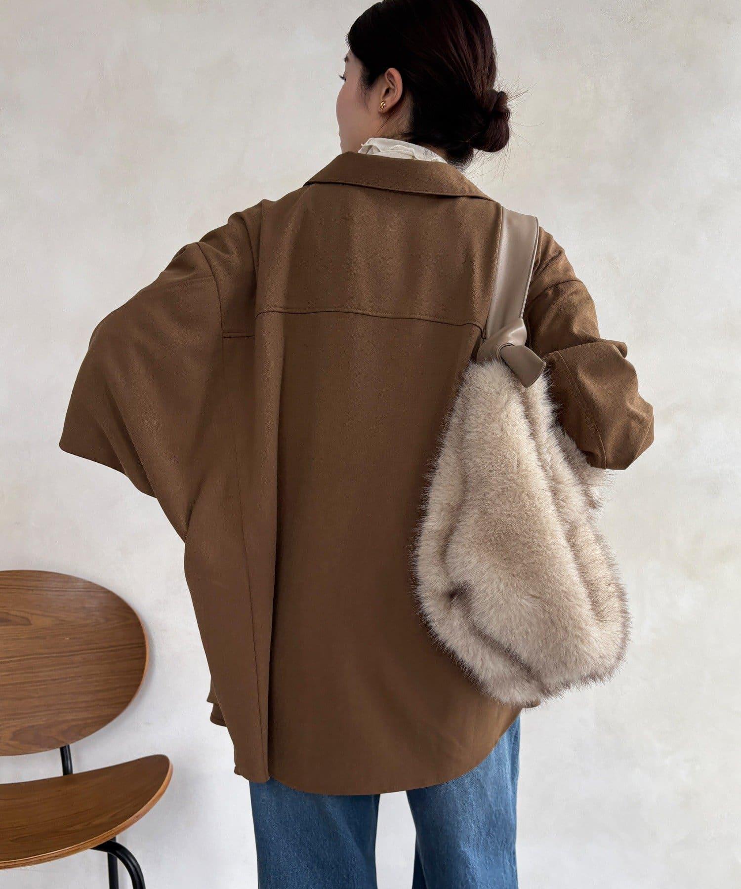 預約商品羊毛風寬鬆蝙蝠袖大襯衫