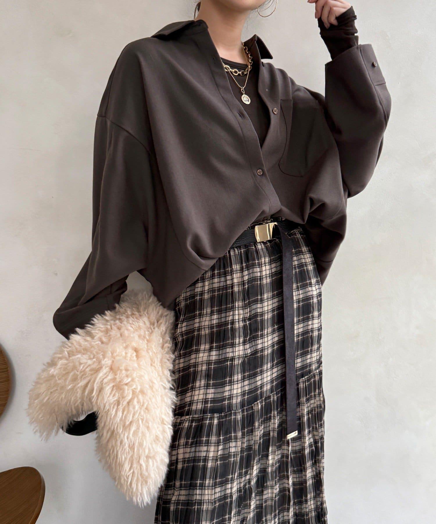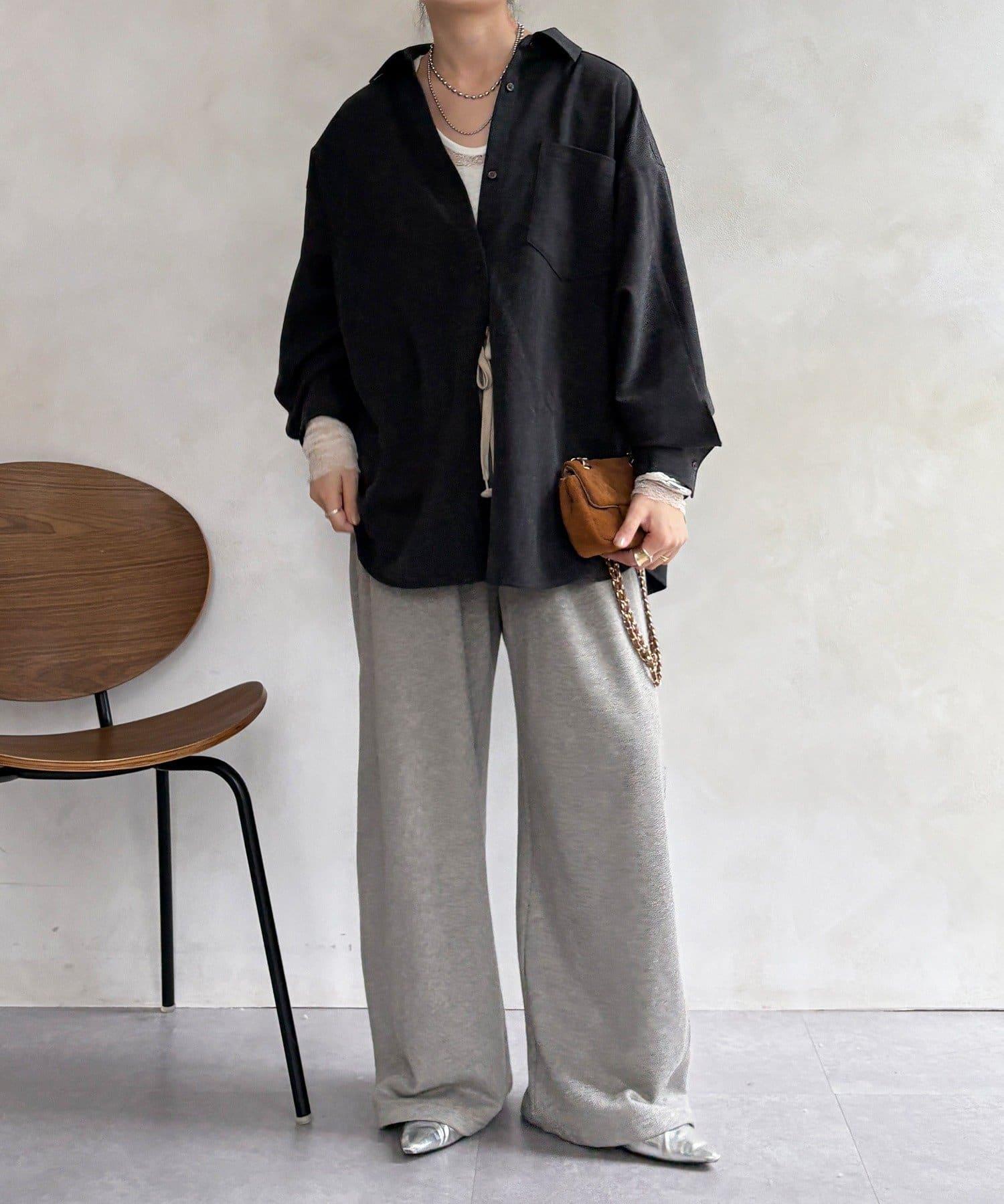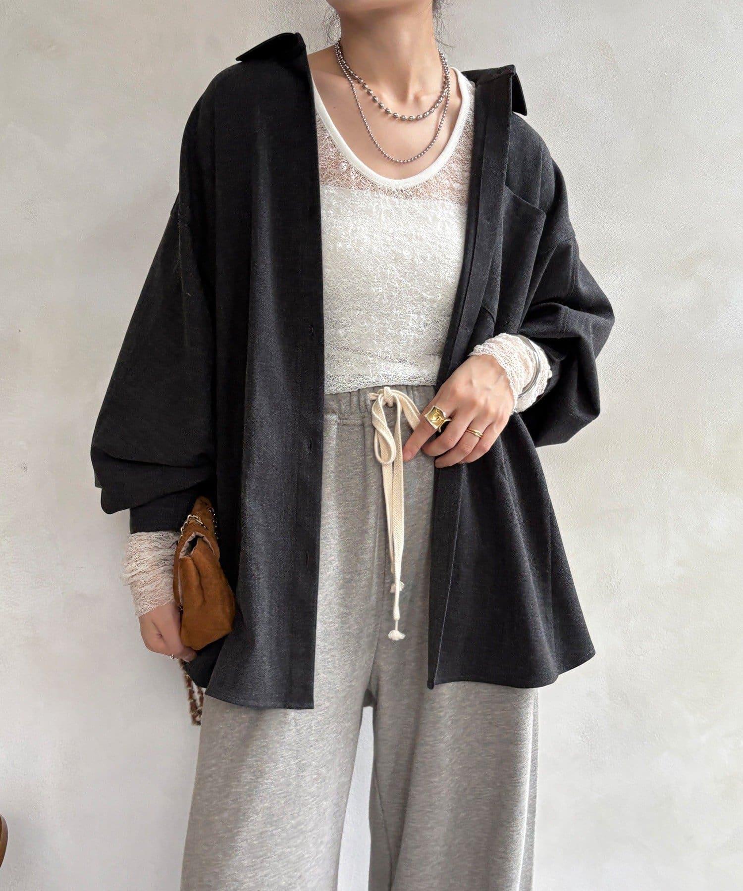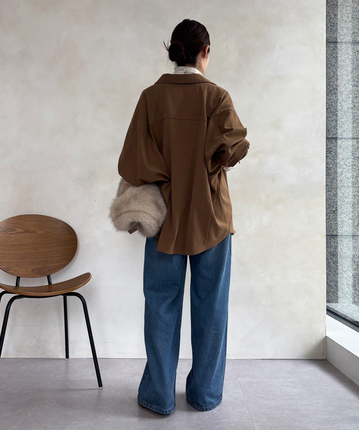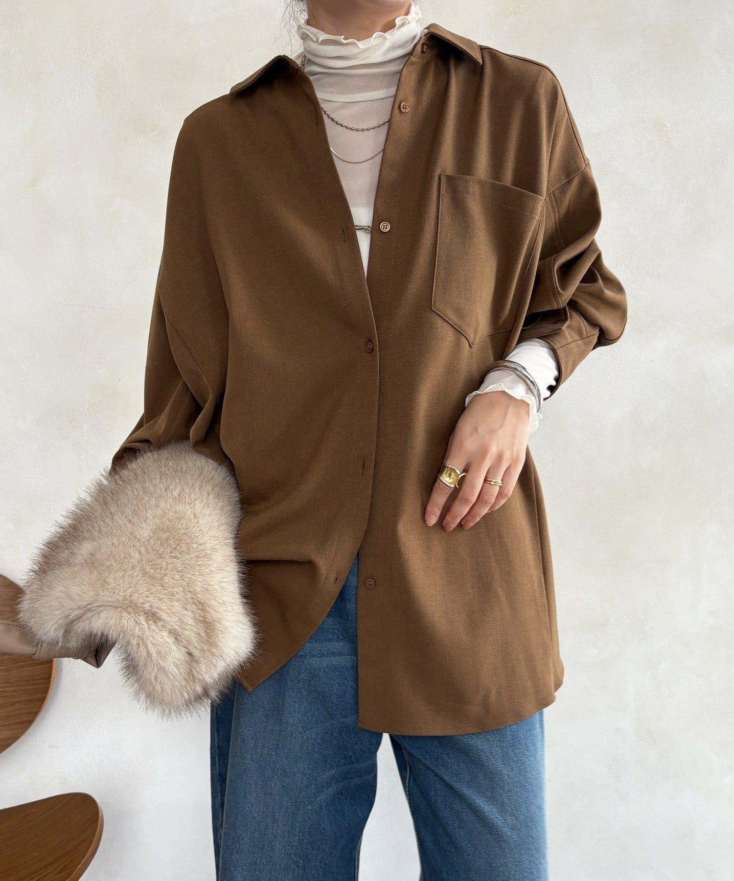 預約商品羊毛風寬鬆蝙蝠袖大襯衫
