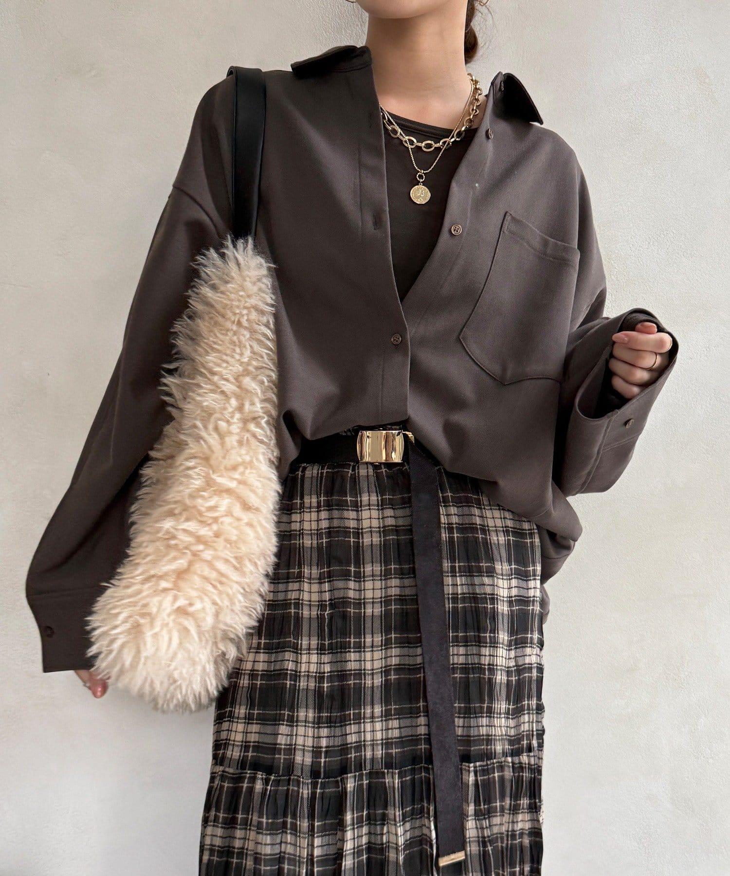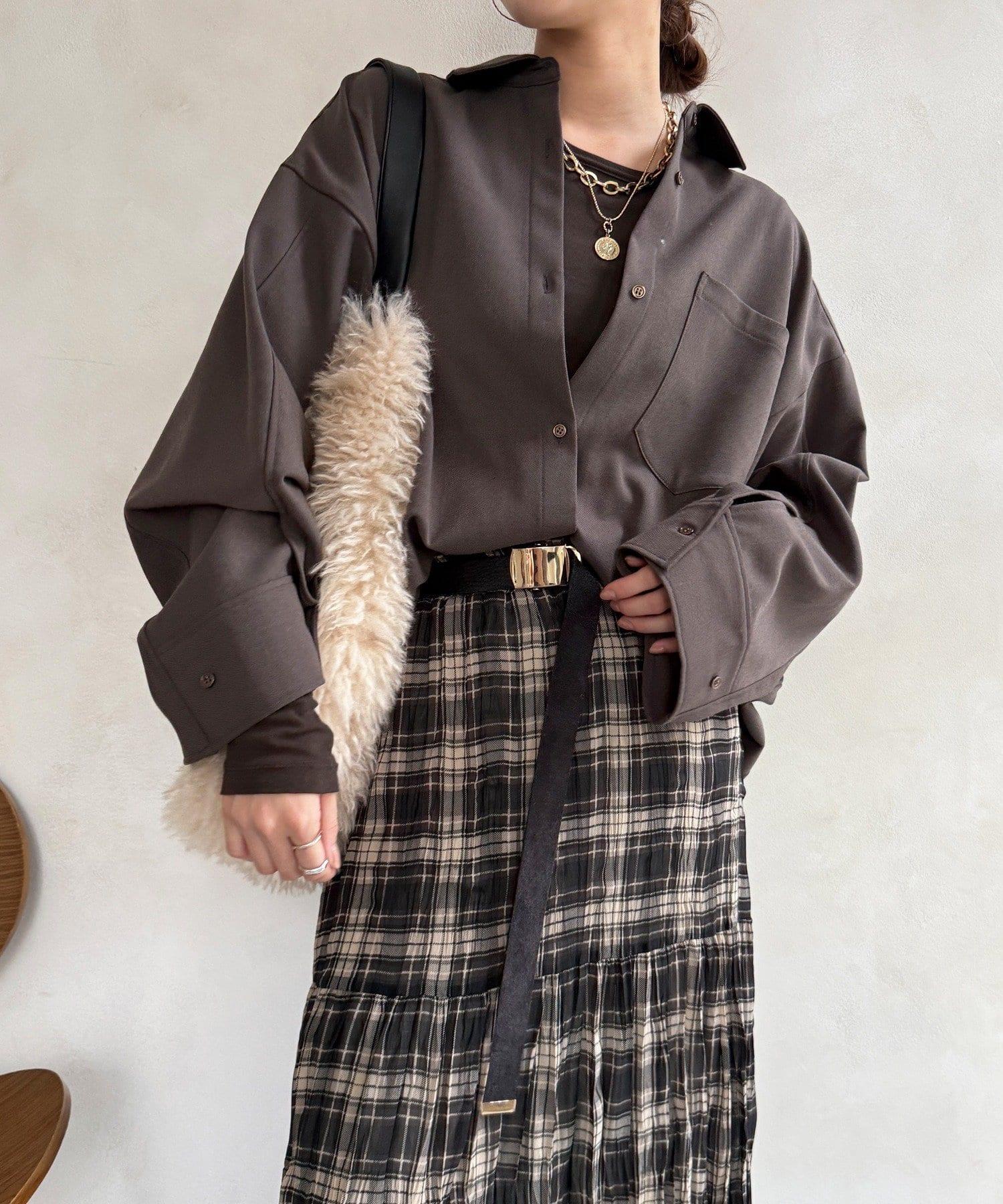 這款襯衫採用多爾曼廓形設計,可隨意寬鬆穿著。