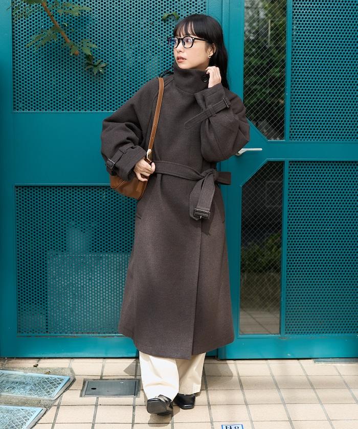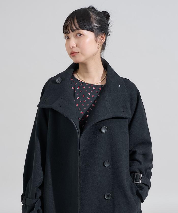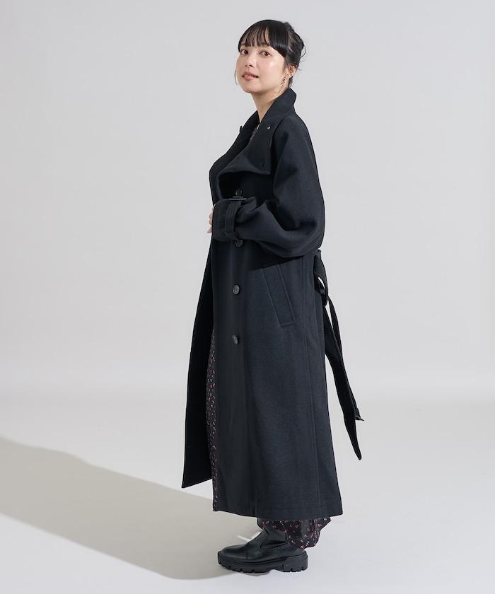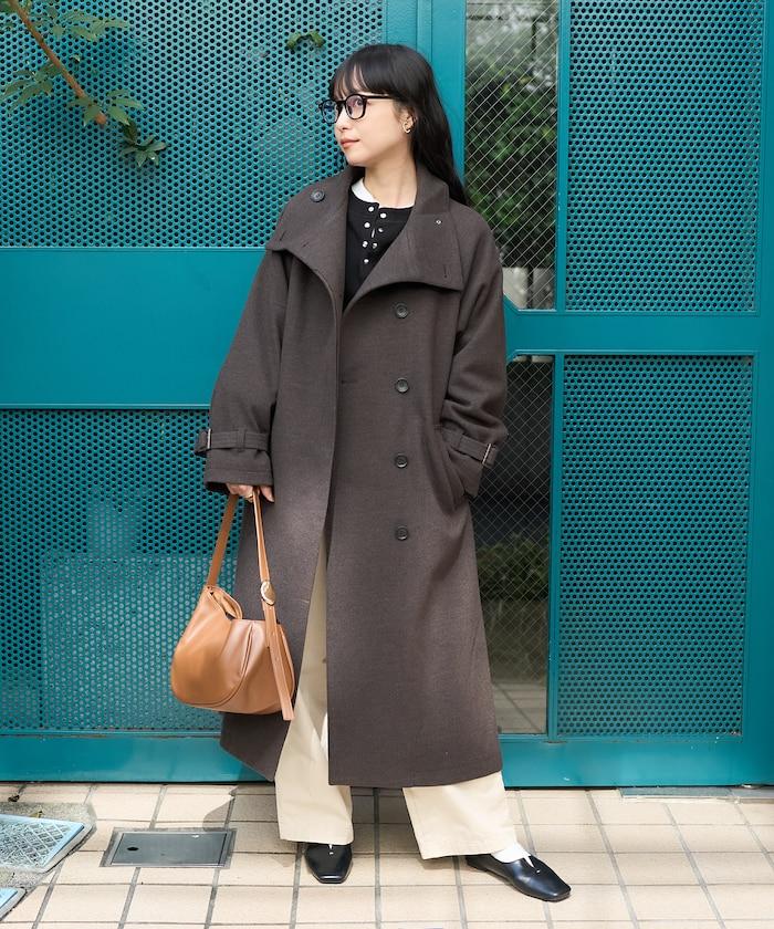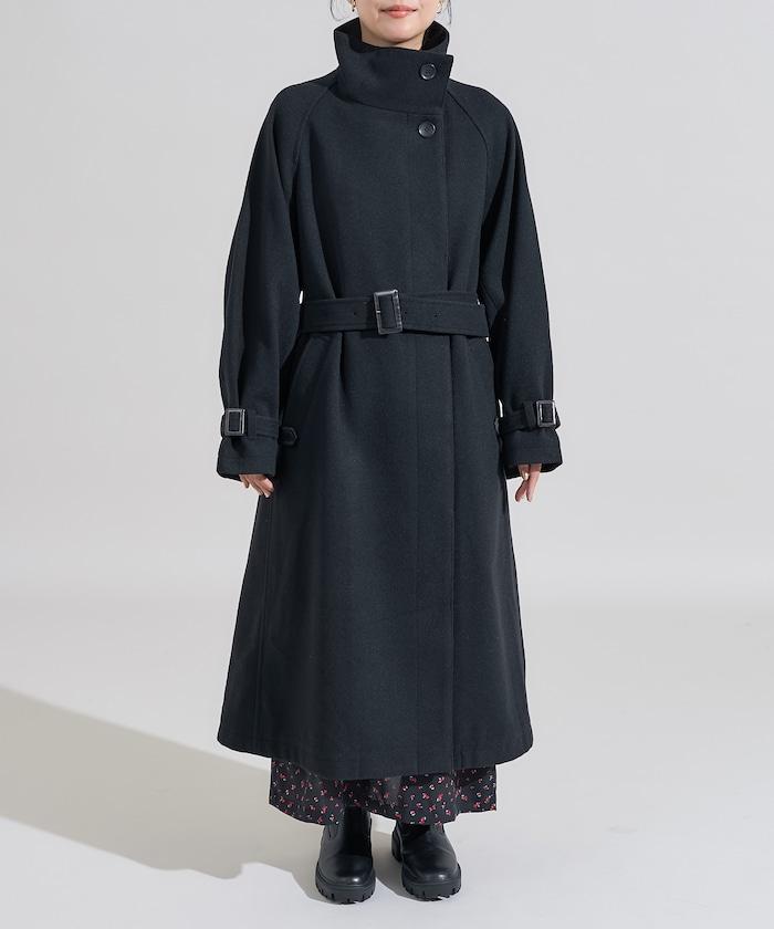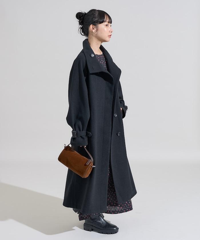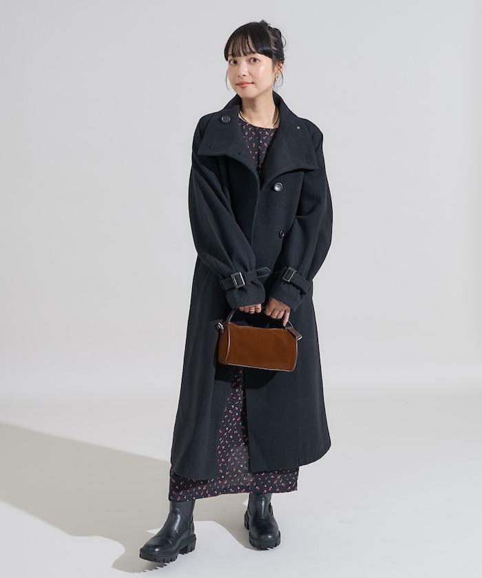 羊毛高領長款大衣/1152248900966