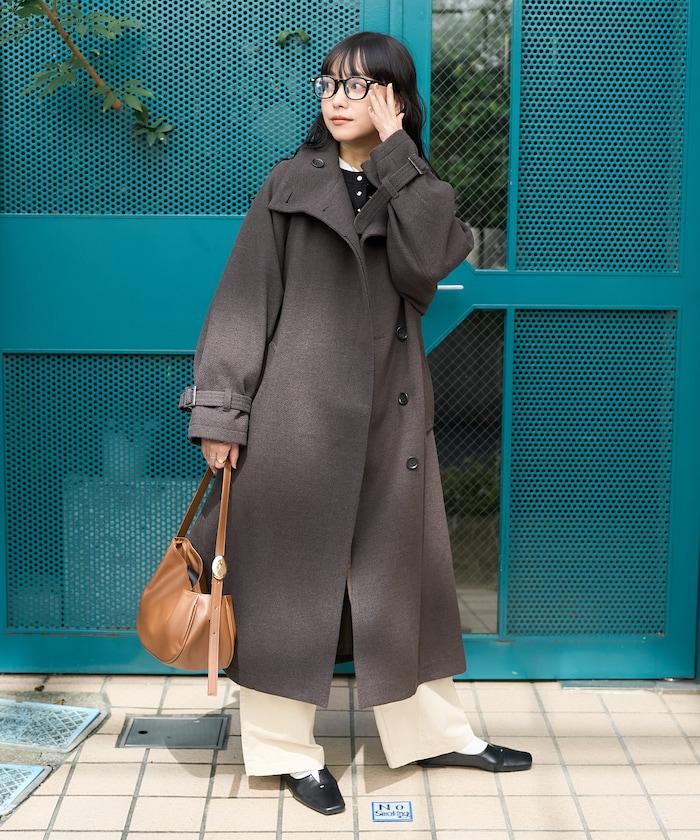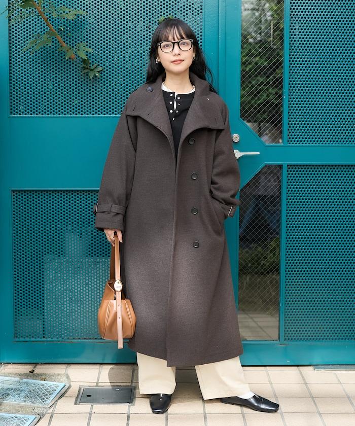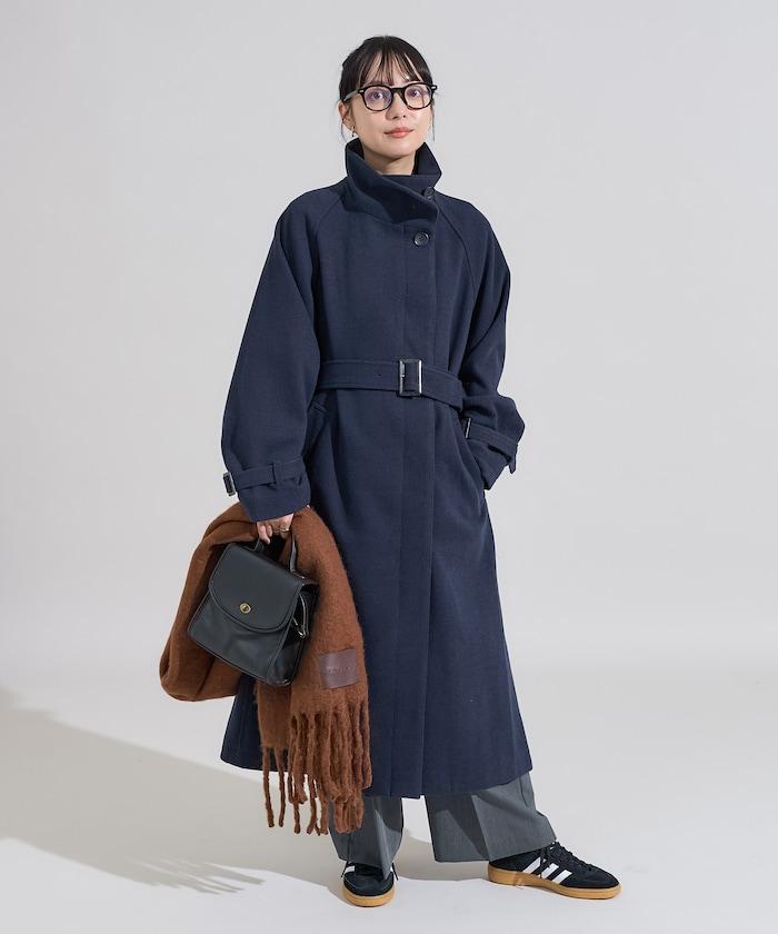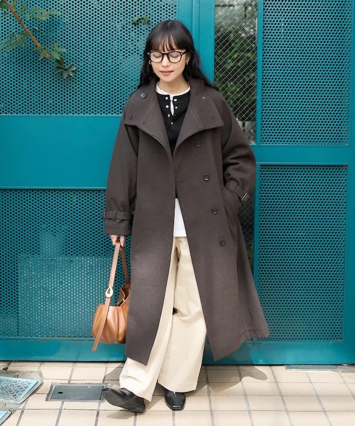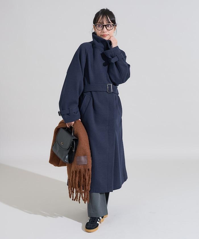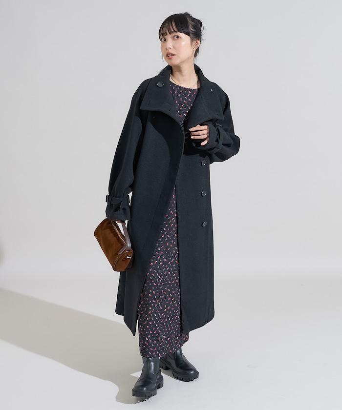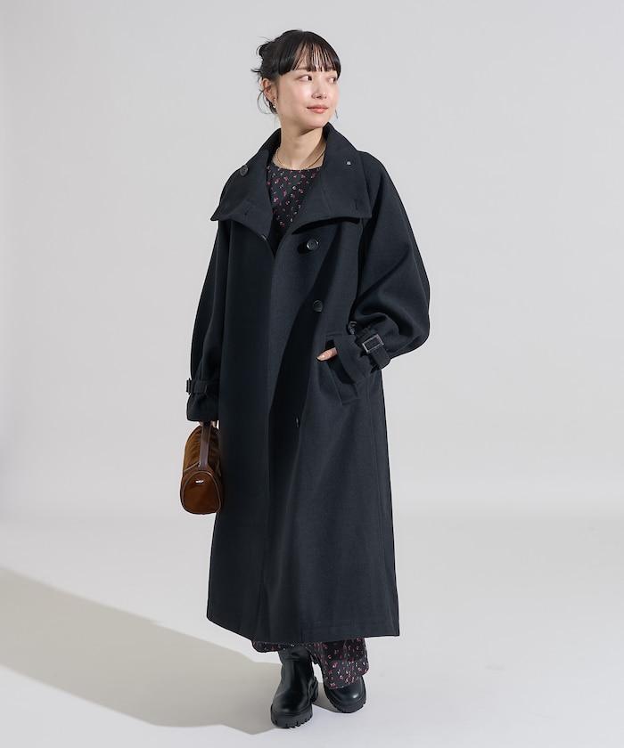 羊毛高領長款大衣/1152248900966