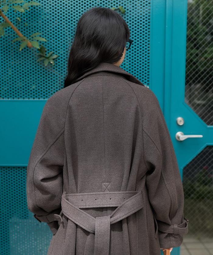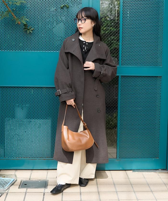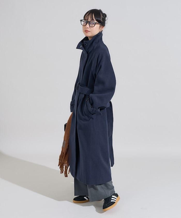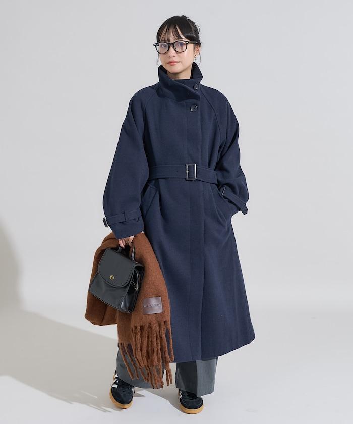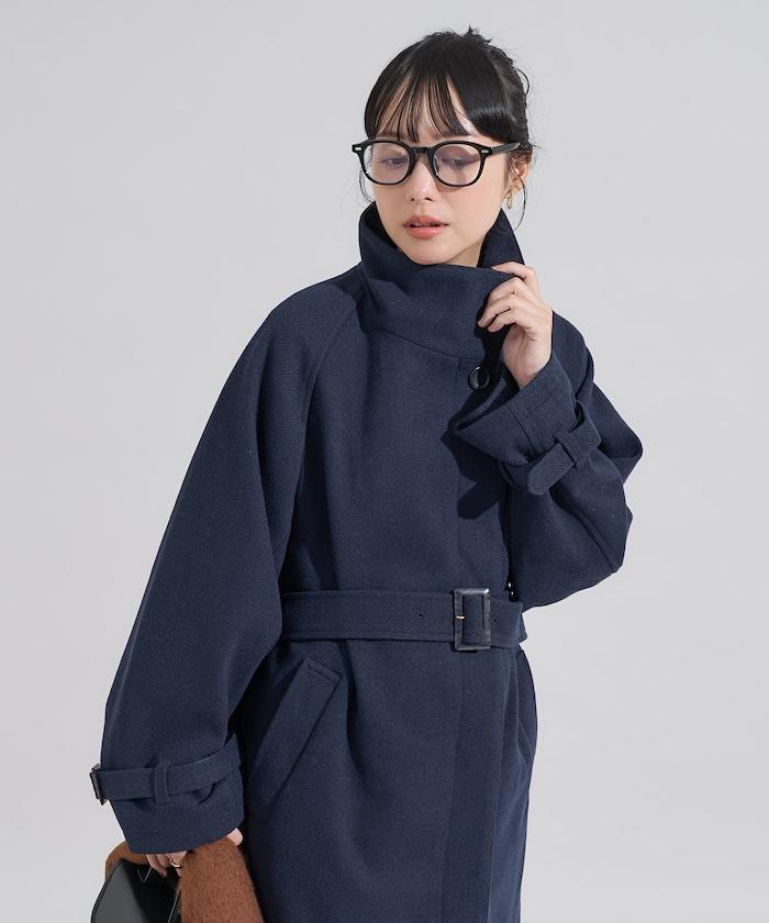 羊毛高領帳篷線中長款大衣/1153248901551