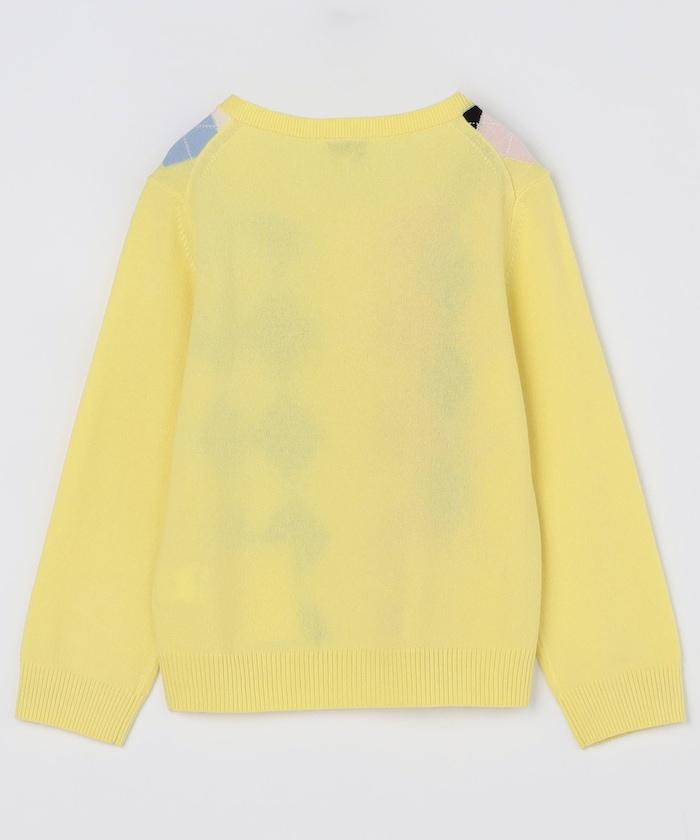 針織開衫,小巧的剪裁,配以醒目的菱格紋圖案和銀色紐扣。