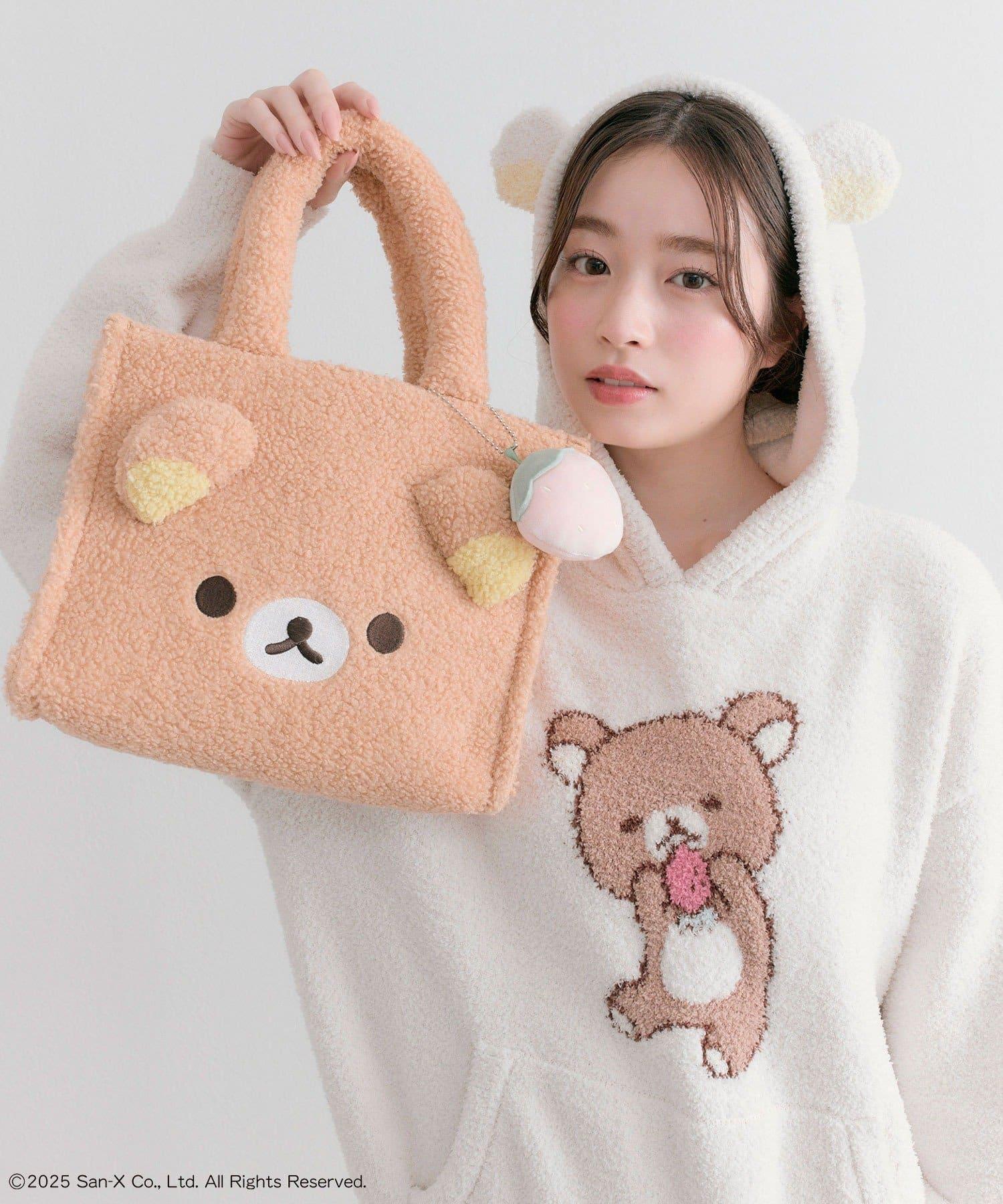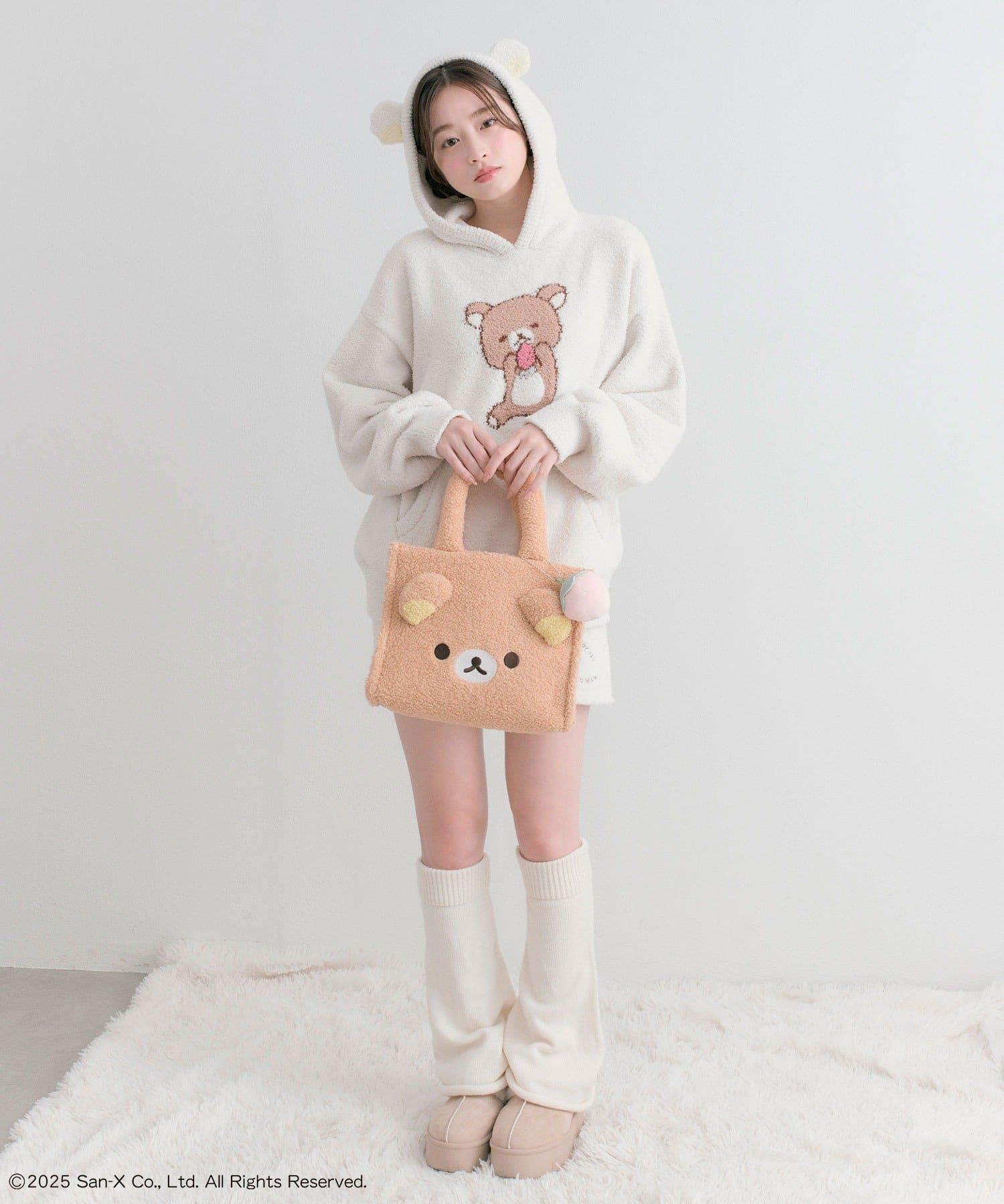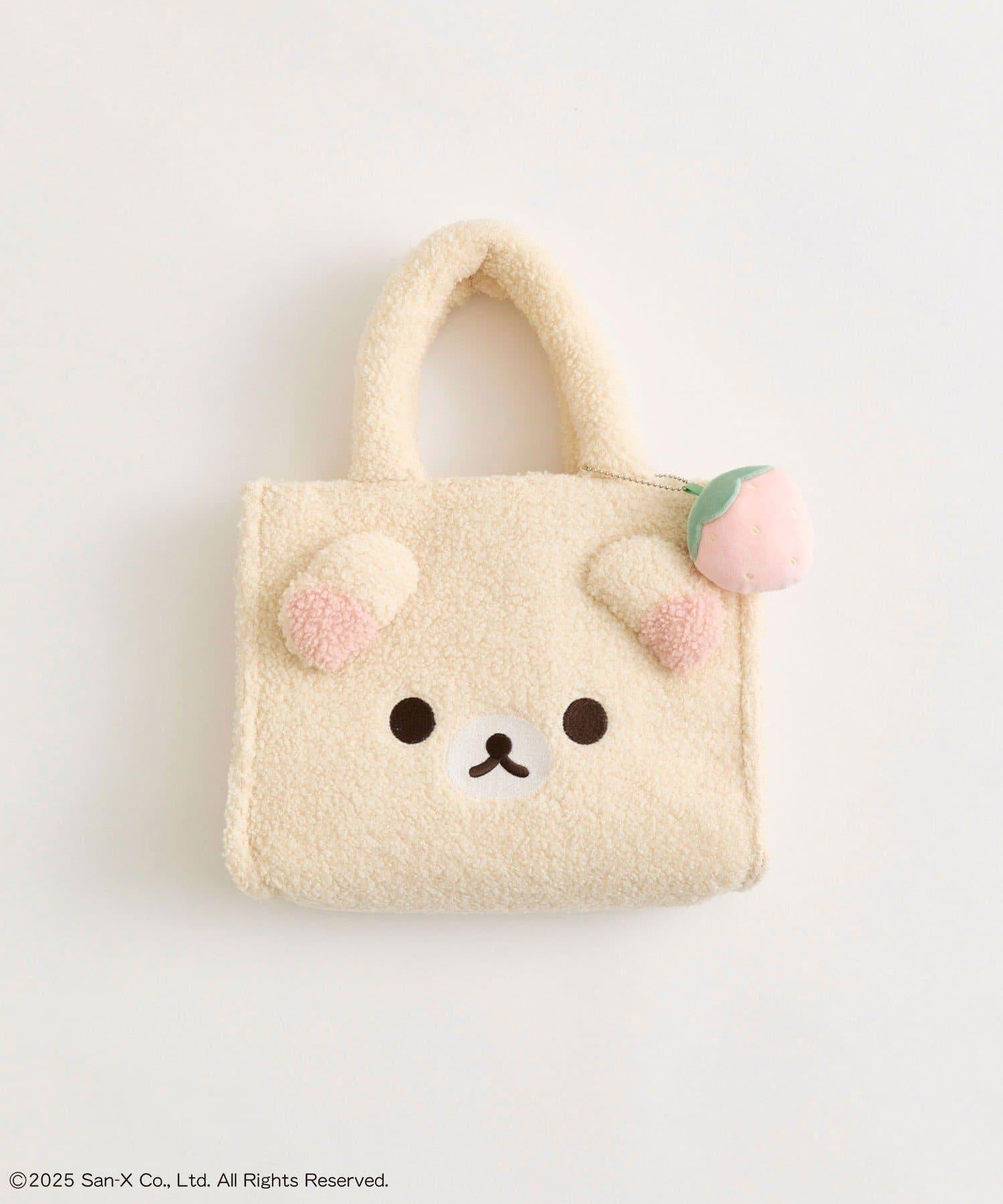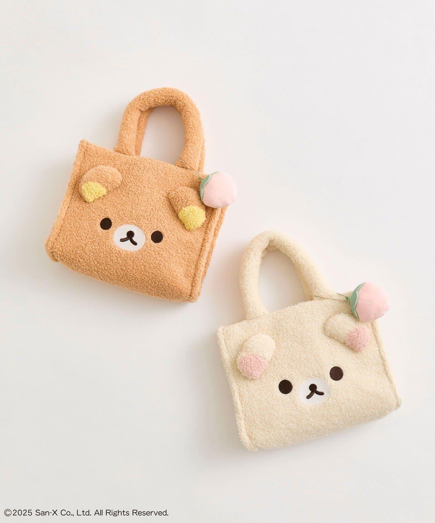 一款可愛的手提包,毛茸茸的蟒蛇、繡有 Rilakkuma 臉部圖案和立體耳朵。