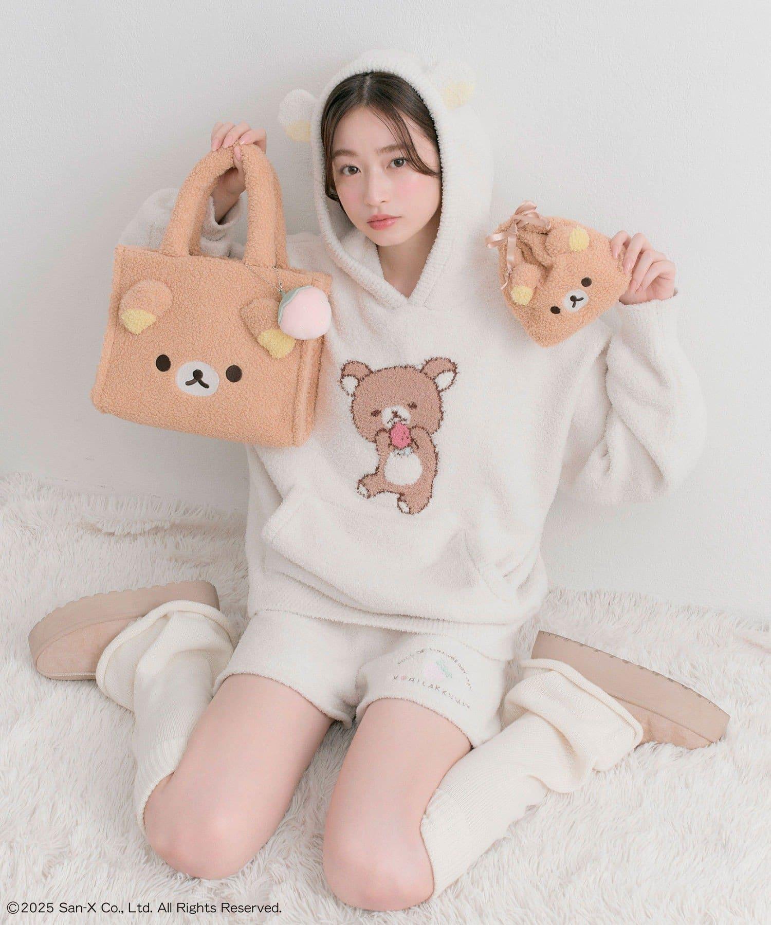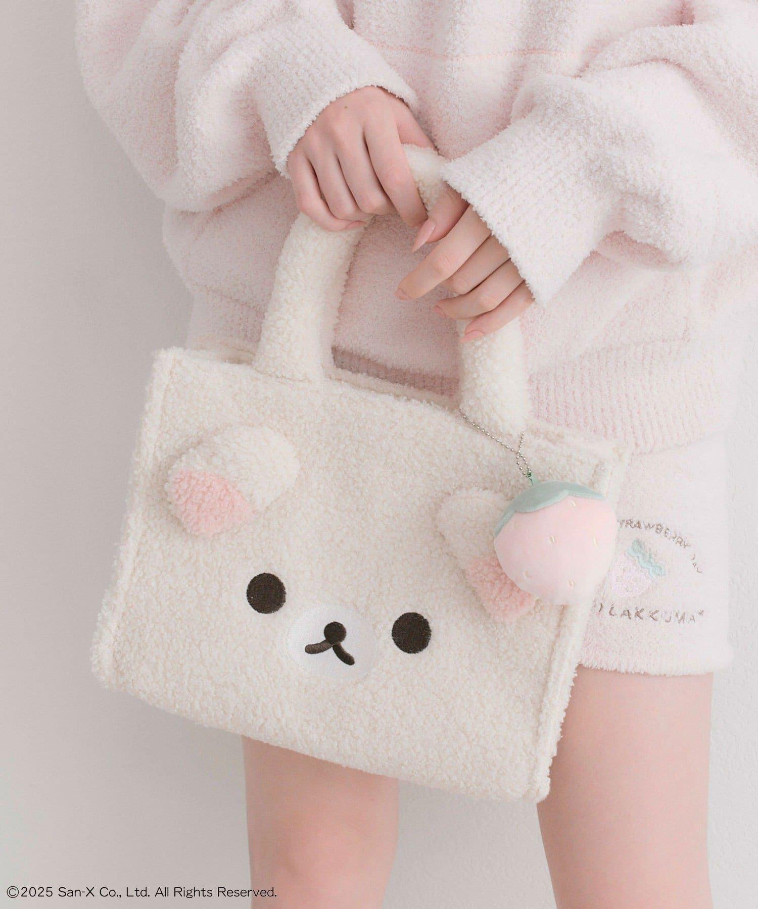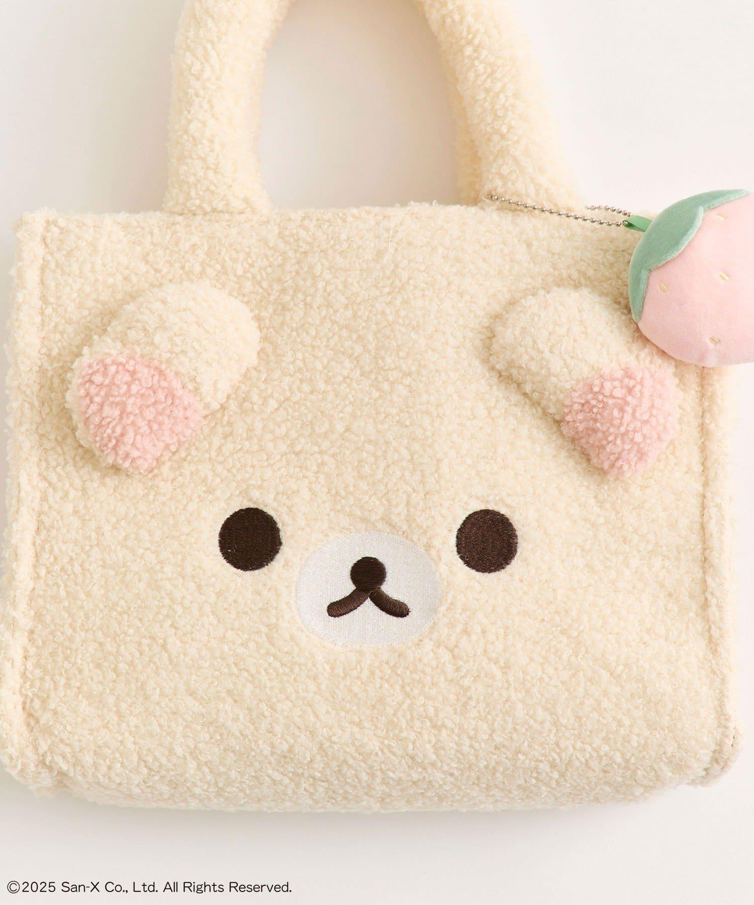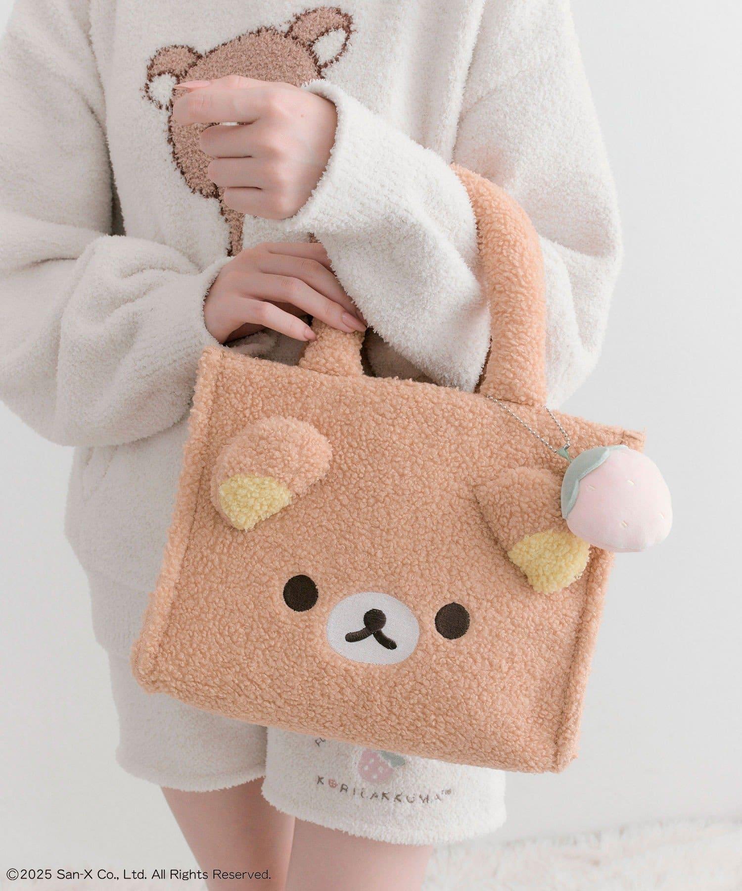 一款可愛的手提包,毛茸茸的蟒蛇、繡有 Rilakkuma 臉部圖案和立體耳朵。