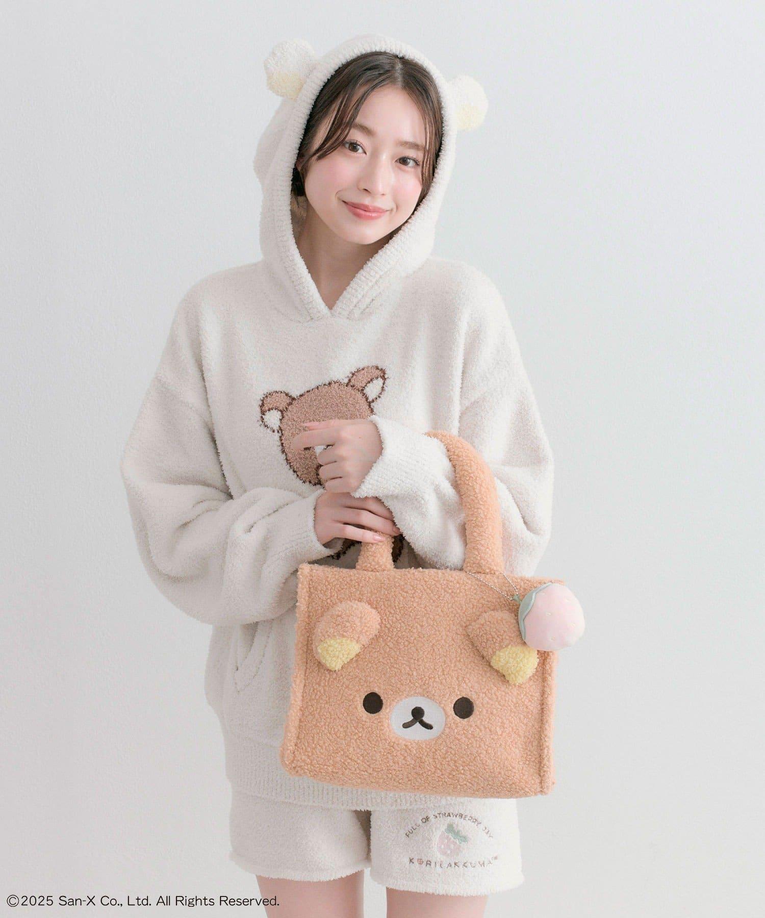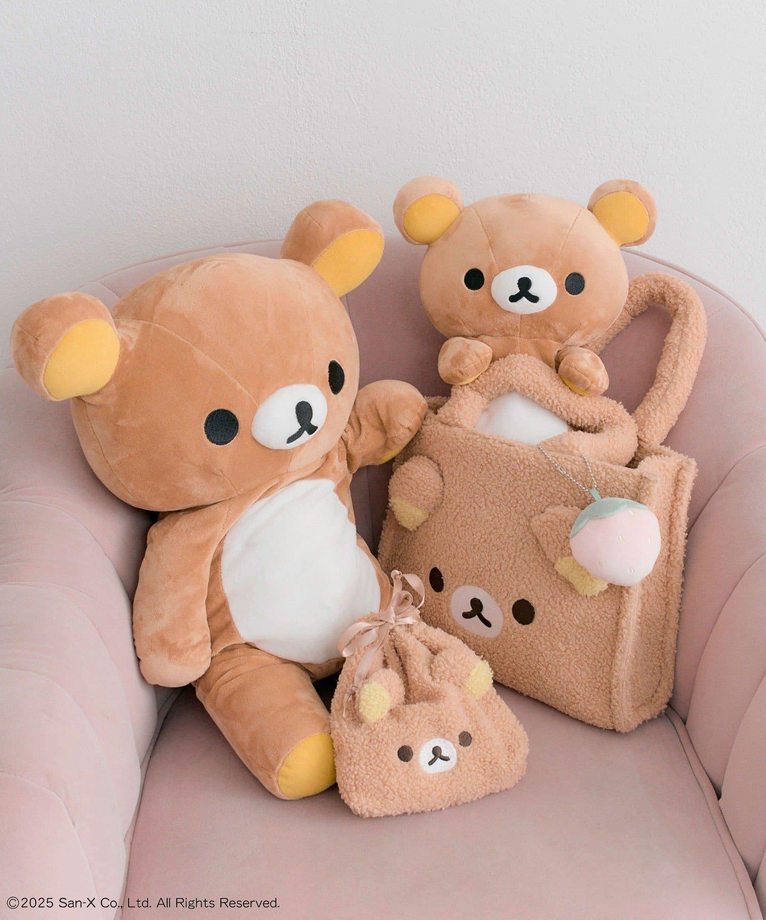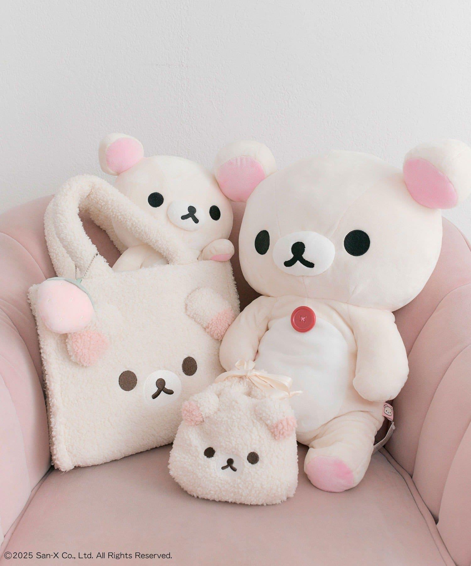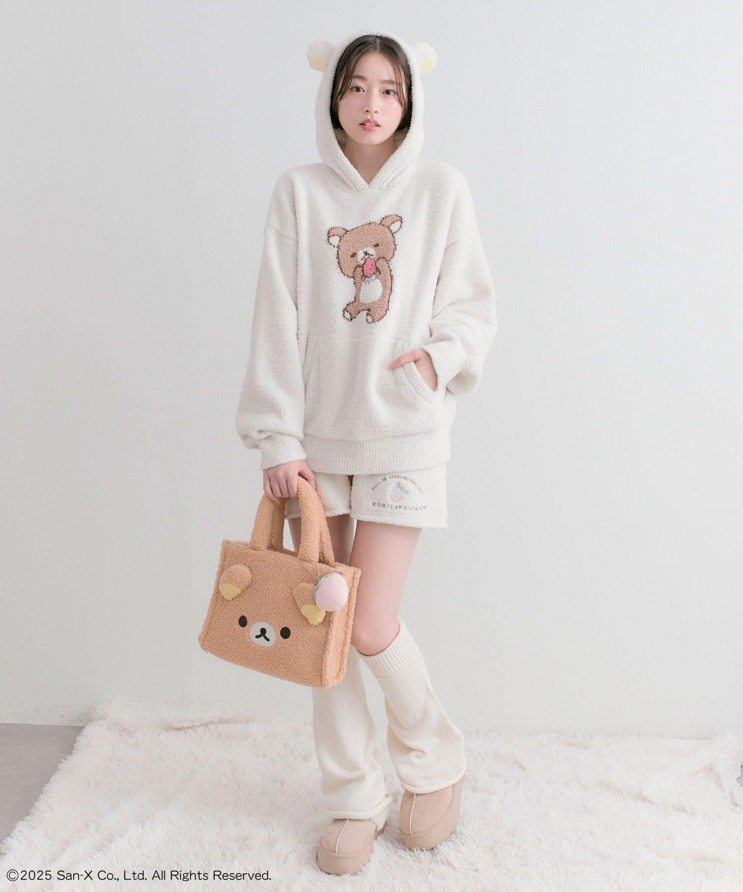 一款可愛的手提包,毛茸茸的蟒蛇、繡有 Rilakkuma 臉部圖案和立體耳朵。