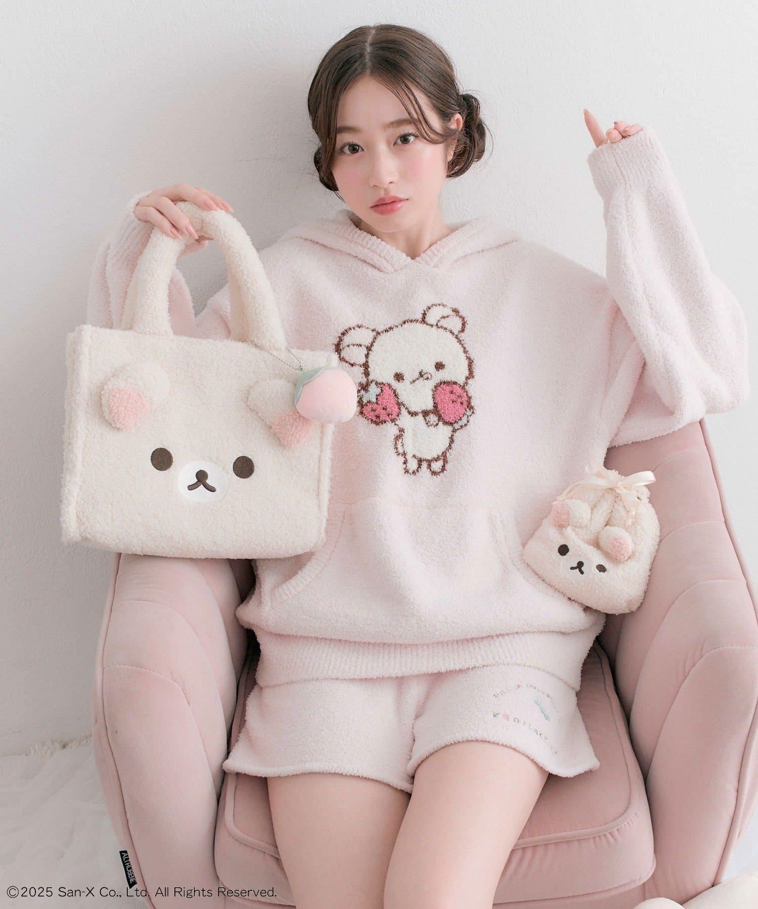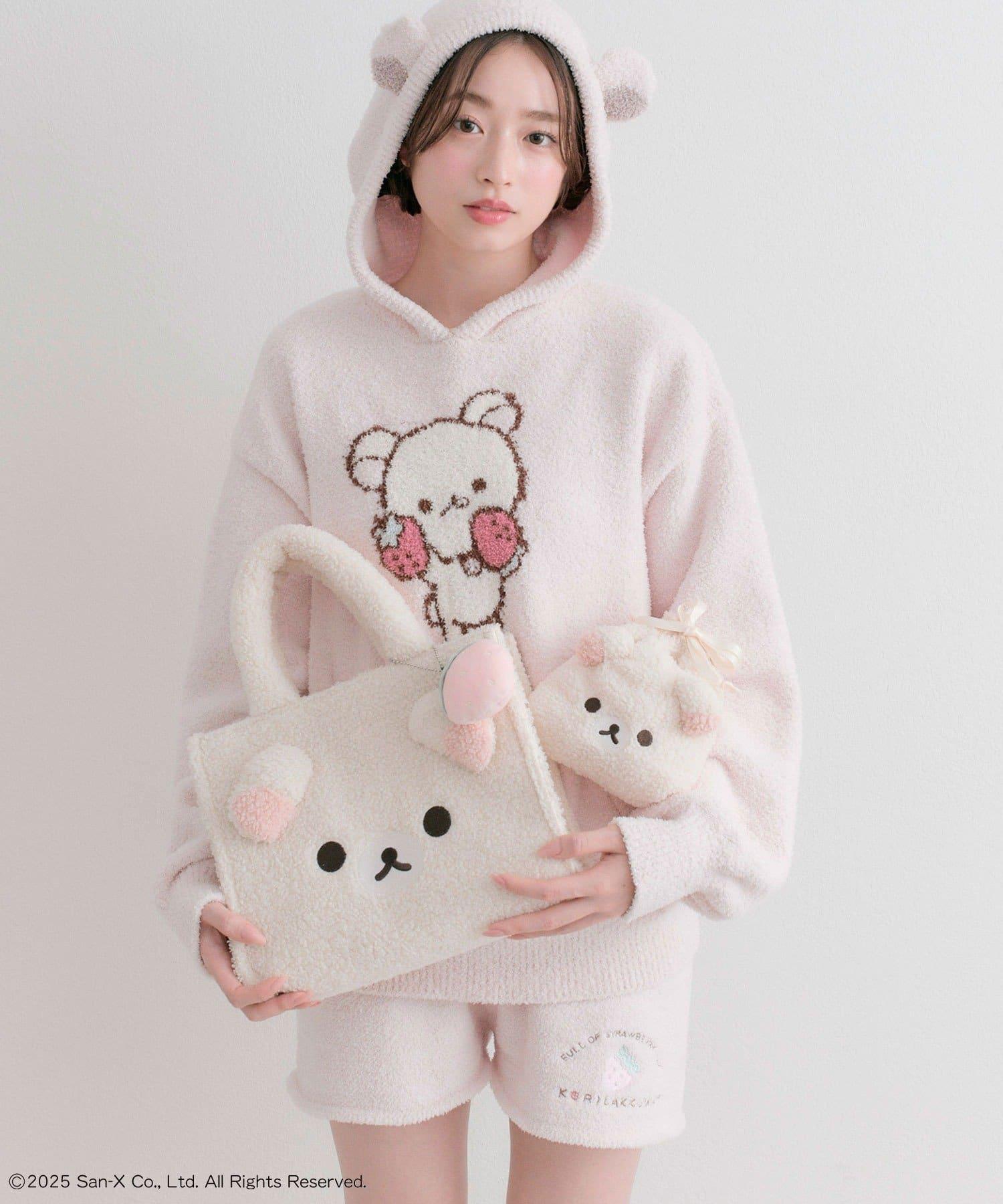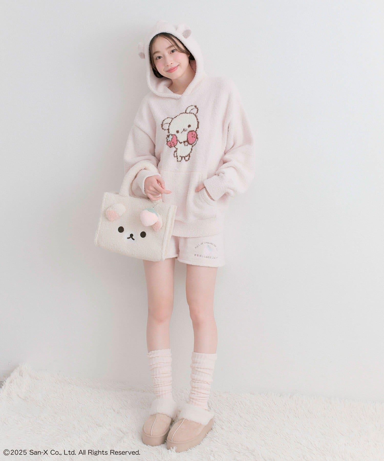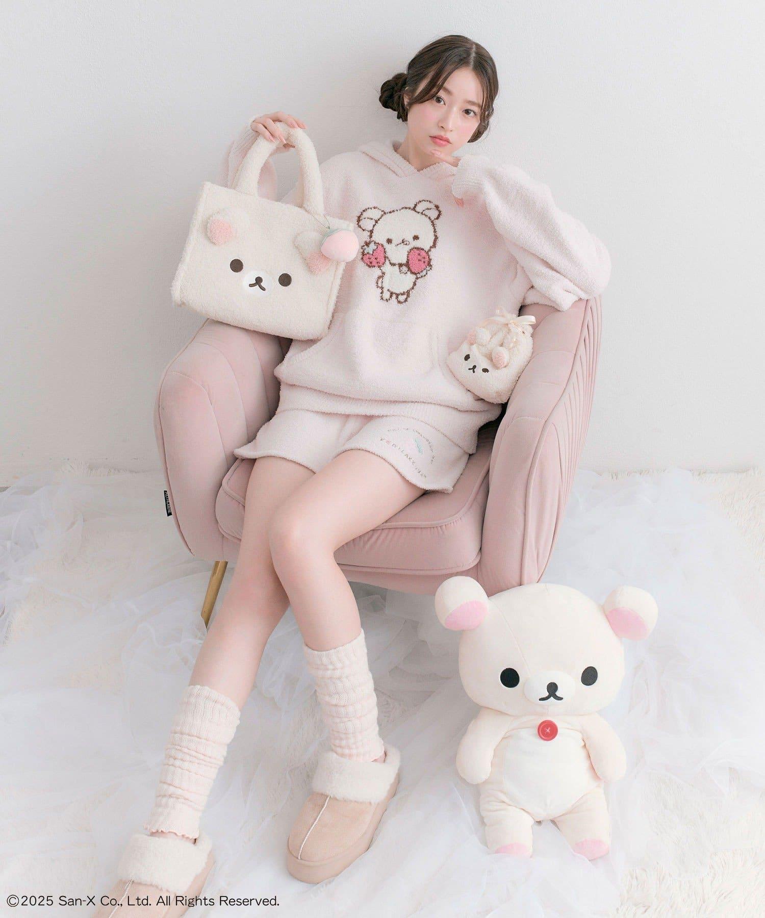 一款可愛的手提包,毛茸茸的蟒蛇、繡有 Rilakkuma 臉部圖案和立體耳朵。