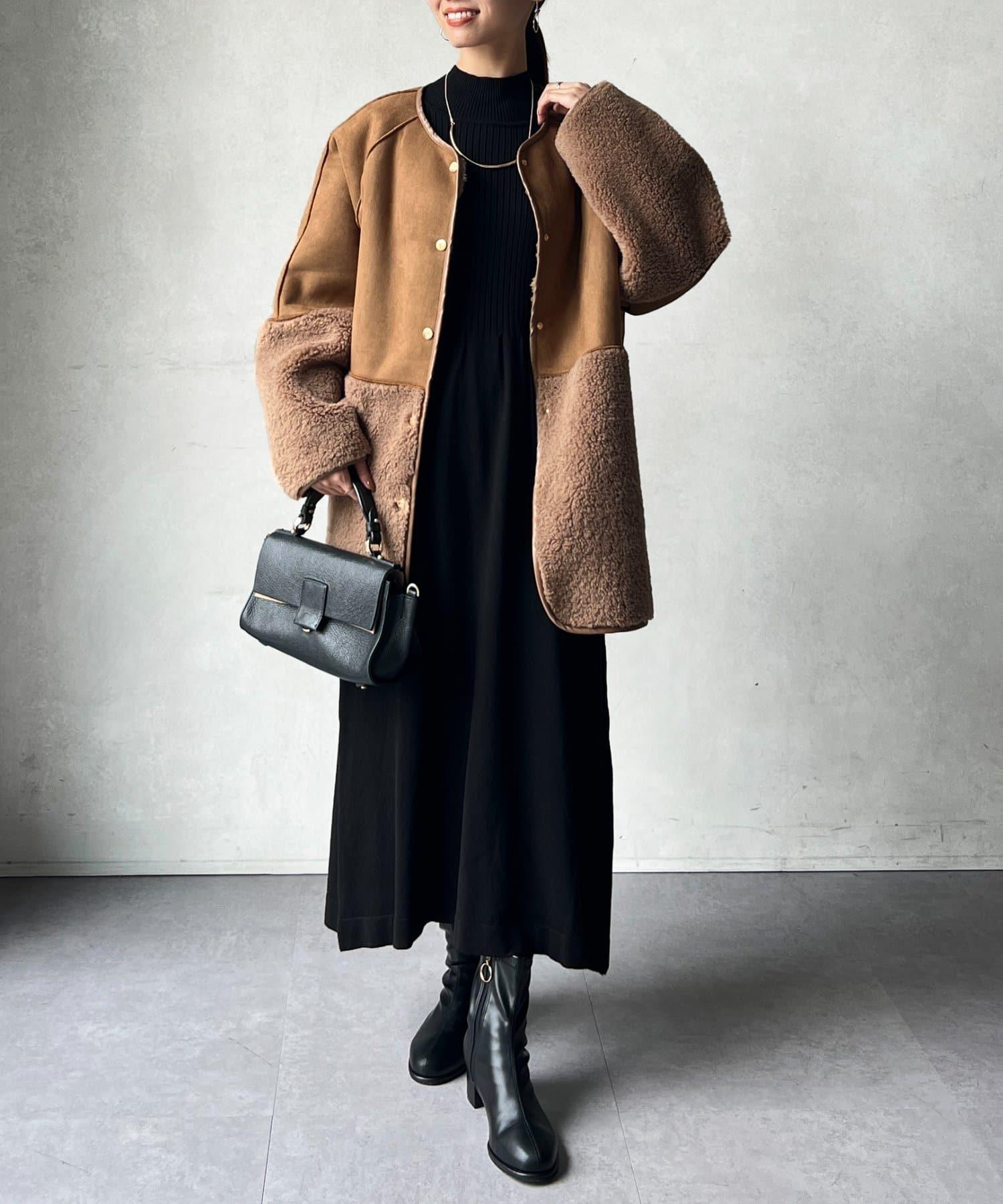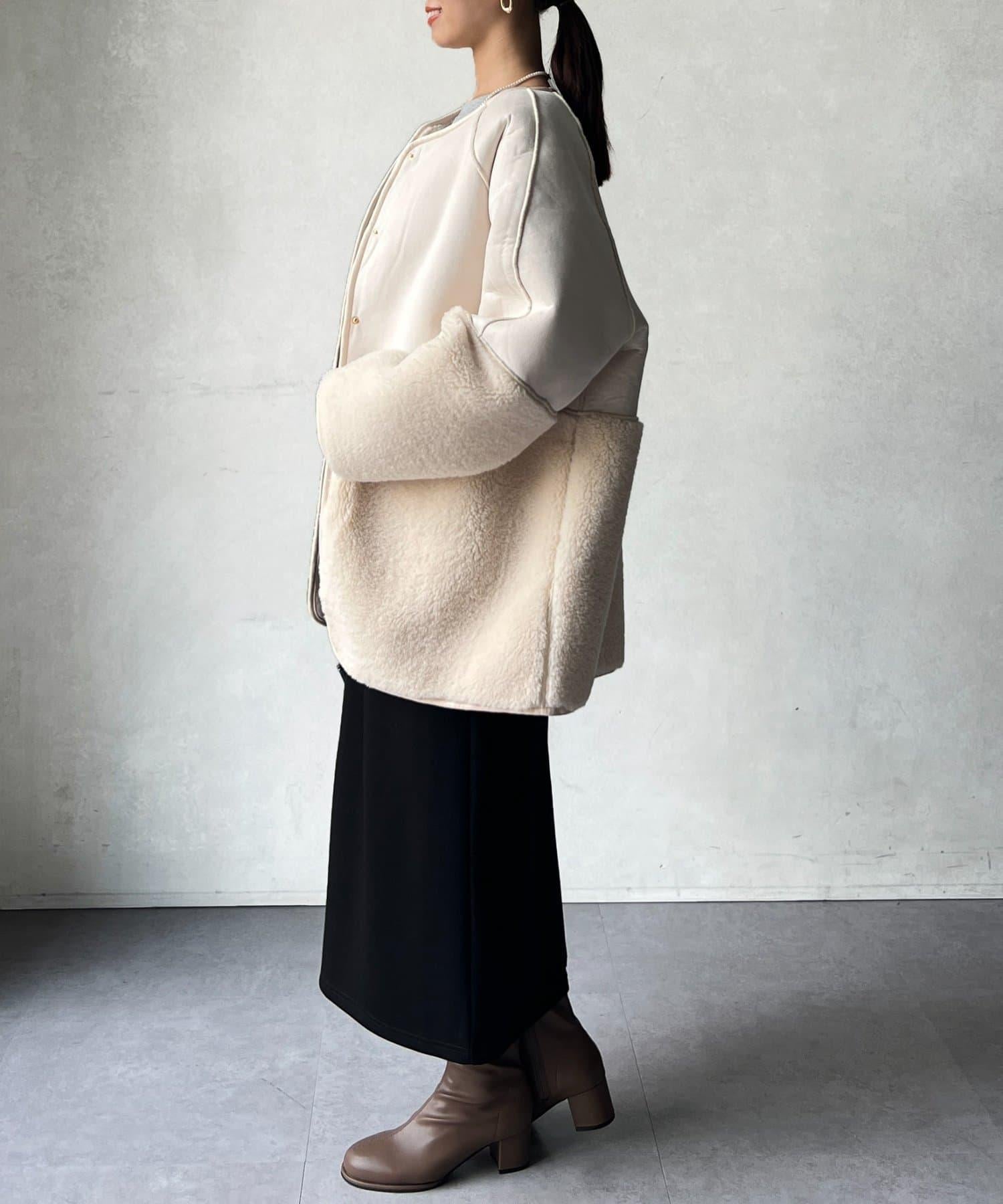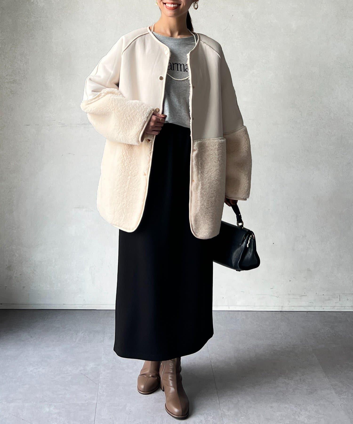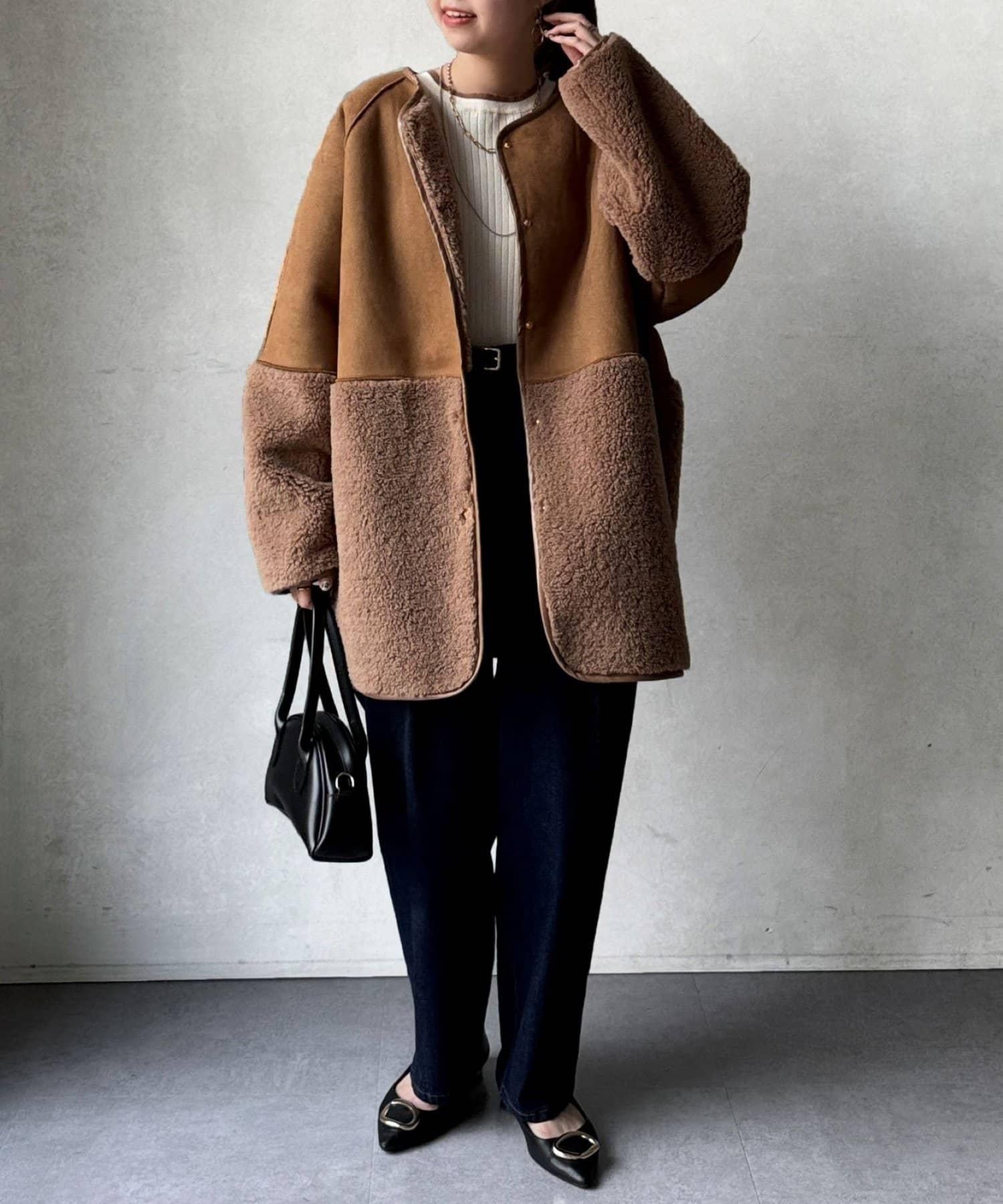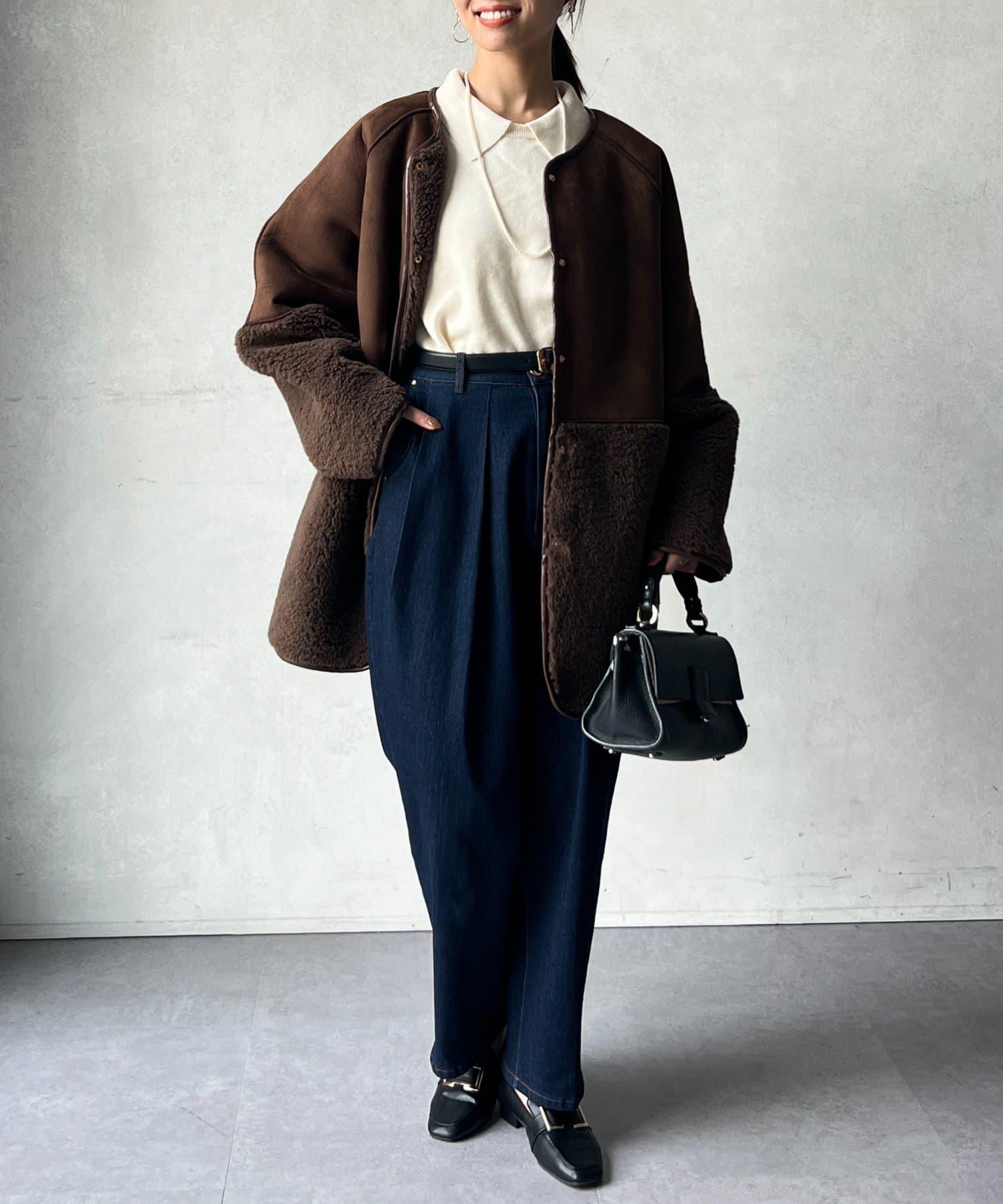 可與高領毛衣和圍巾搭配!廓形有一種呆板的墜落感,不會產生體積感。