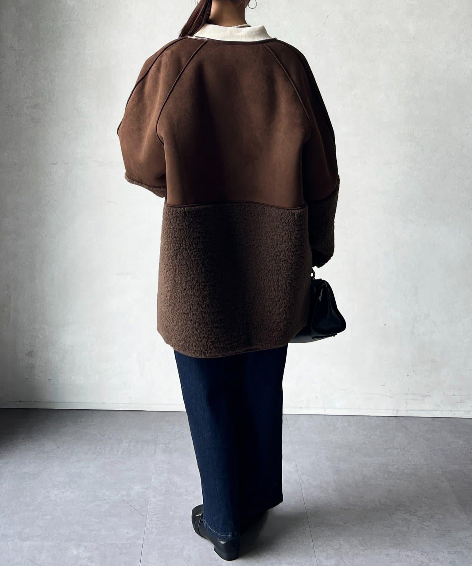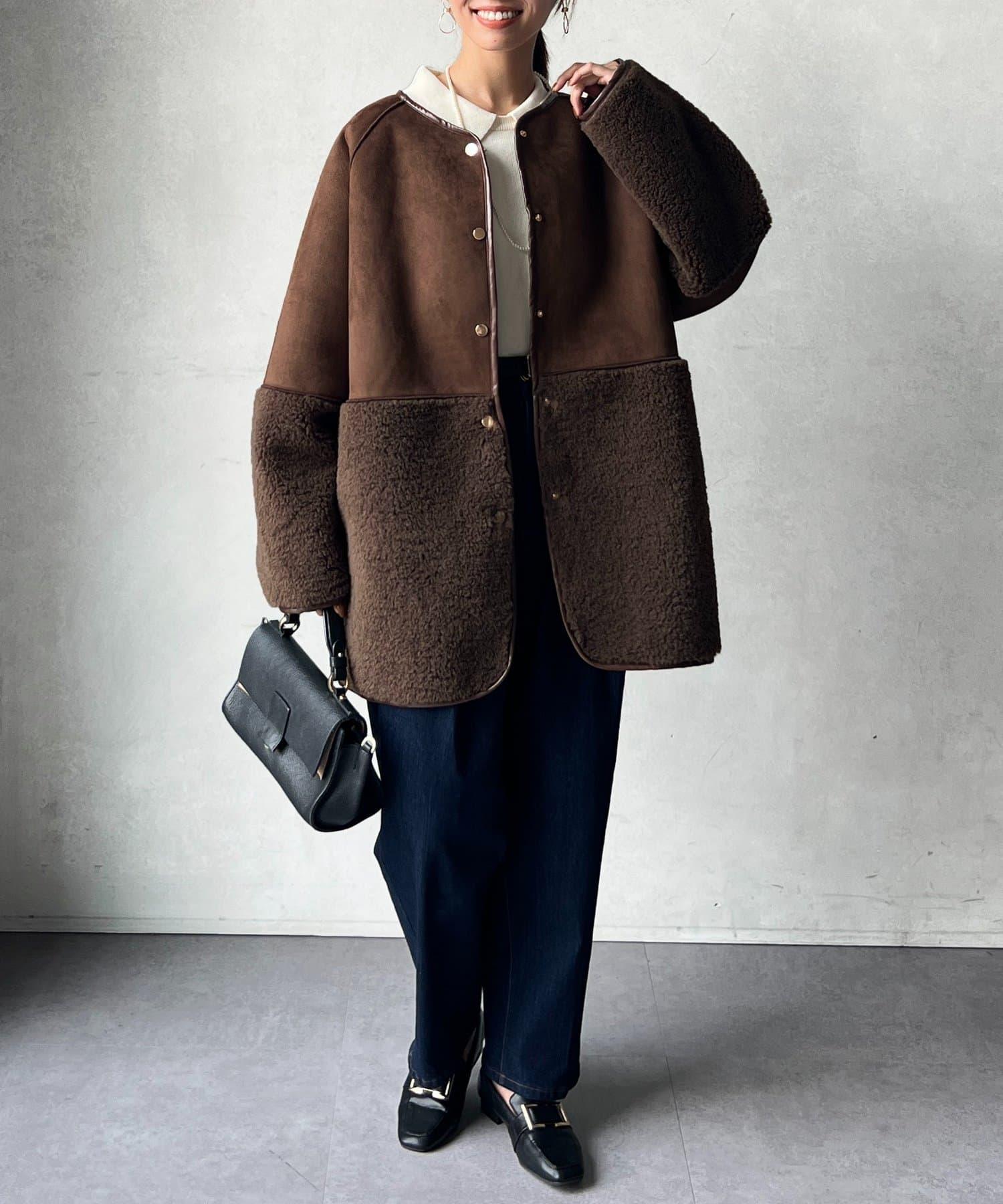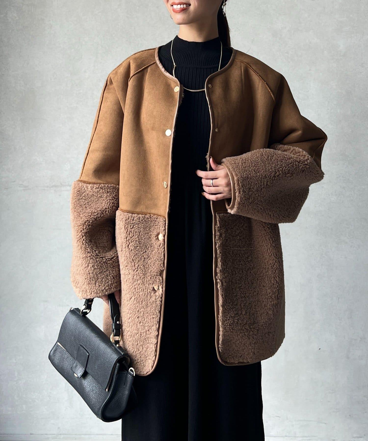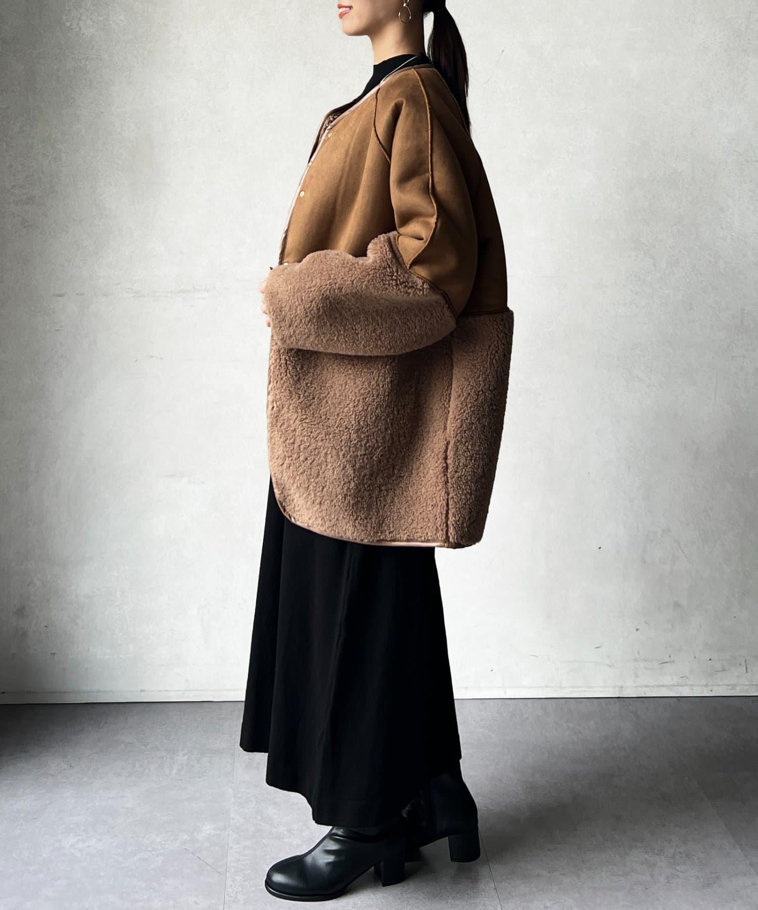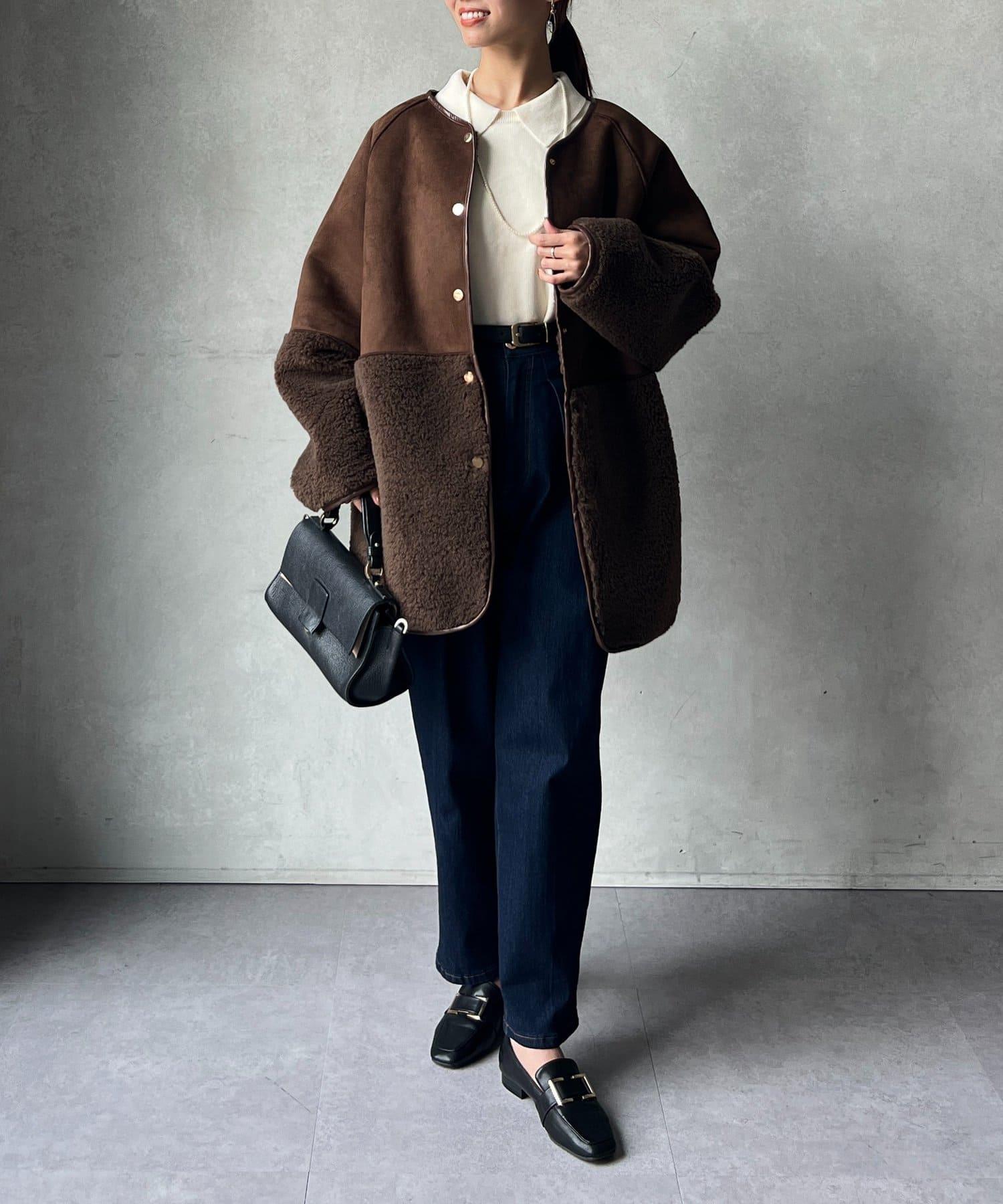可與高領毛衣和圍巾搭配!廓形有一種呆板的墜落感,不會產生體積感。