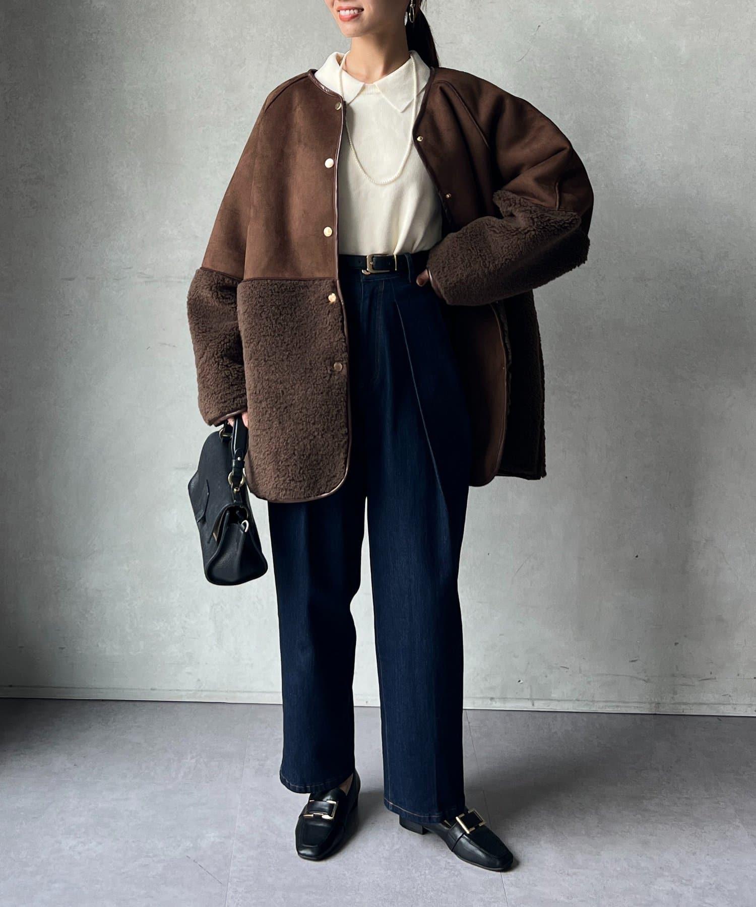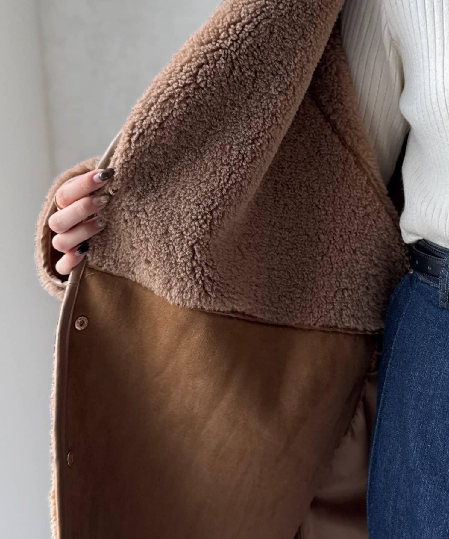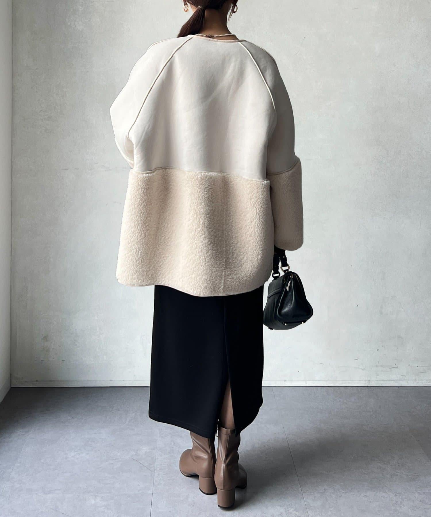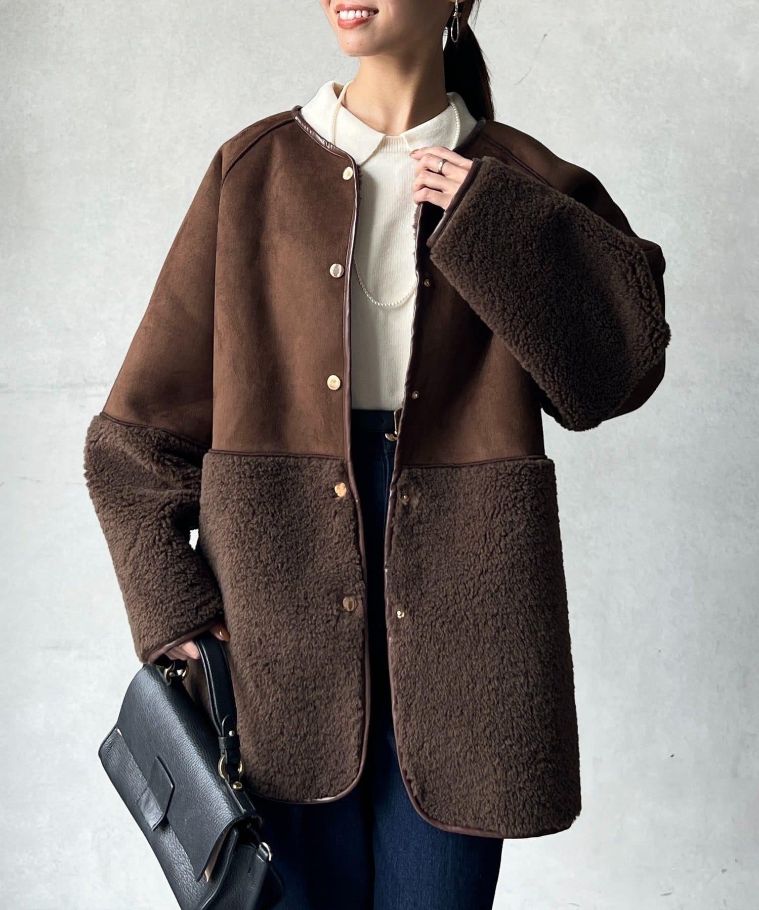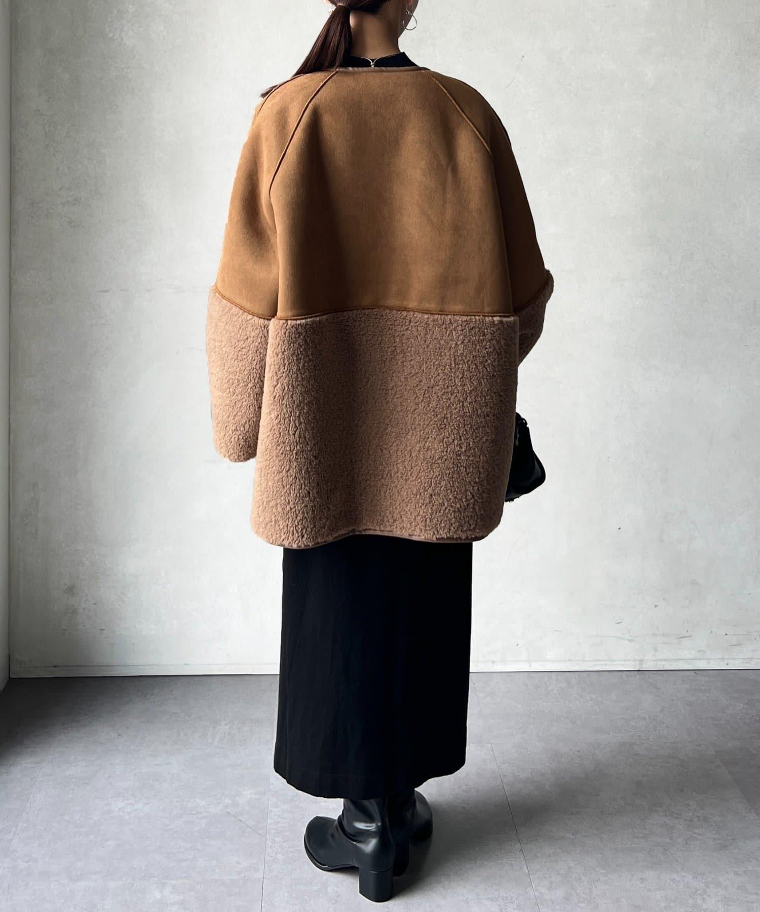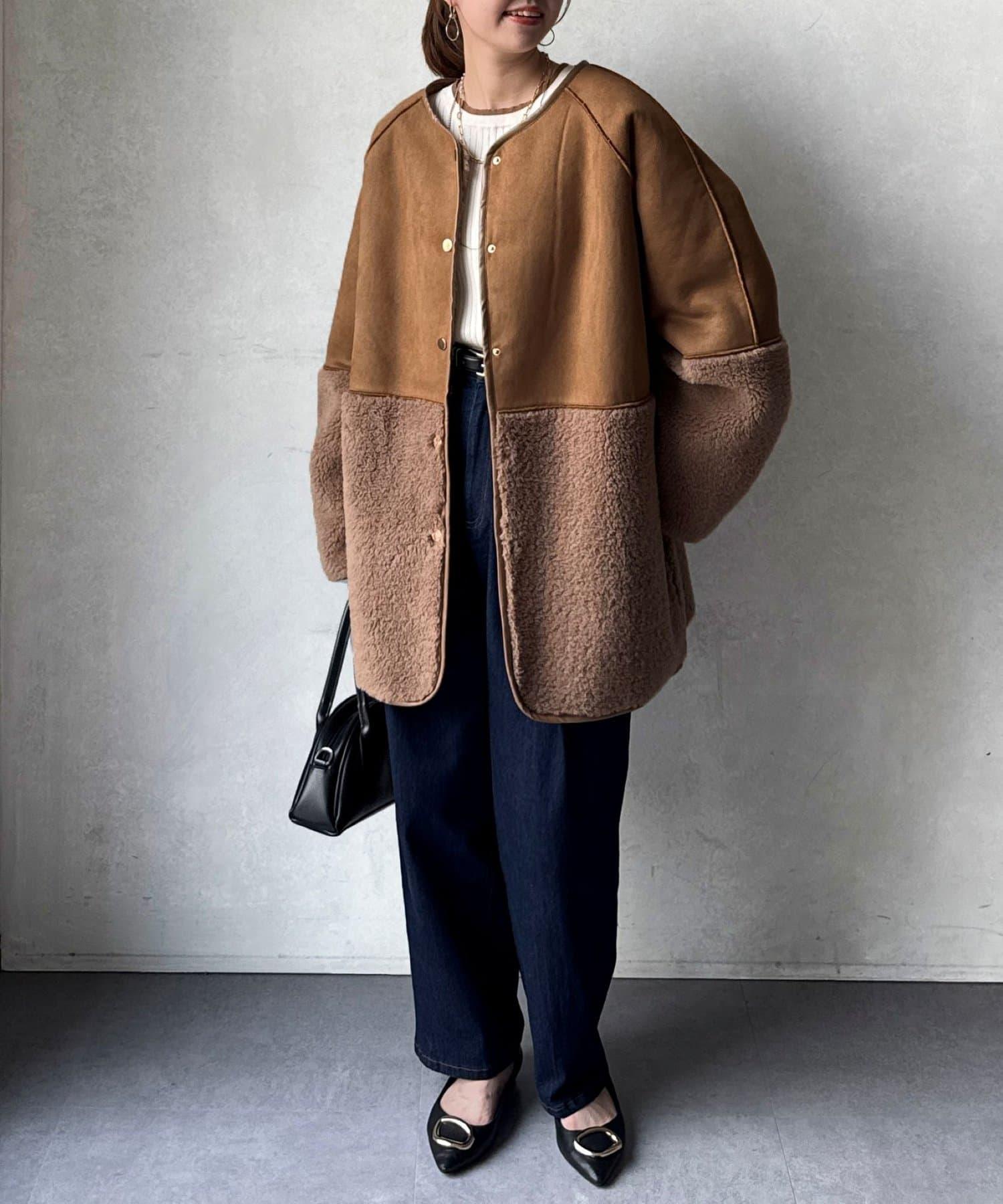 可與高領毛衣和圍巾搭配!廓形有一種呆板的墜落感,不會產生體積感。