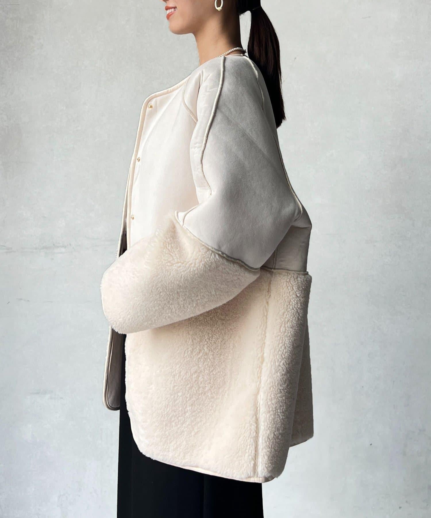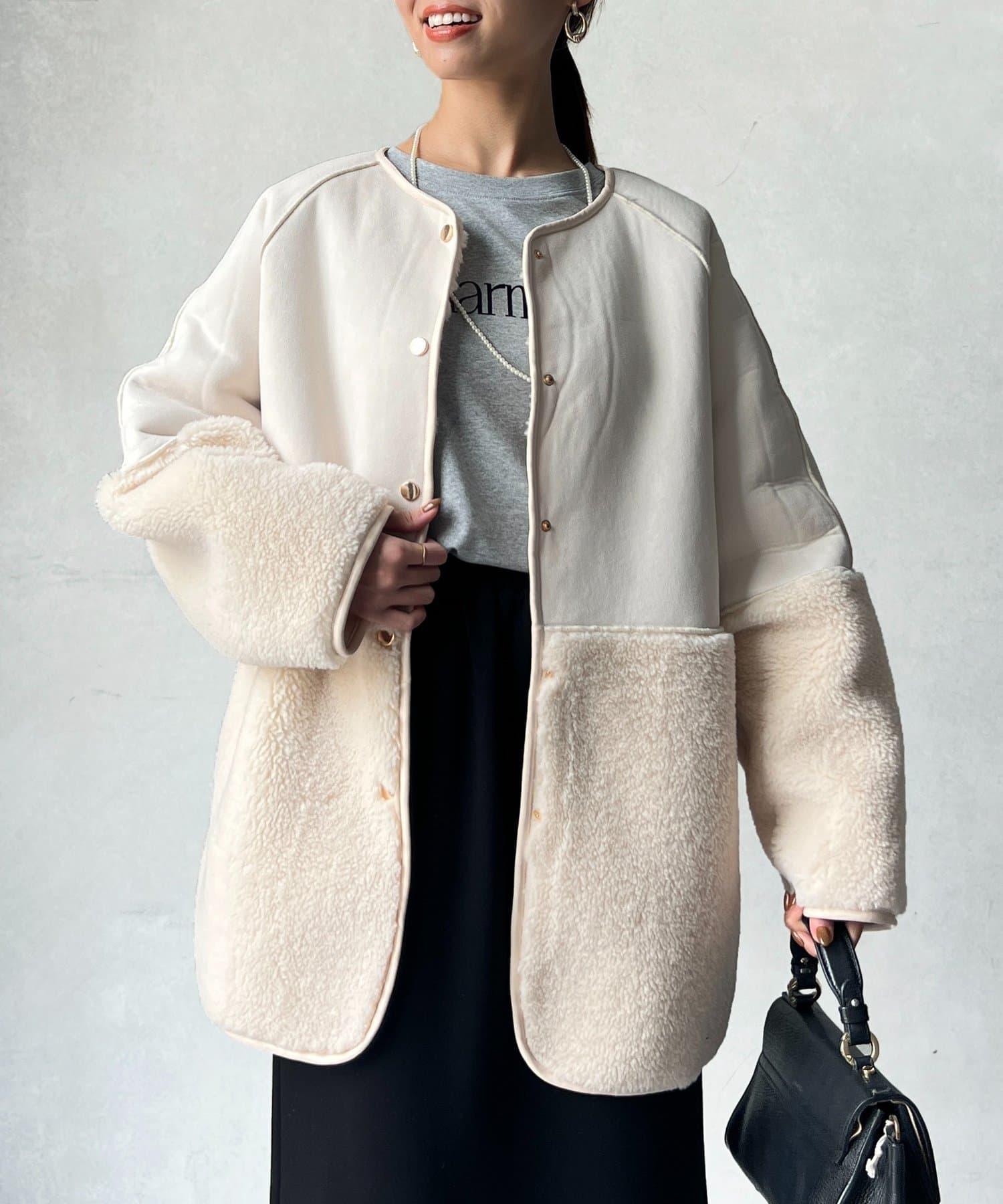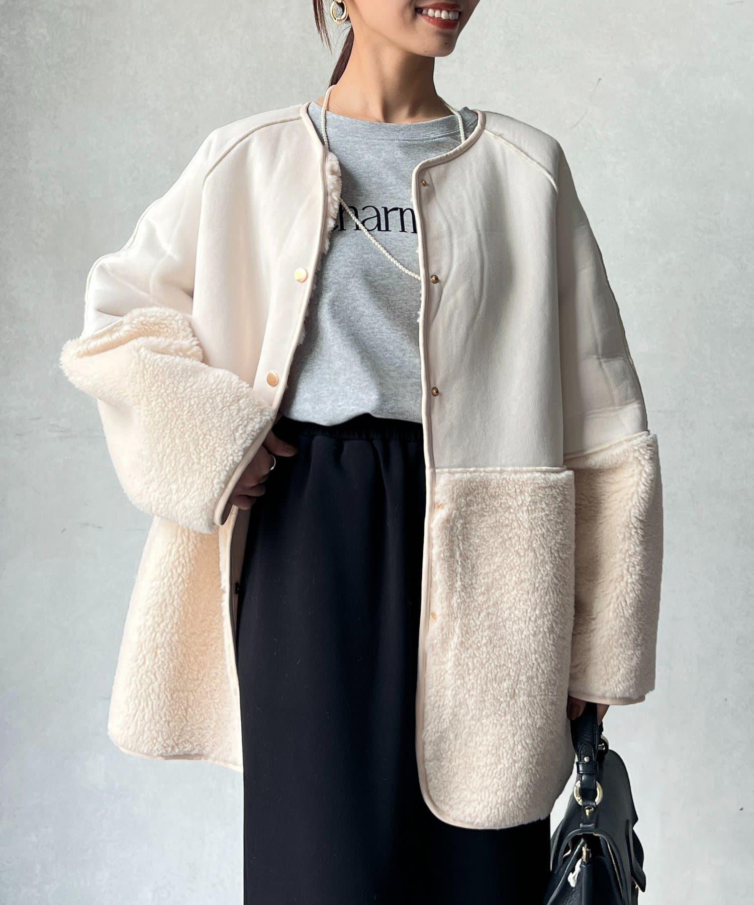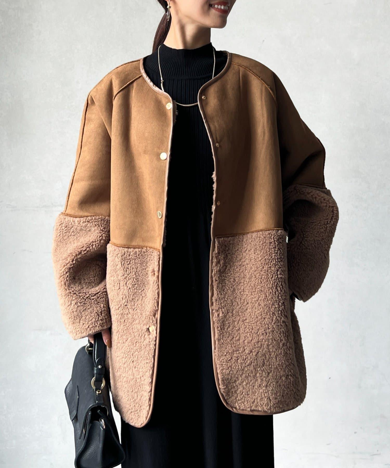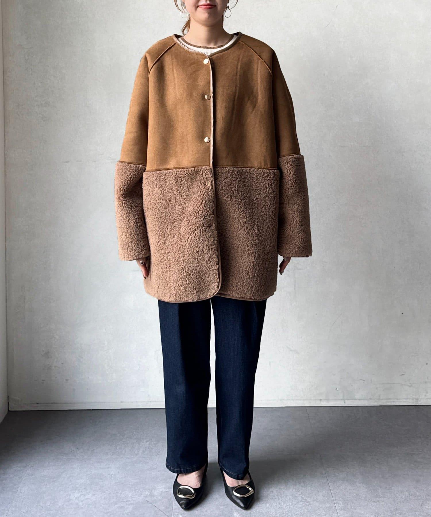 可與高領毛衣和圍巾搭配!廓形有一種呆板的墜落感,不會產生體積感。