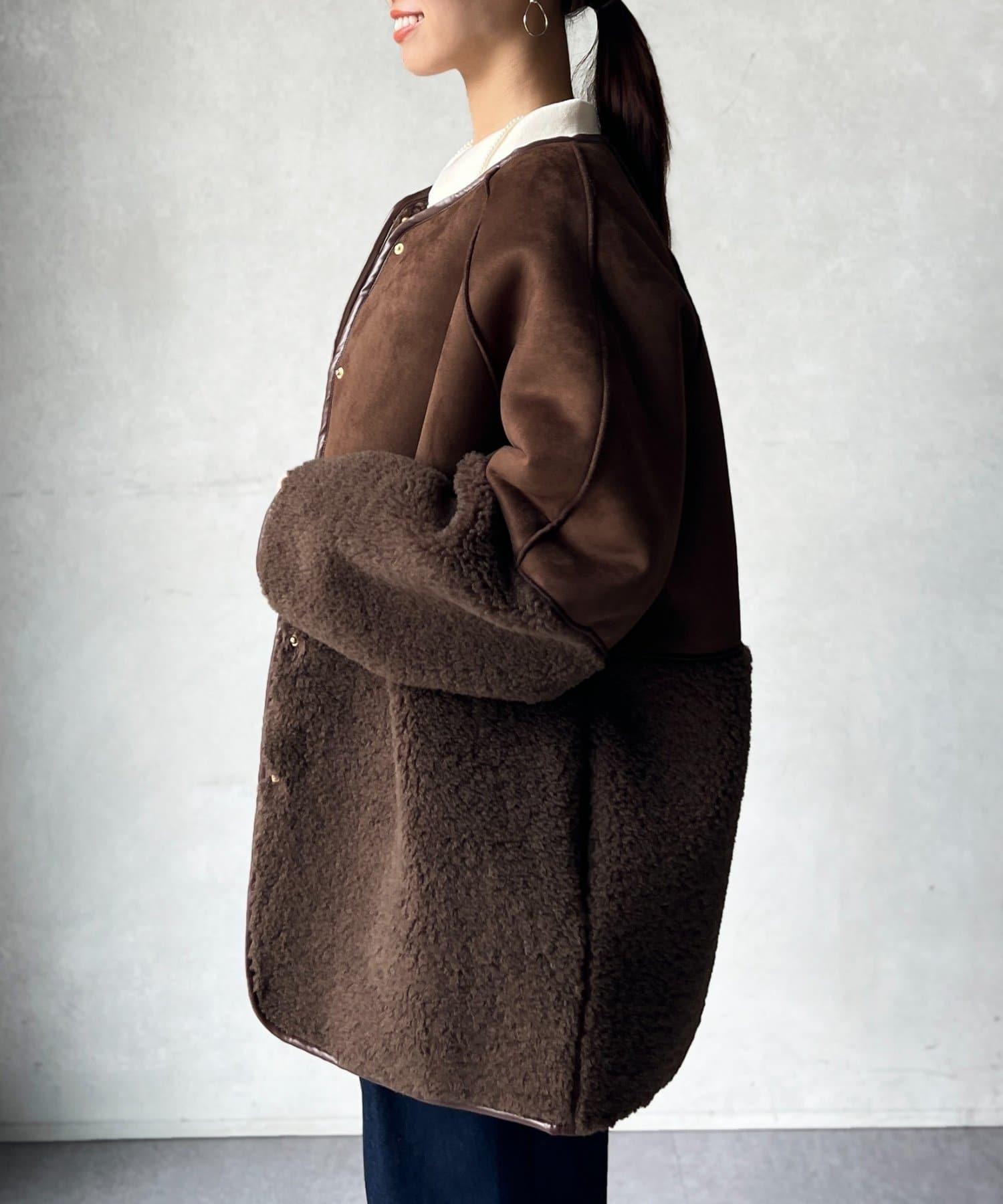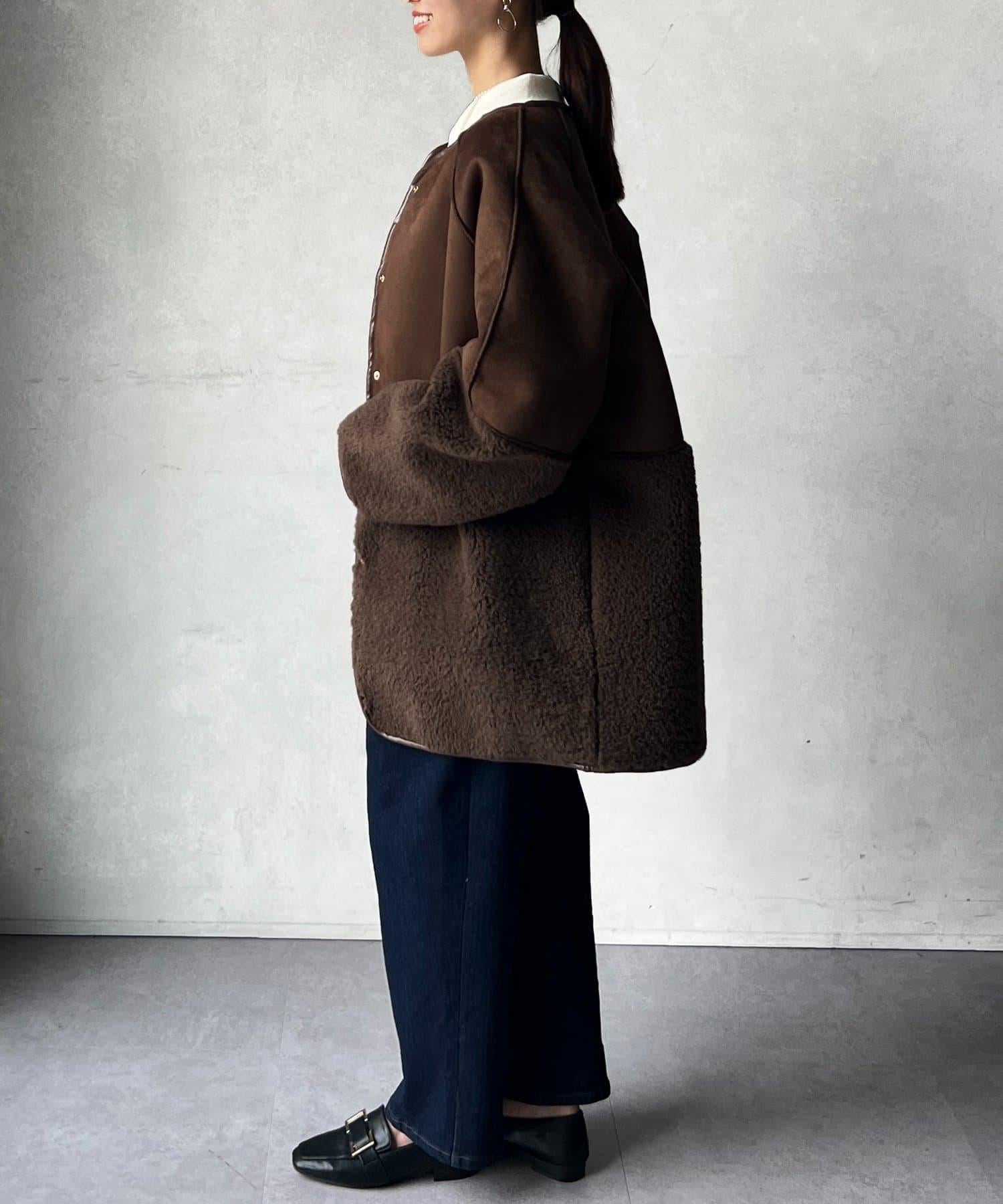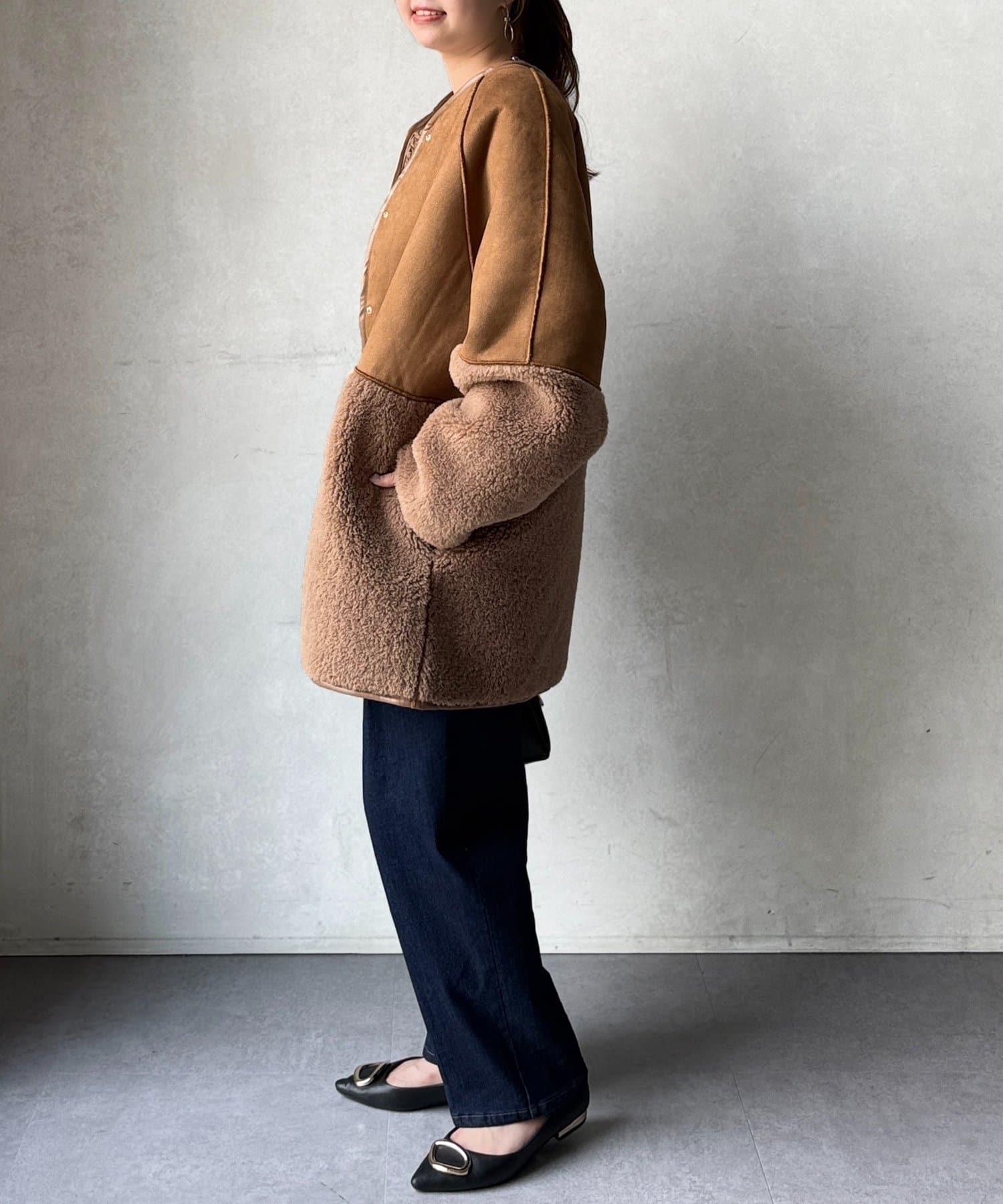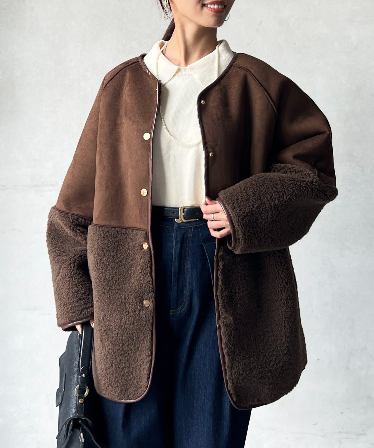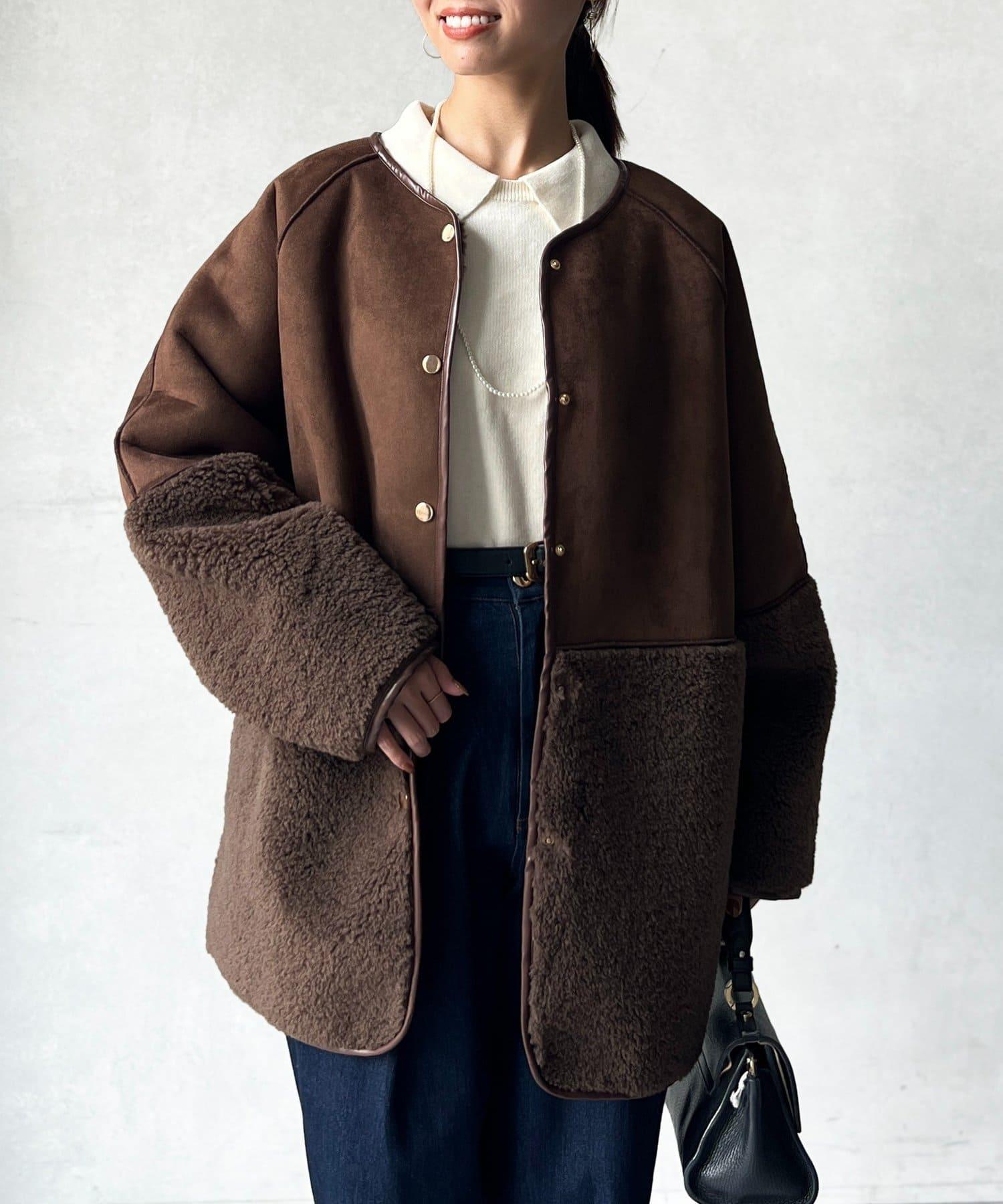 可與高領毛衣和圍巾搭配!廓形有一種呆板的墜落感,不會產生體積感。