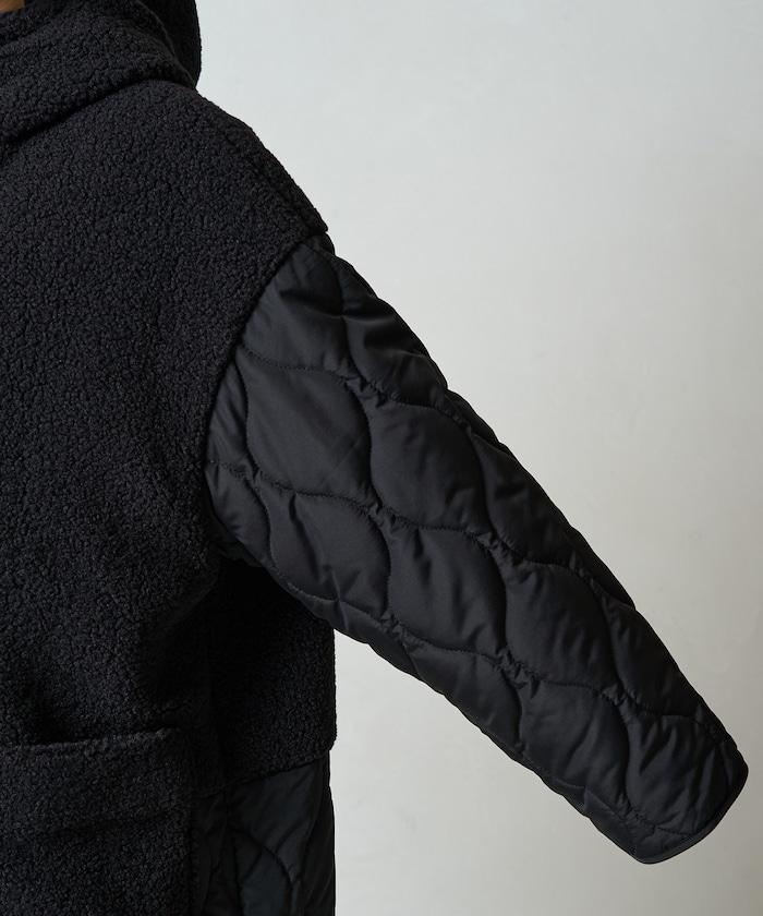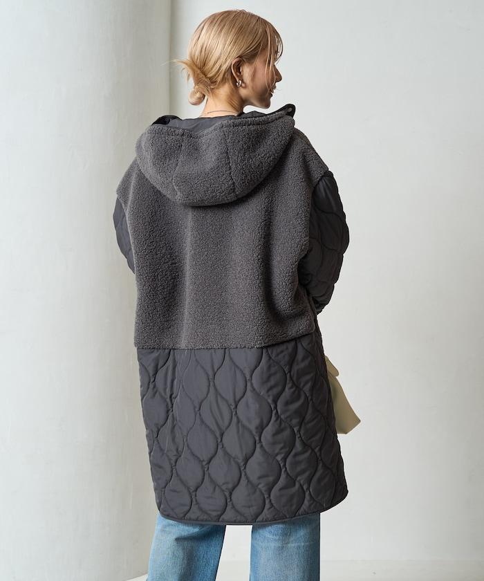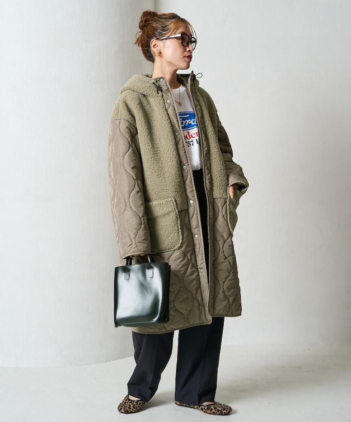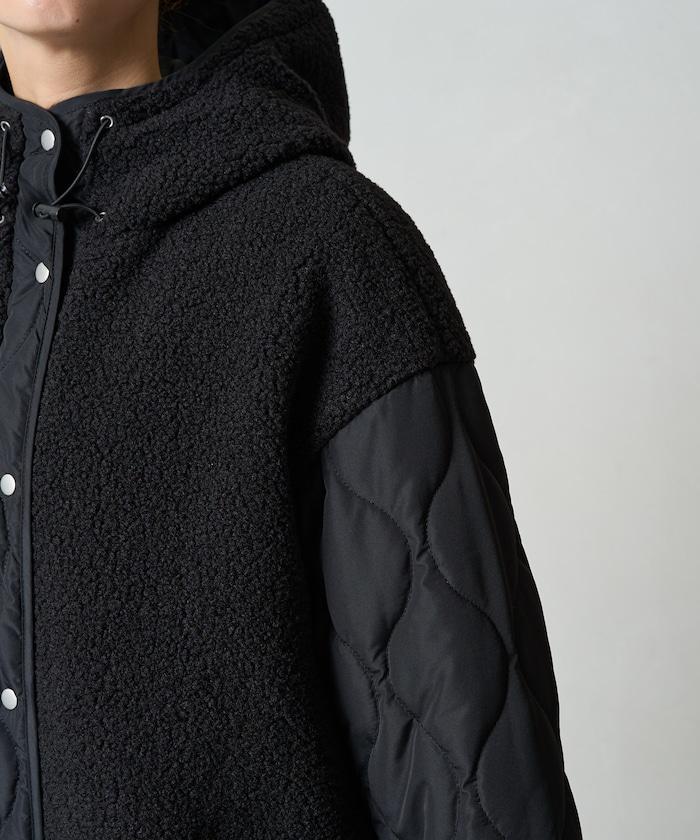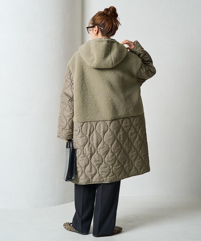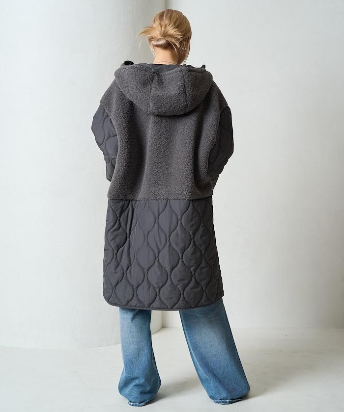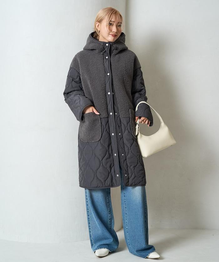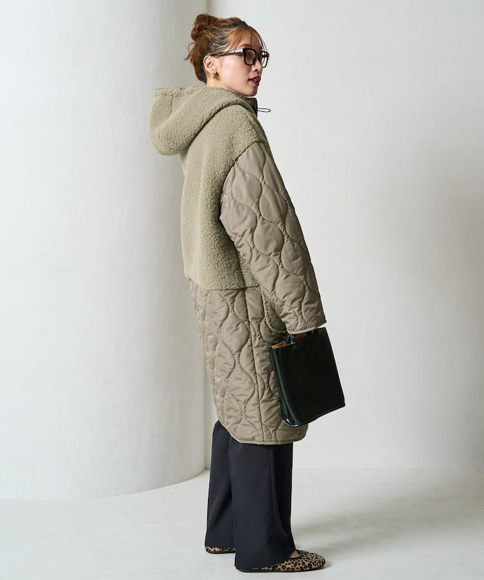 大衣採用溫暖的蟒蛇毛和休閒的絎縫對接。