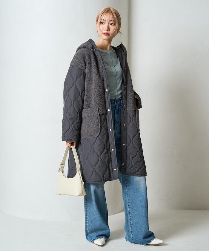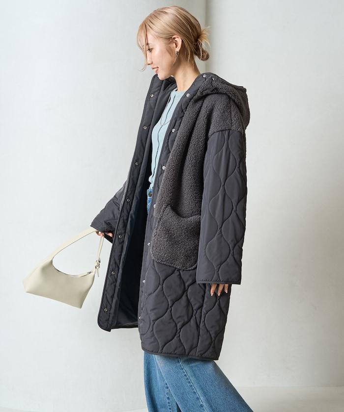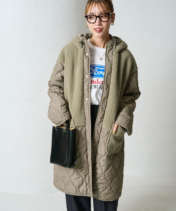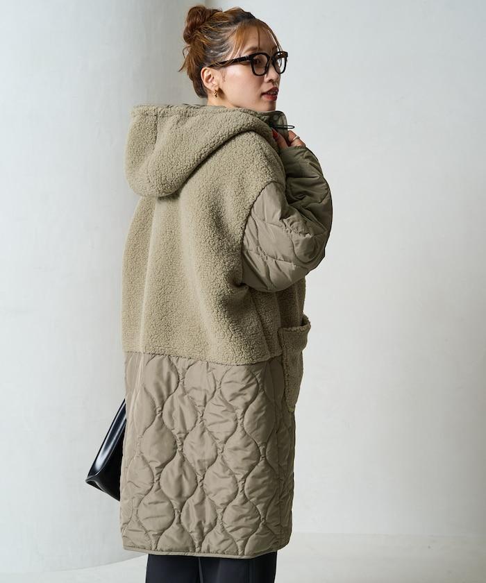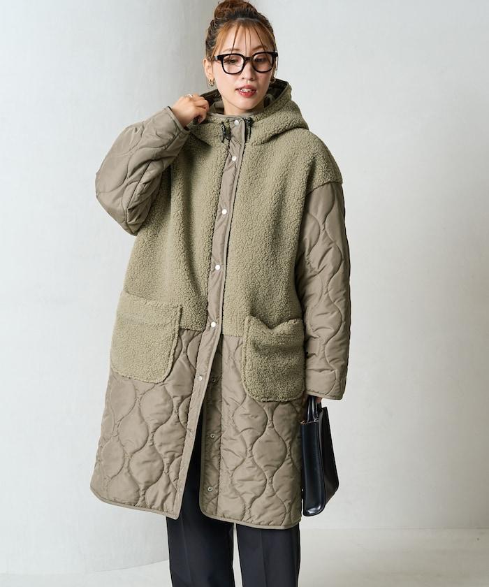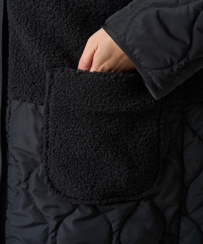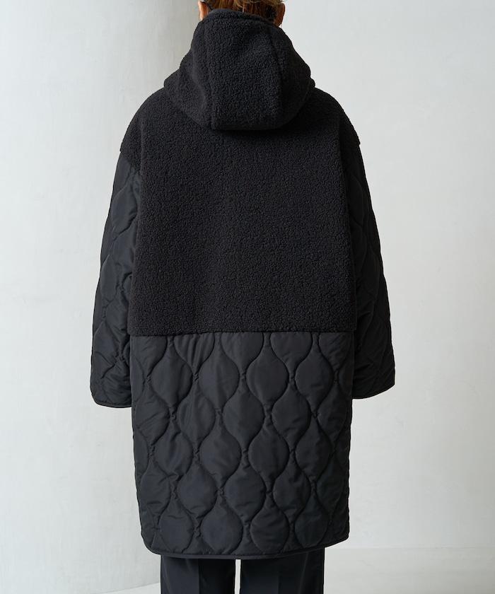 大衣採用溫暖的蟒蛇毛和休閒的絎縫對接。