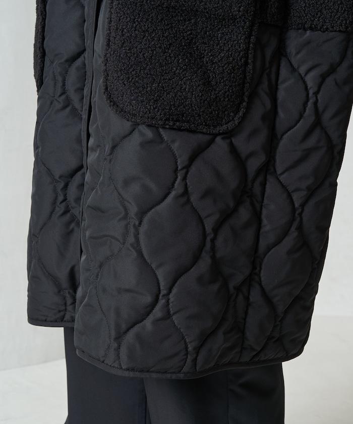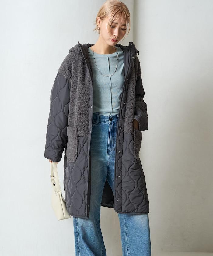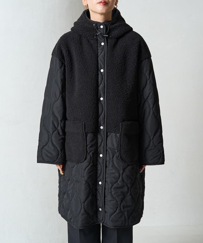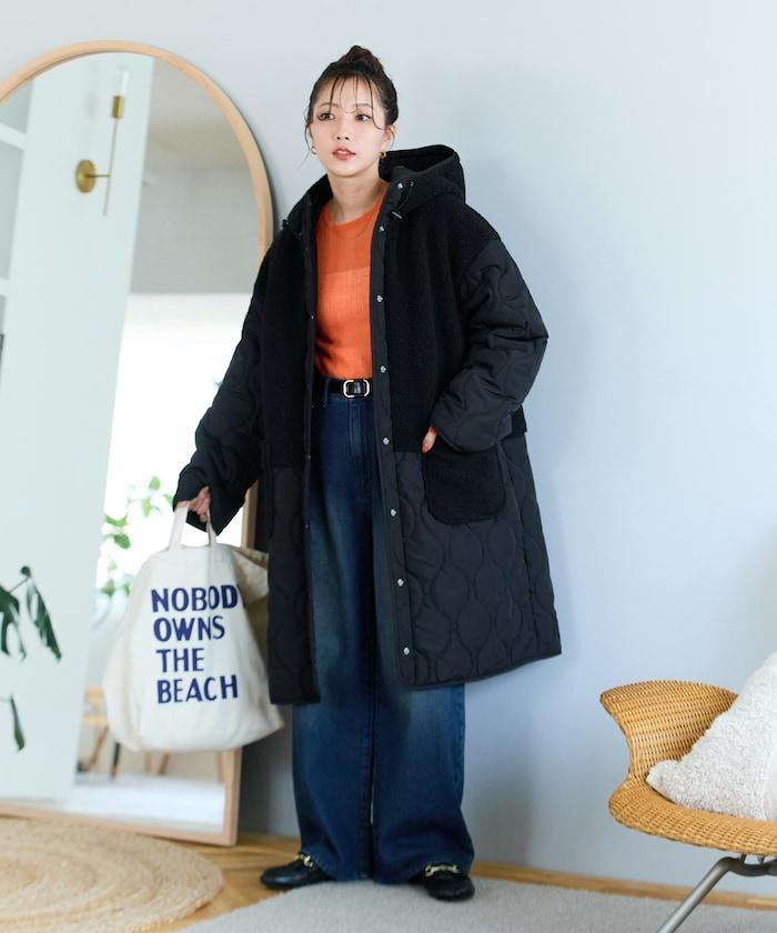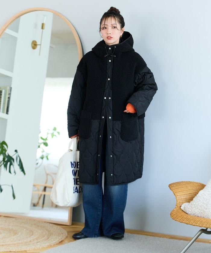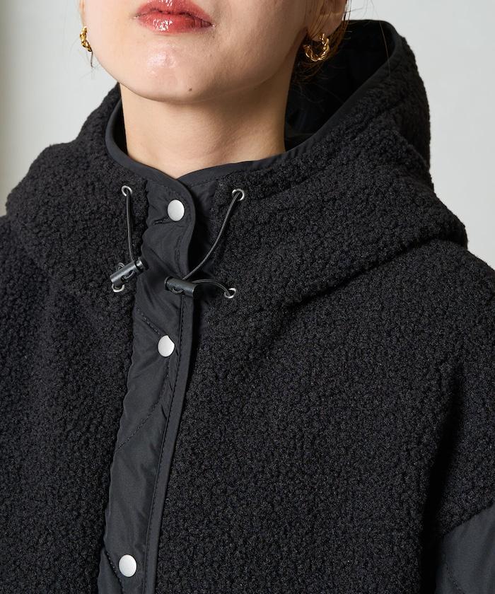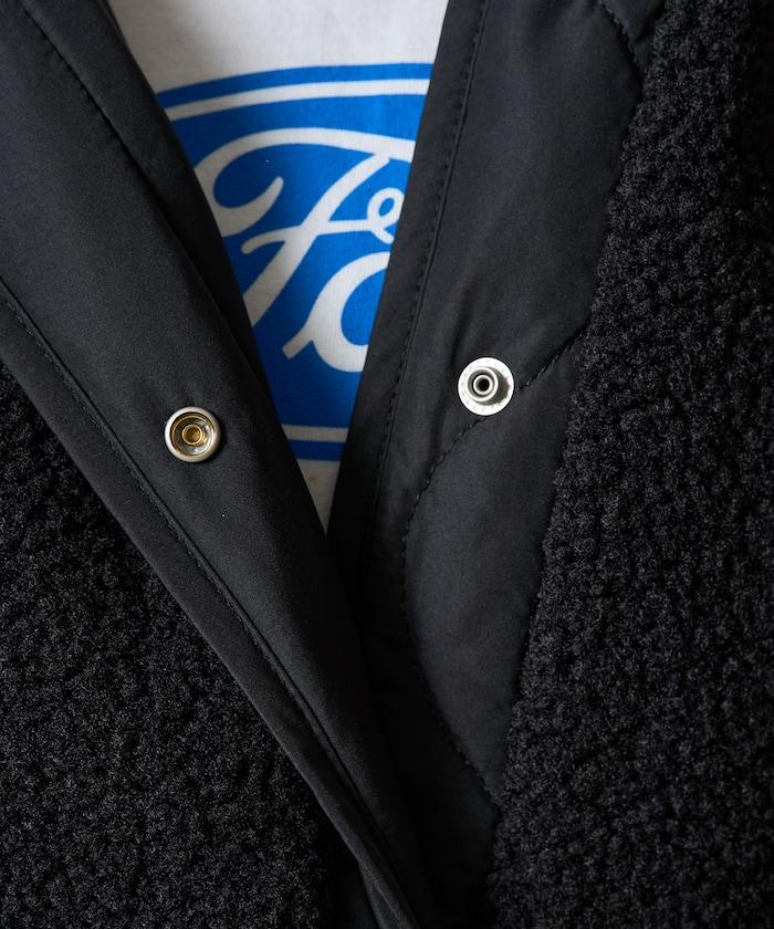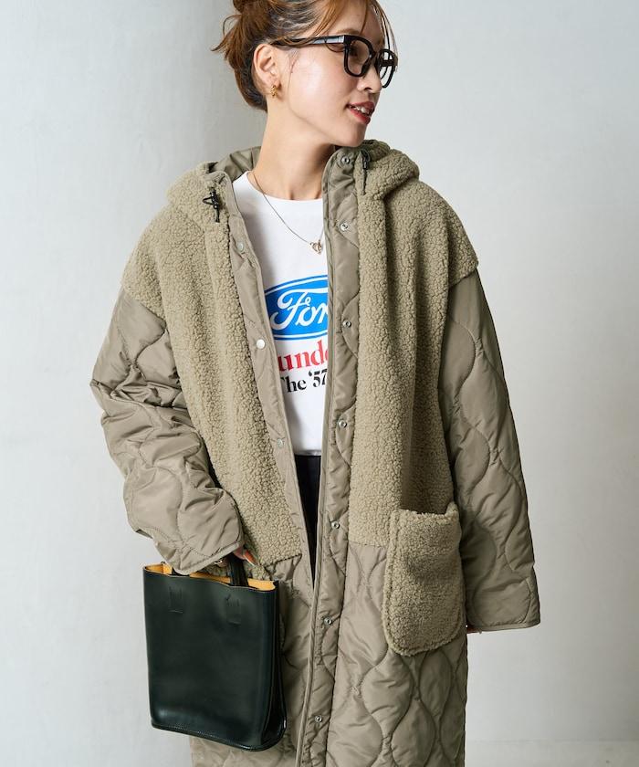 大衣採用溫暖的蟒蛇毛和休閒的絎縫對接。