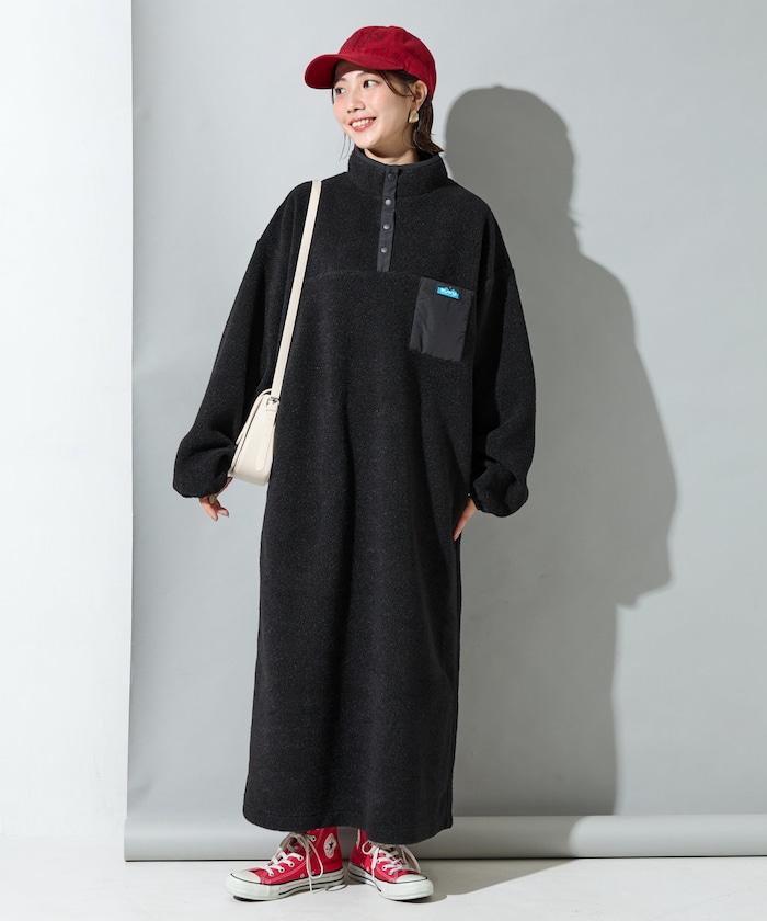 帶有保暖圍巾和按扣的連體褲,寬鬆感十足。