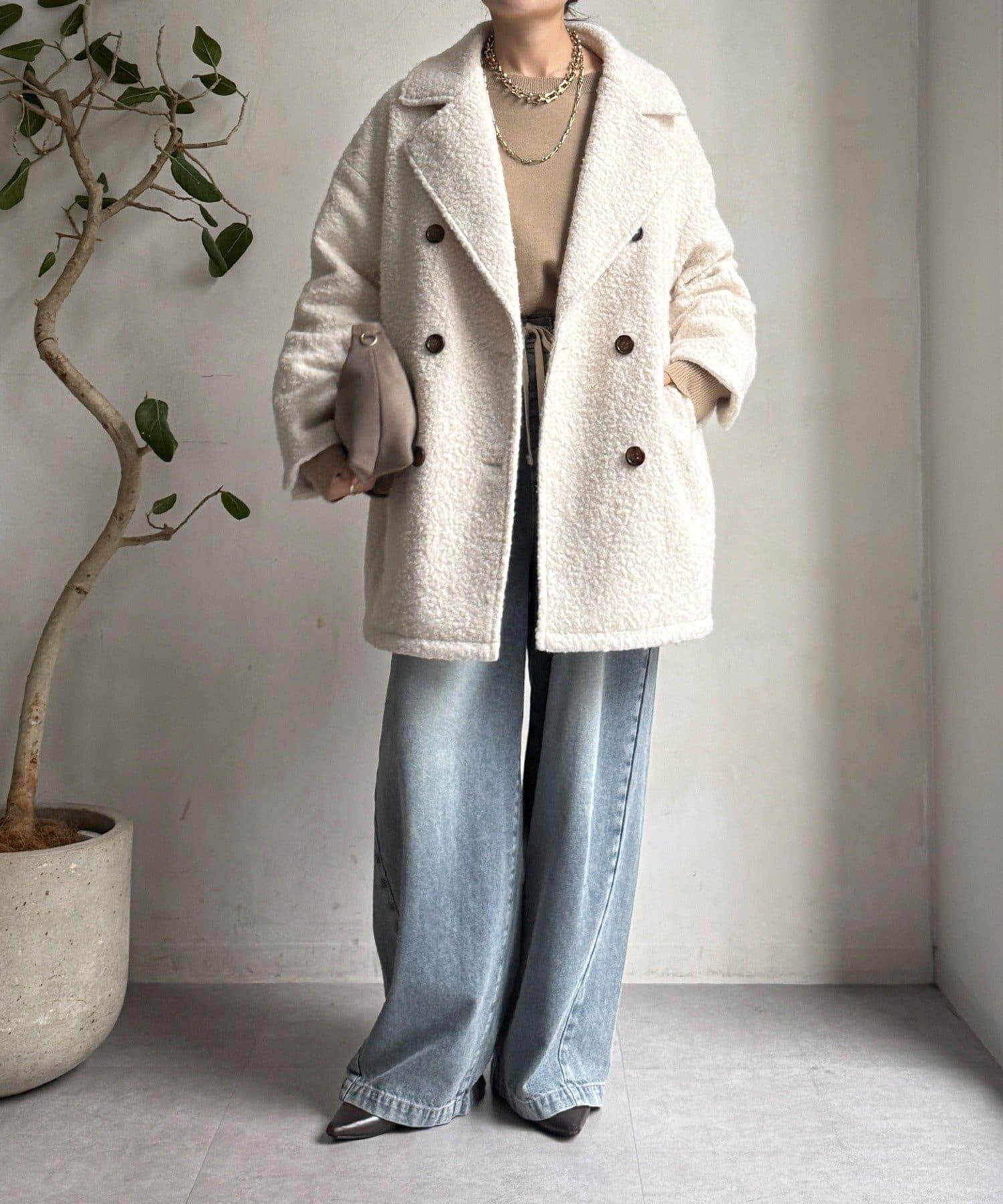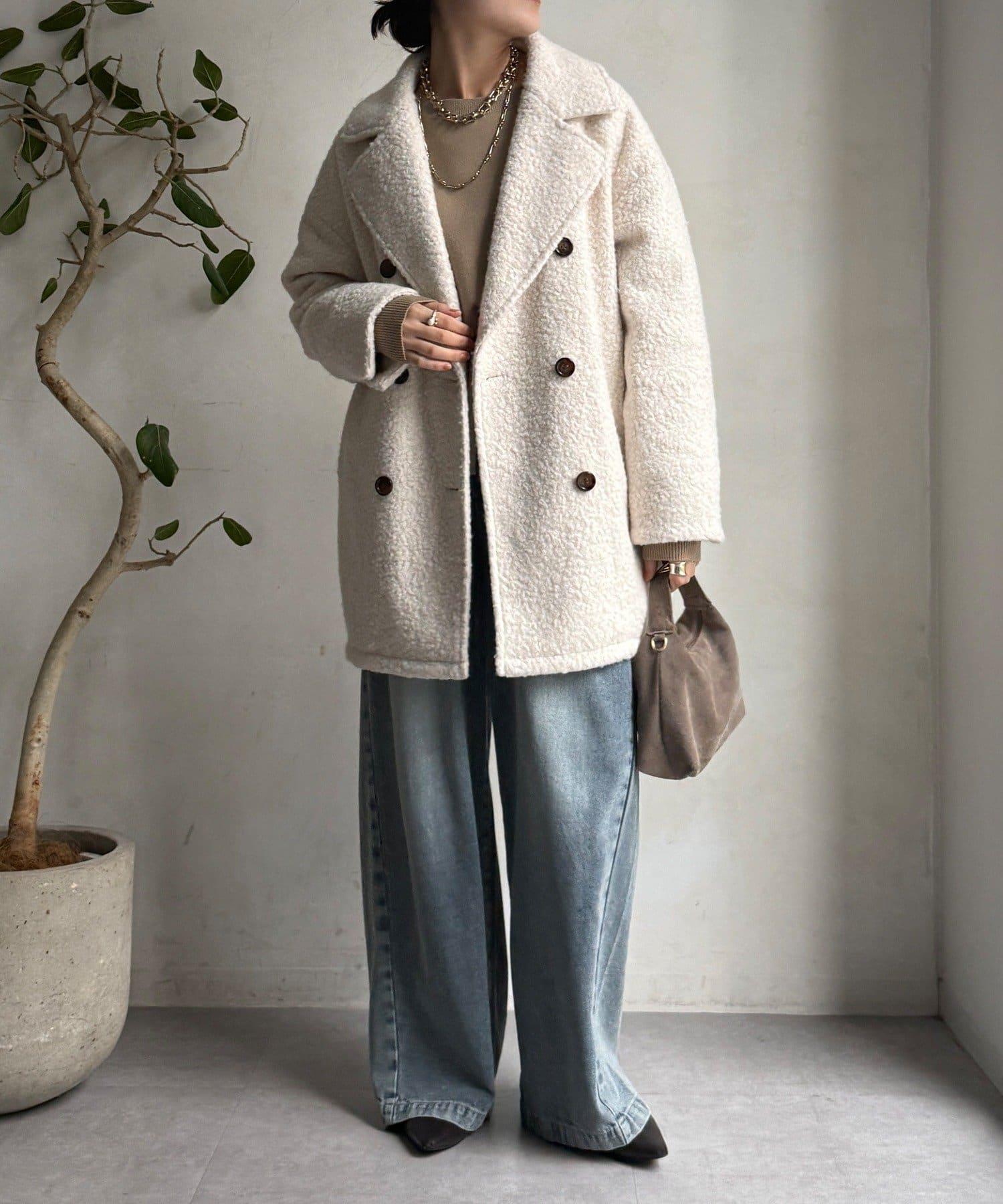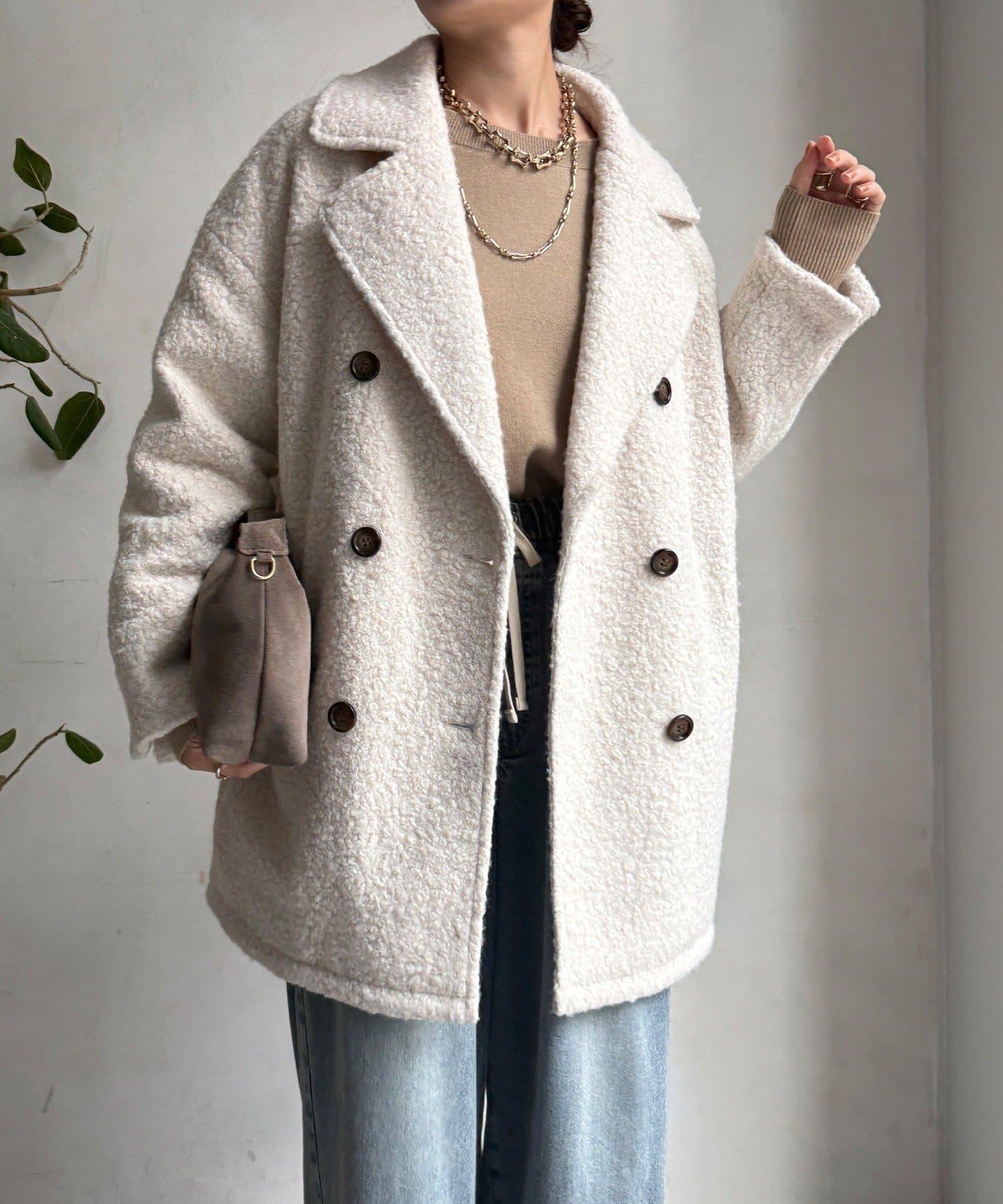 本季👍熱門的雙排扣大衣將蟒蛇毛的蓬鬆質感與整齊的剪裁設計完美結合!