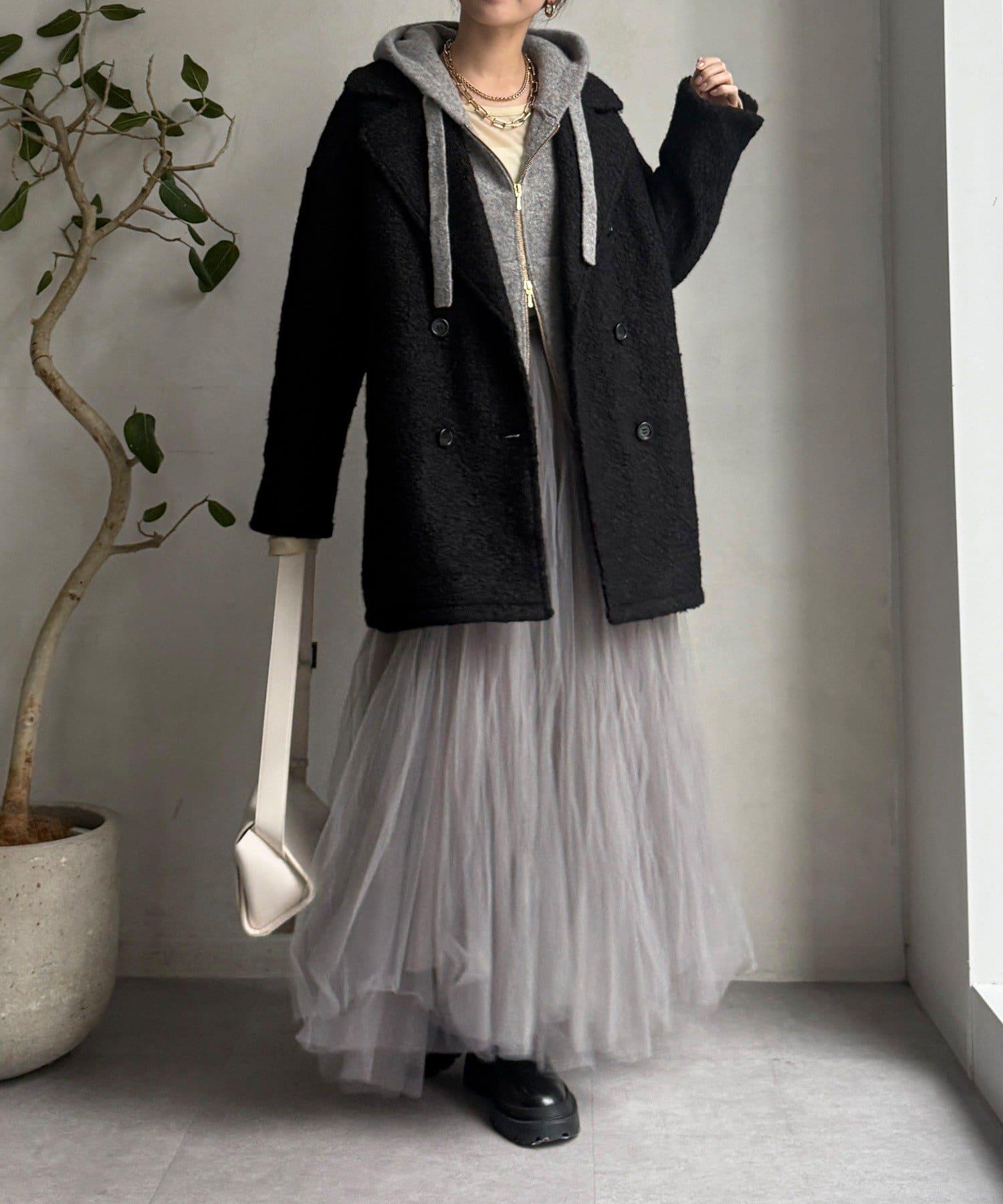 這款大衣是冬季的明星產品,無論敞開還是收起都非常好看。