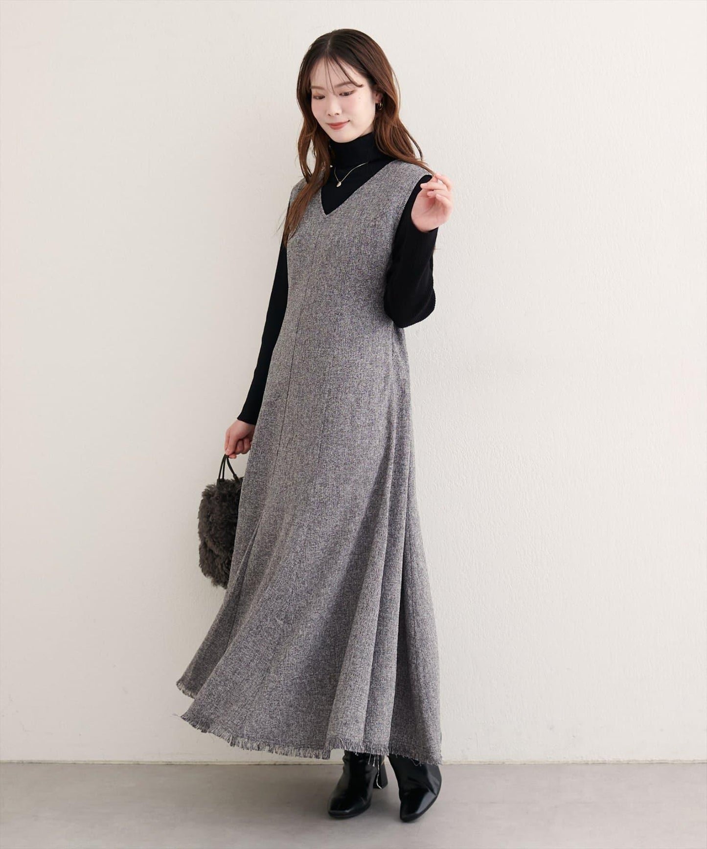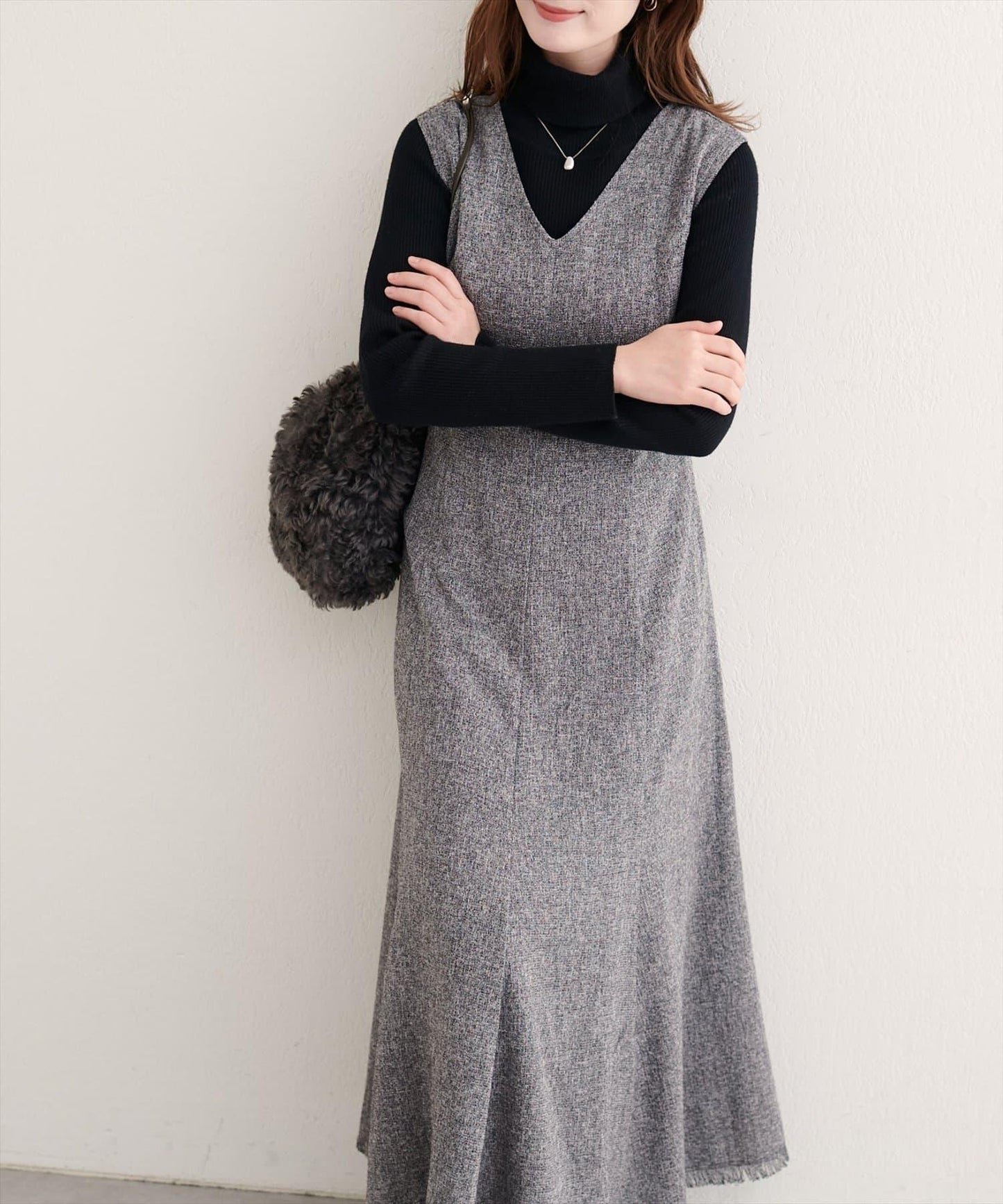 也可以與高領針織衫疊穿。