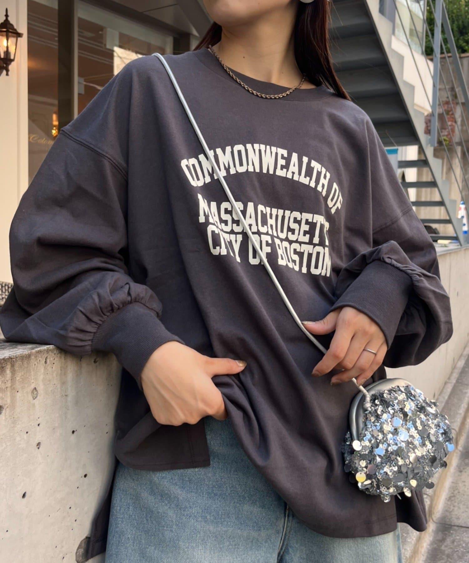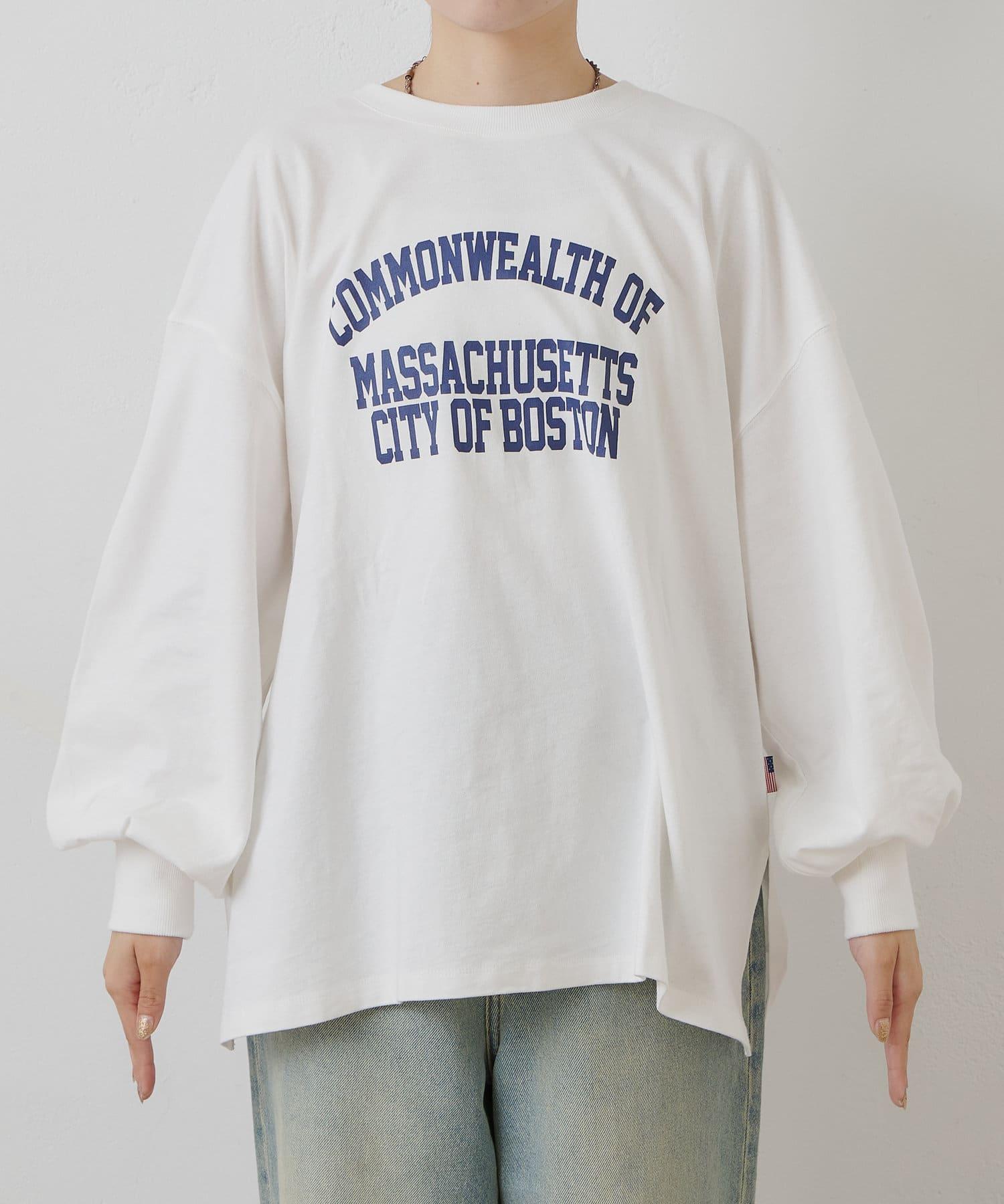 美國棉印花袖子蓬鬆袖標T恤