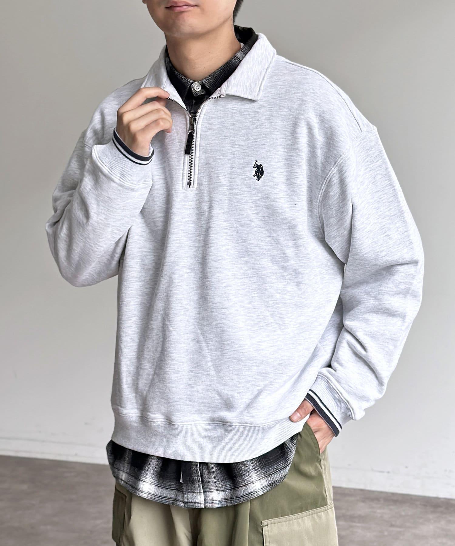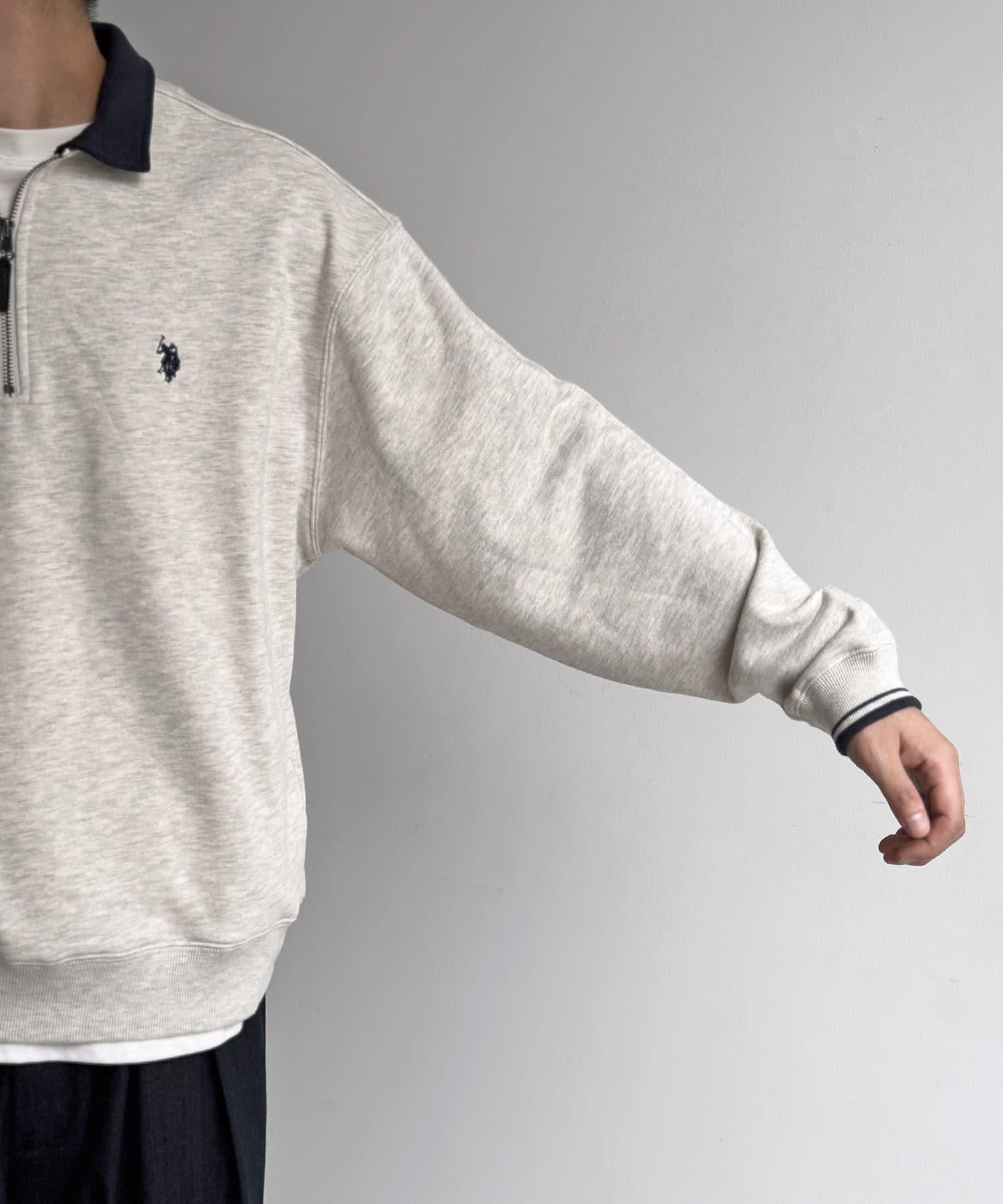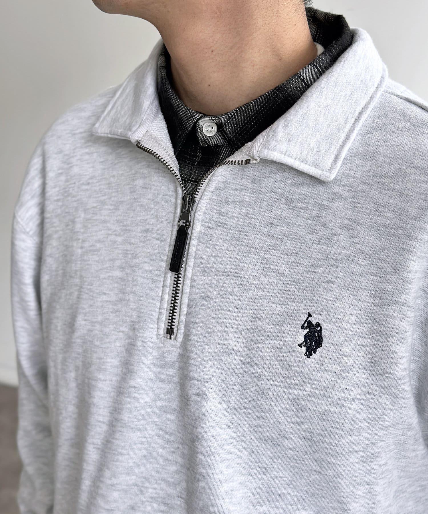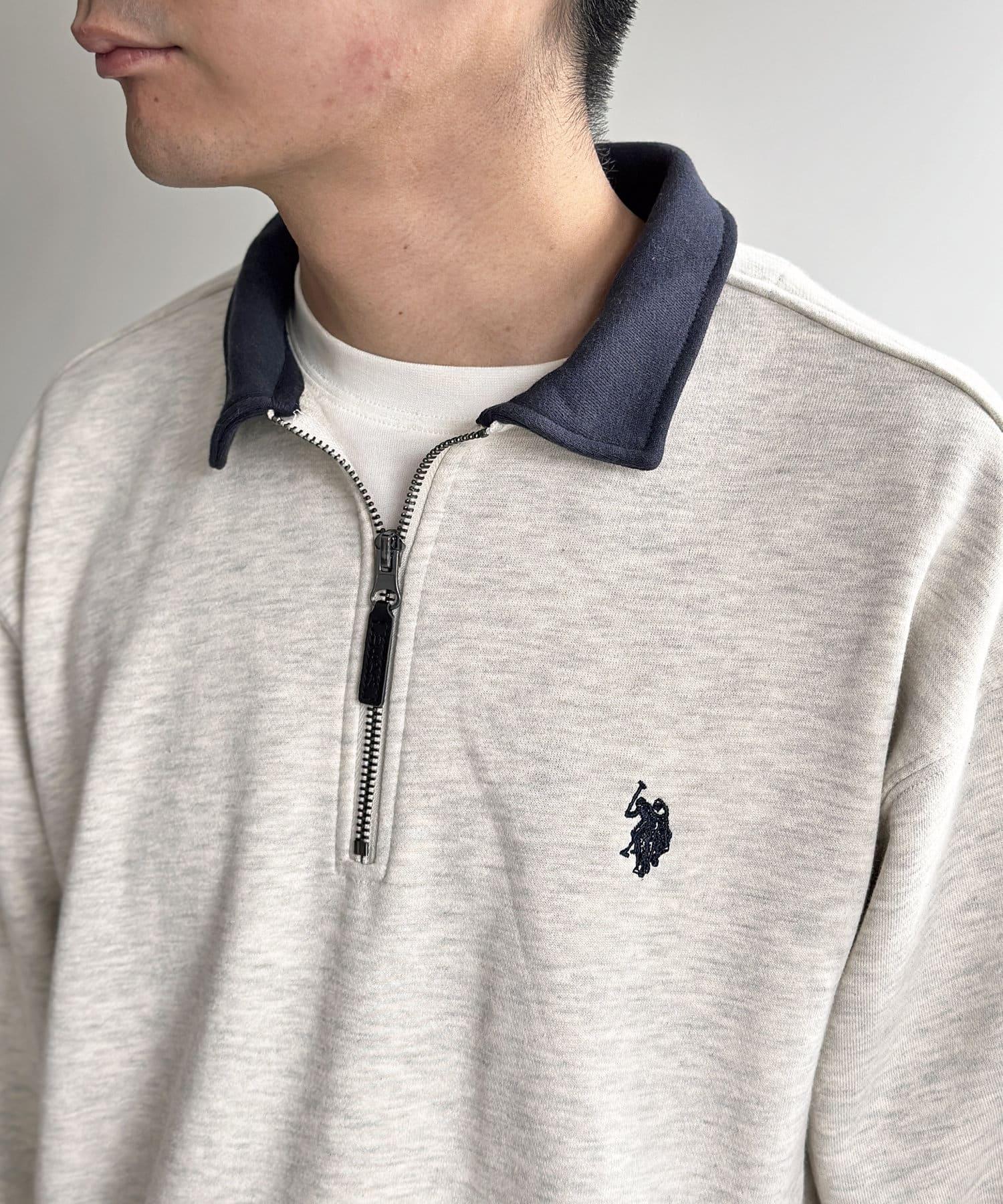 【美國馬球協會】裡毛領半拉鍊套頭衫
