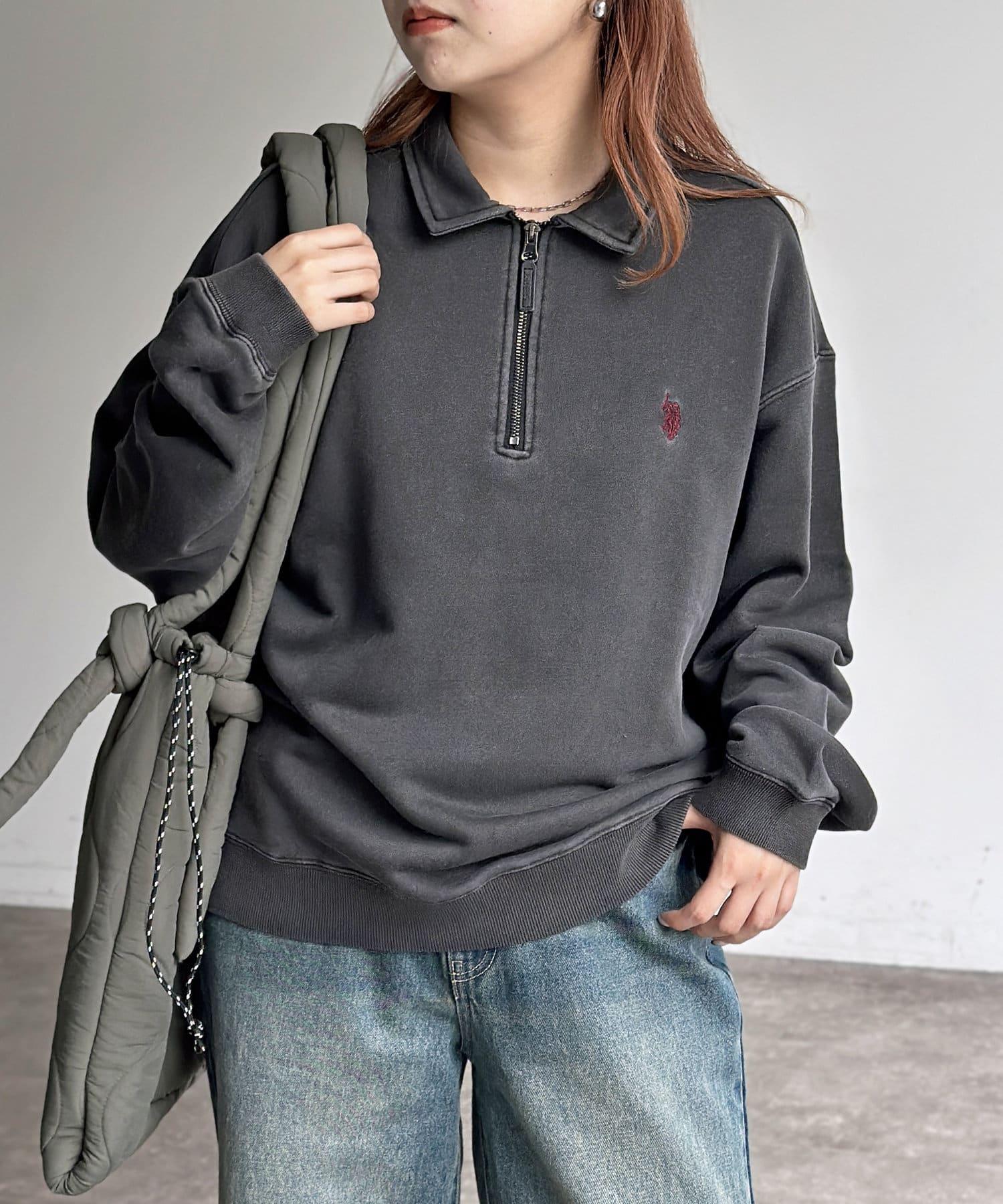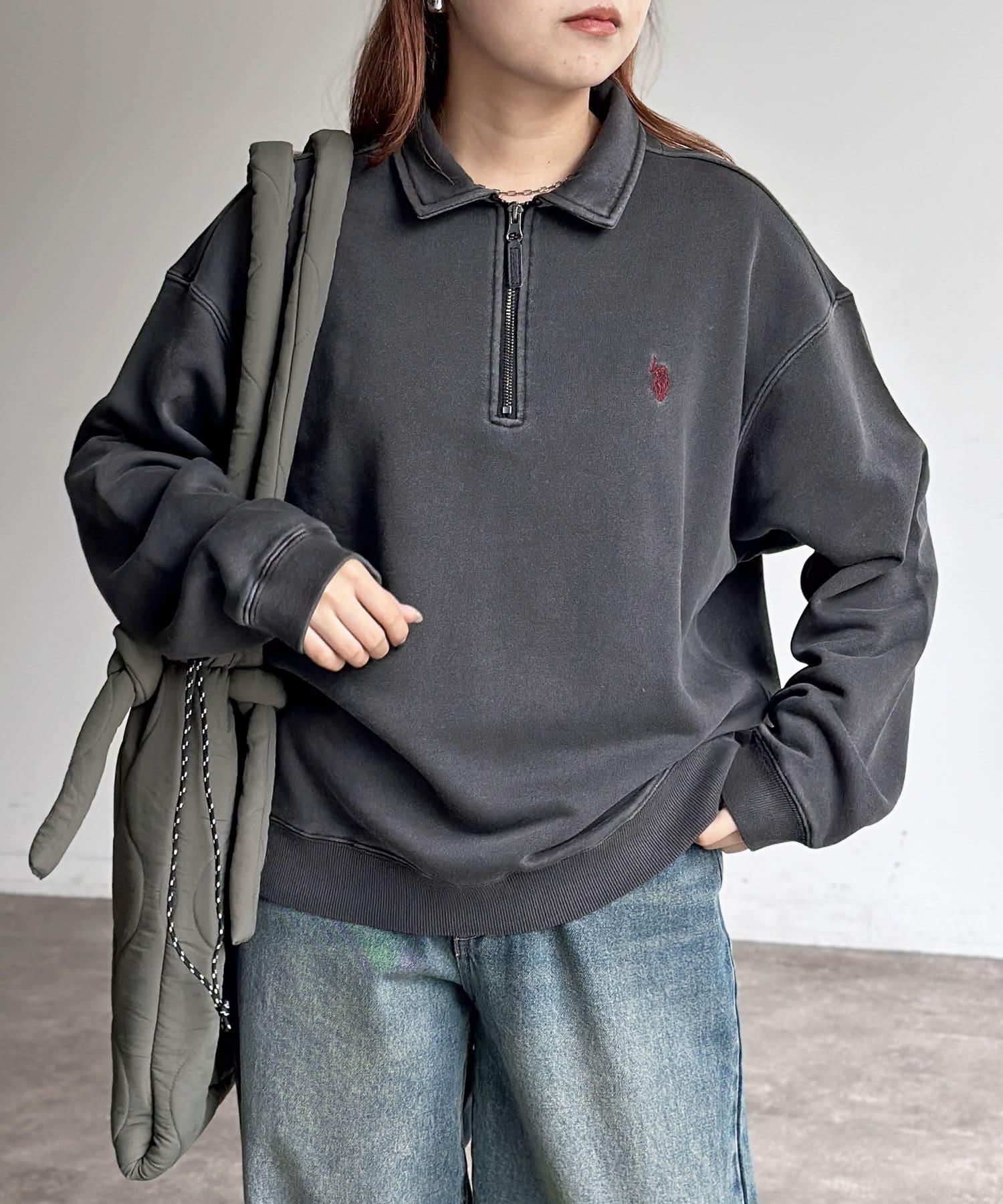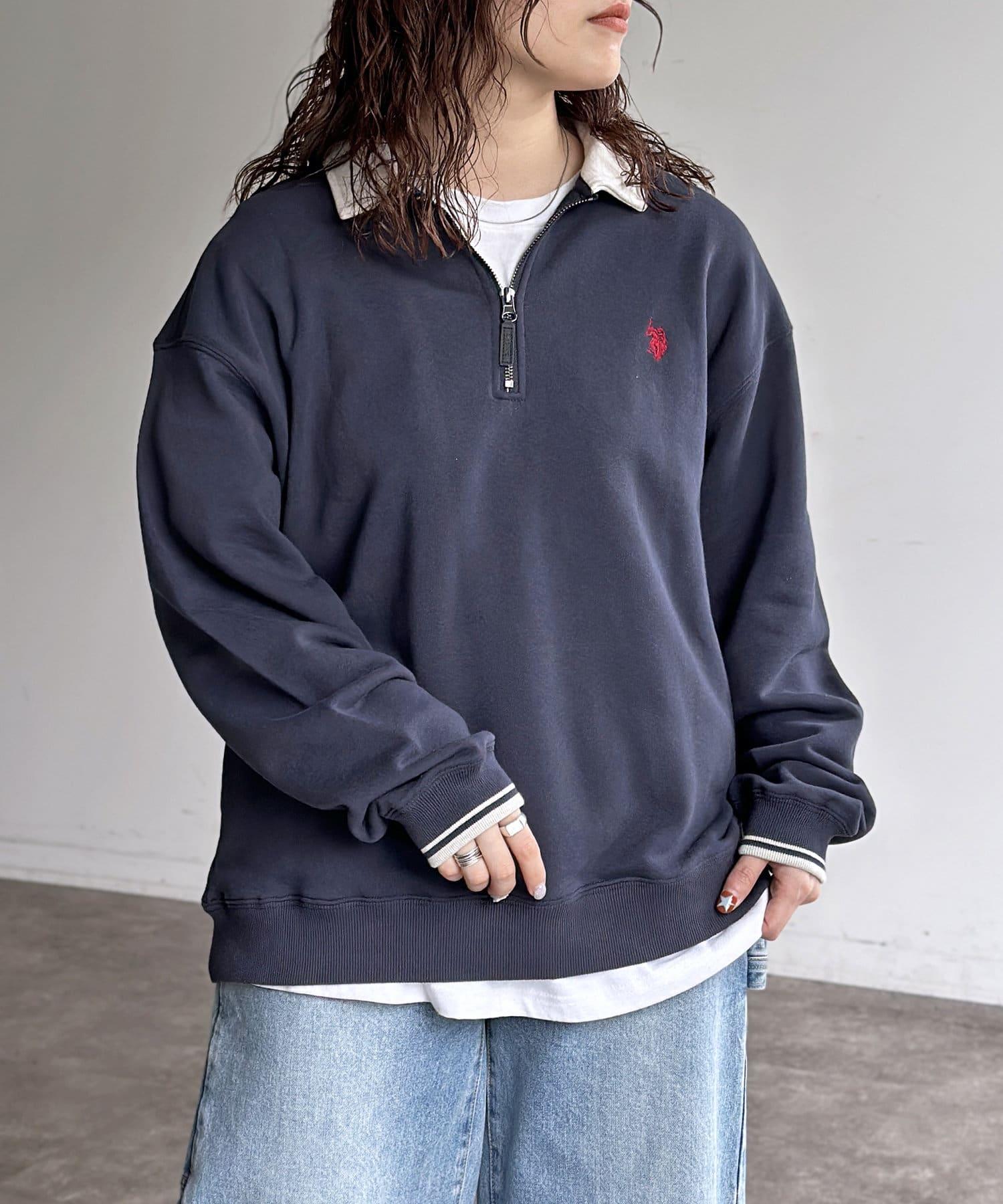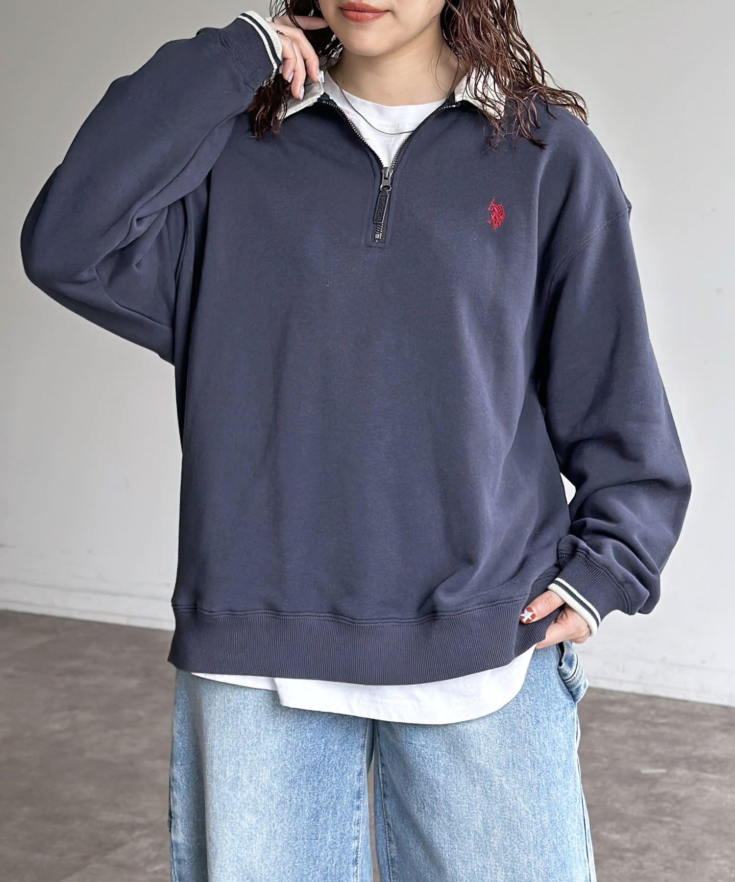 【美國馬球協會】裡毛領半拉鍊套頭衫