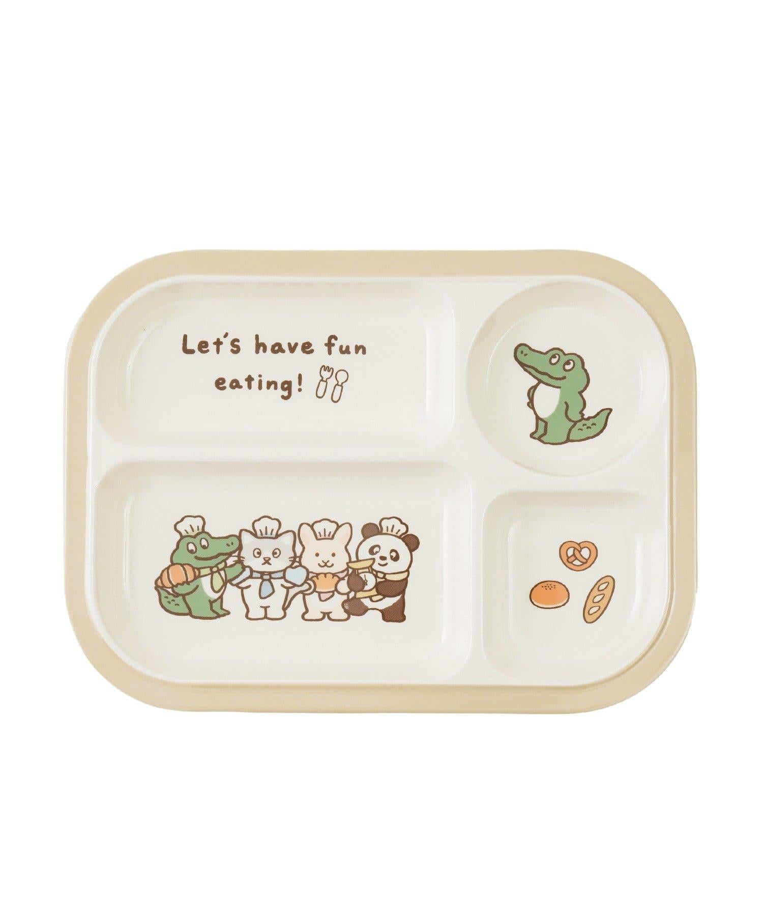 盤子上的小動物拿著麵包和麵包的設計非常可愛。