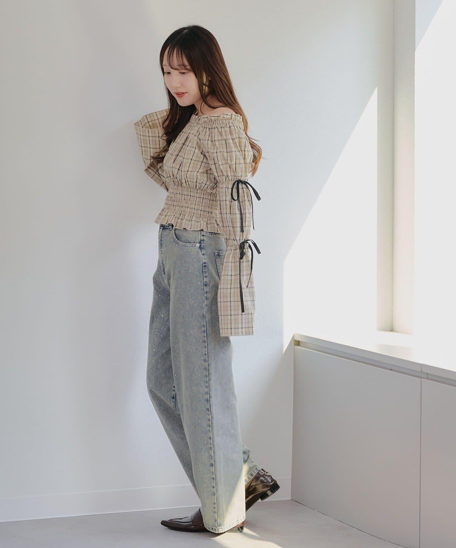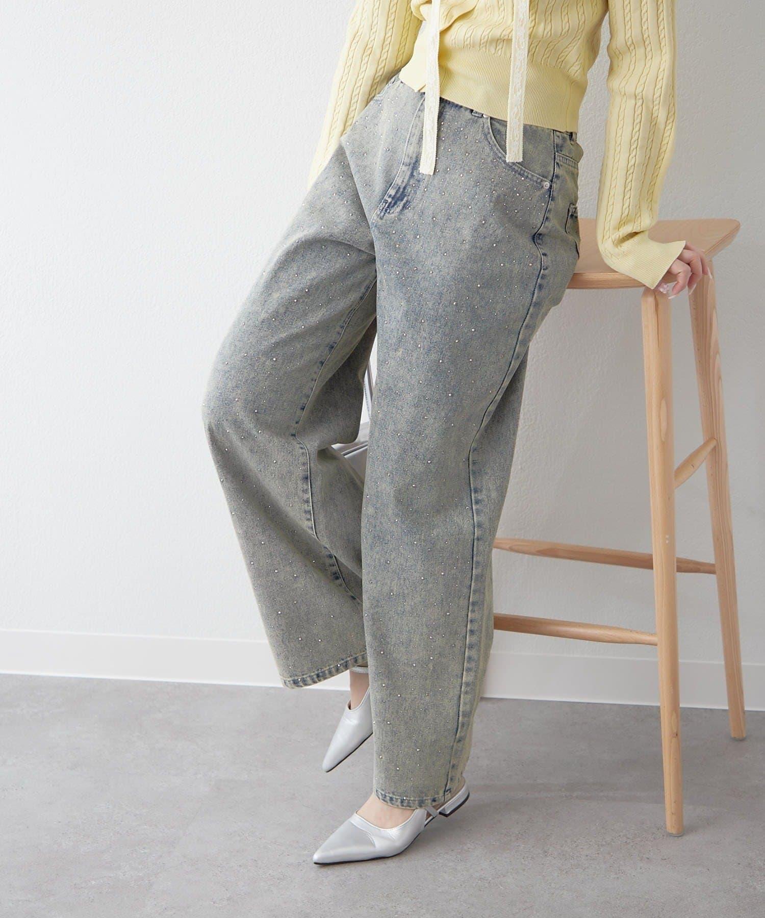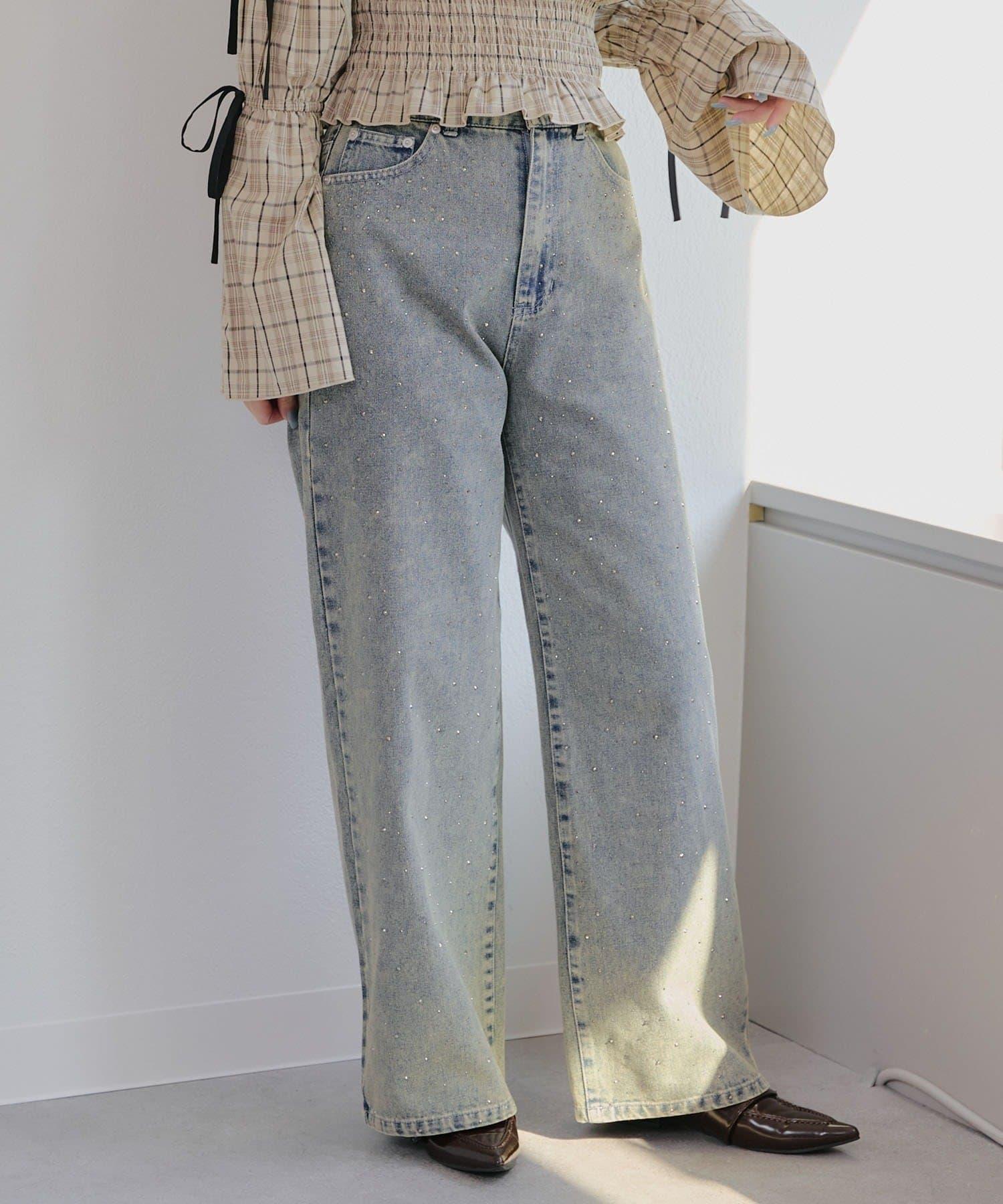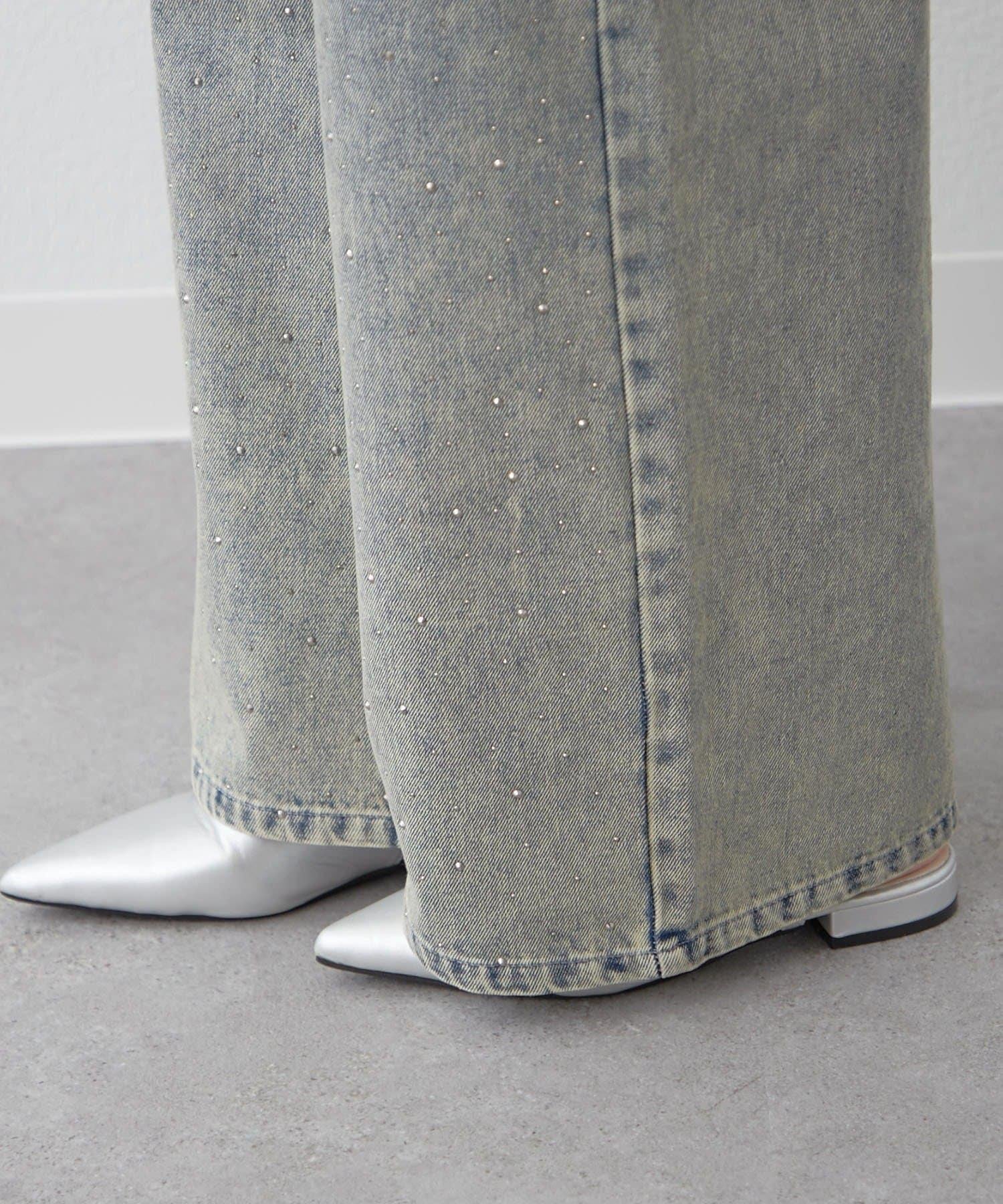 這款鑲嵌閃亮寶石的牛仔長褲是必備單品。