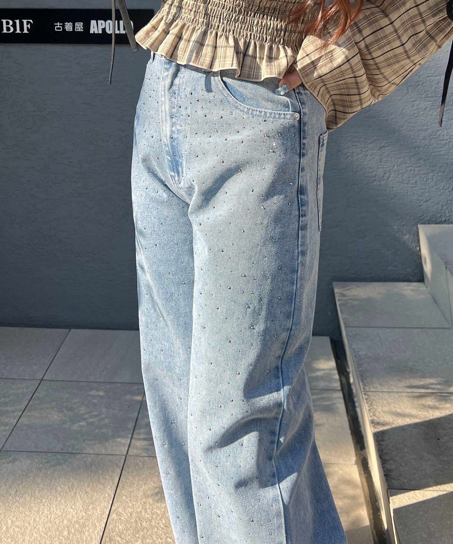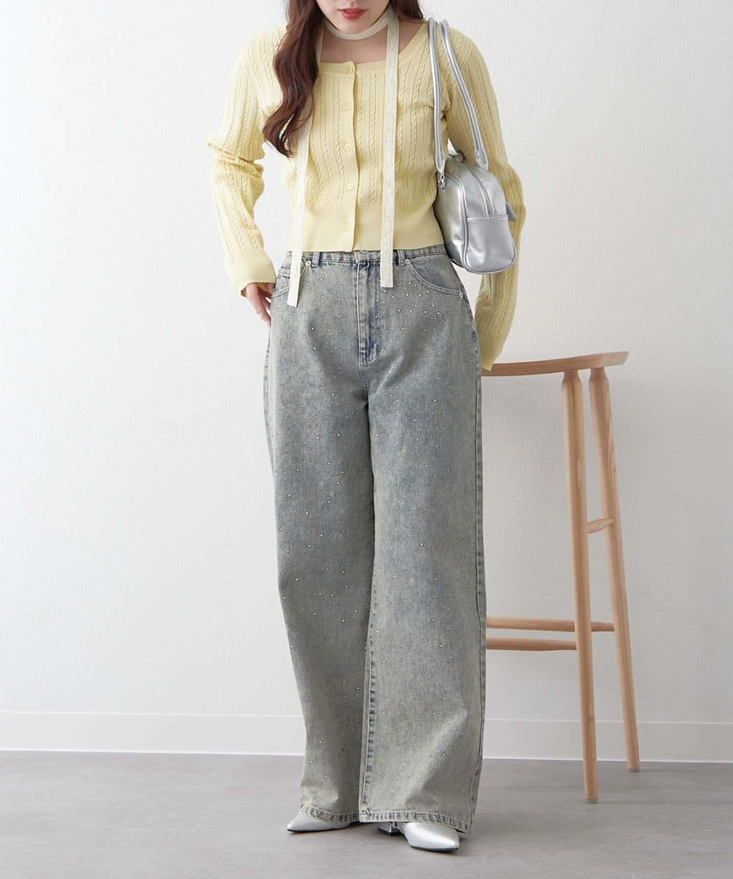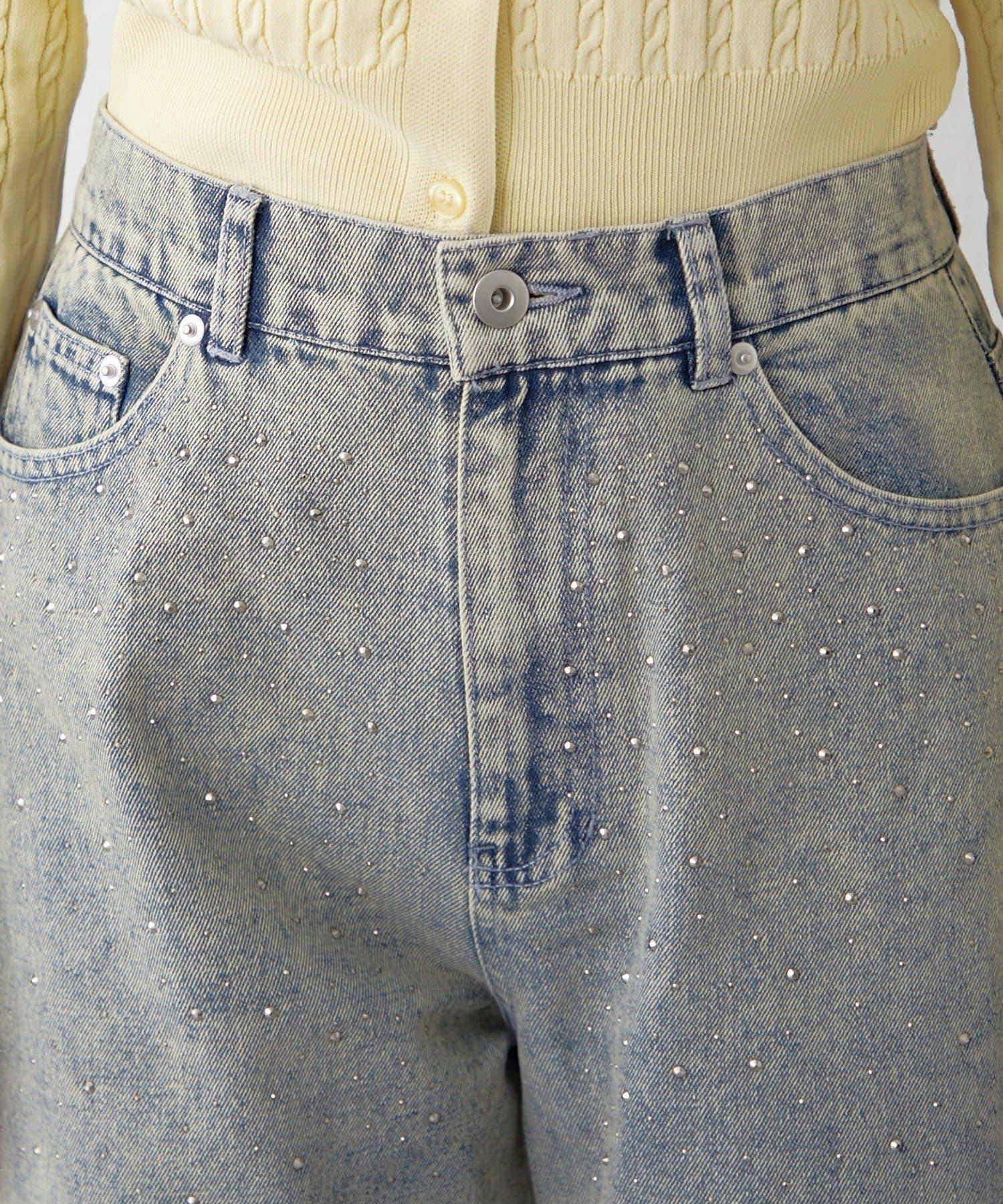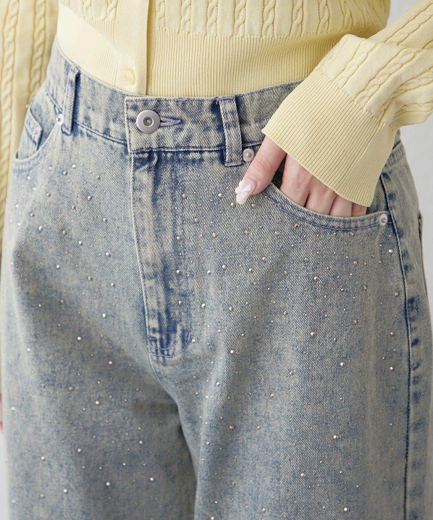 牛仔長褲鑲嵌寶石,每一個動作都熠熠生輝。