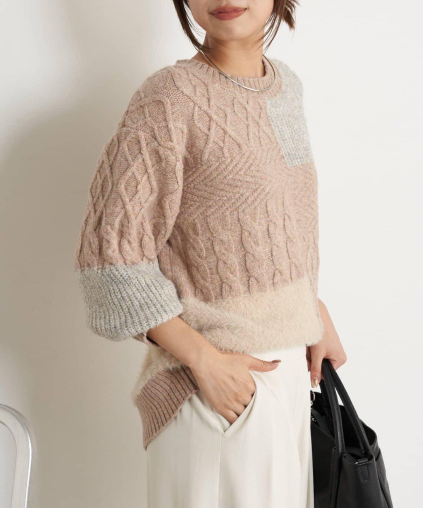 板式設計與細緻的針織面料、材料和色彩切換相得益彰,令人眼前一亮。