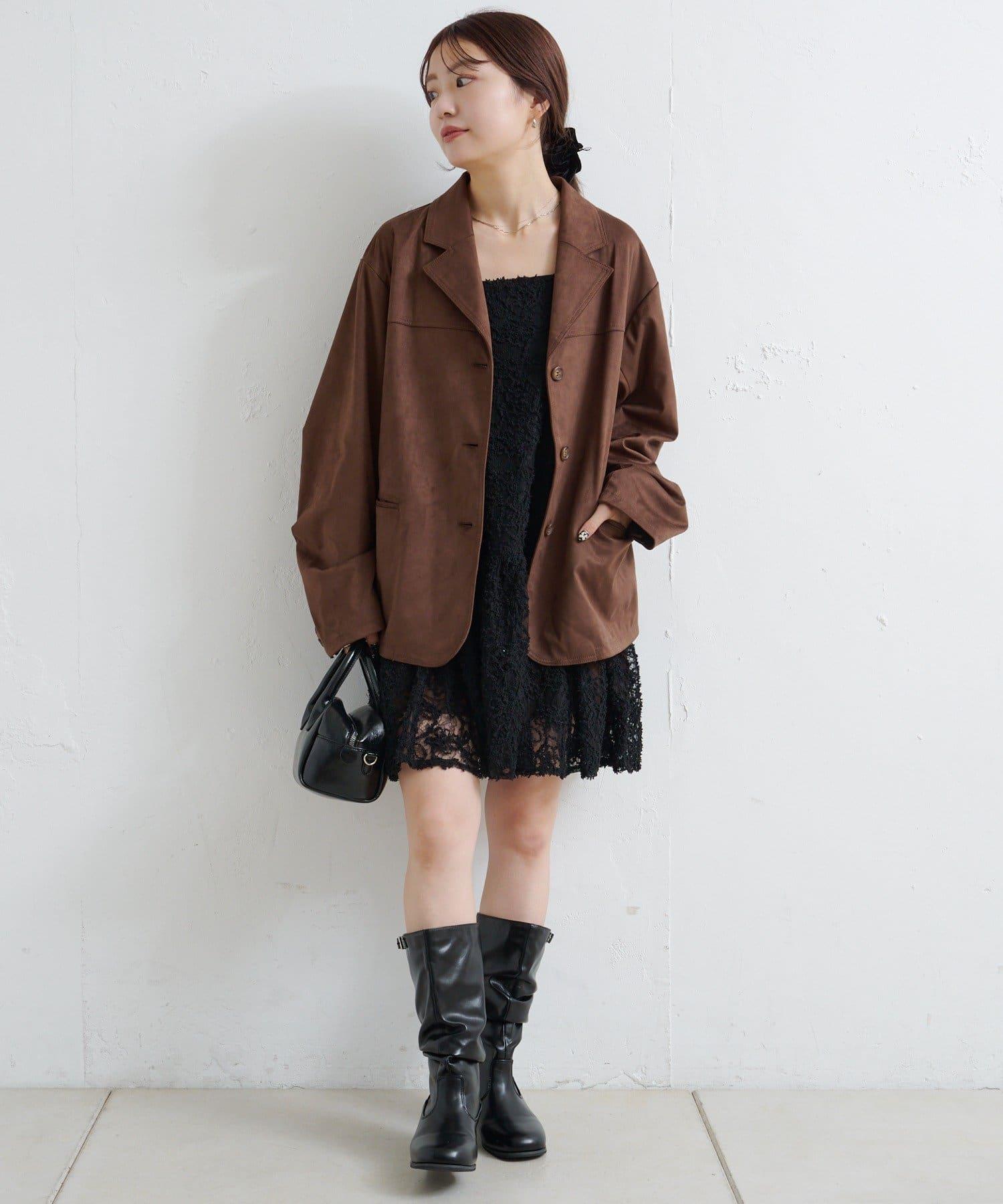 使用了精緻的蕾絲材料。如果與粗糙的表面摩擦,或被包、皮帶或尖銳物品夾住,蕾絲的縷線很容易浮起,可能會被割斷。請小心處理。