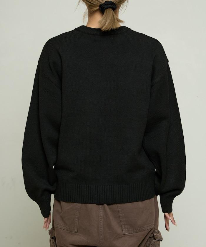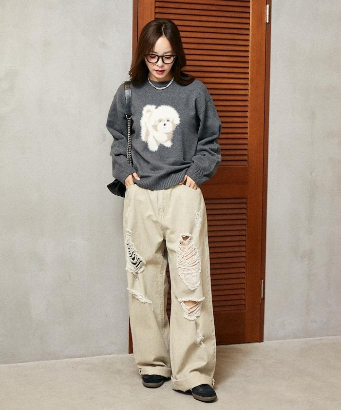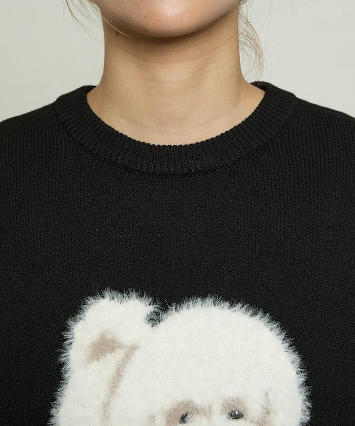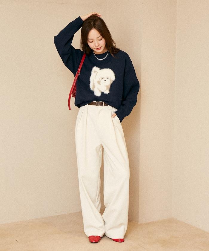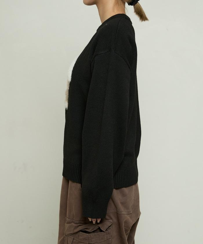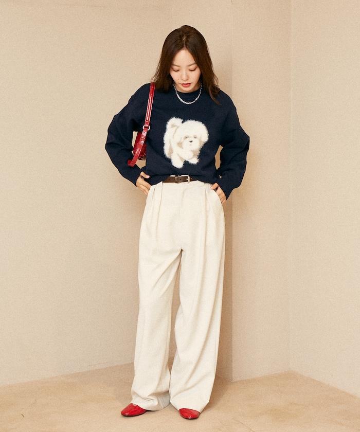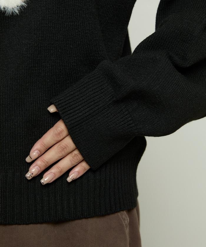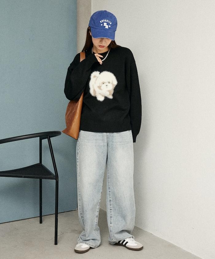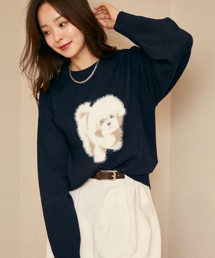 用蓬鬆的羽毛紗線編織的小狗提花圖案應用於胸前,設計感十足。