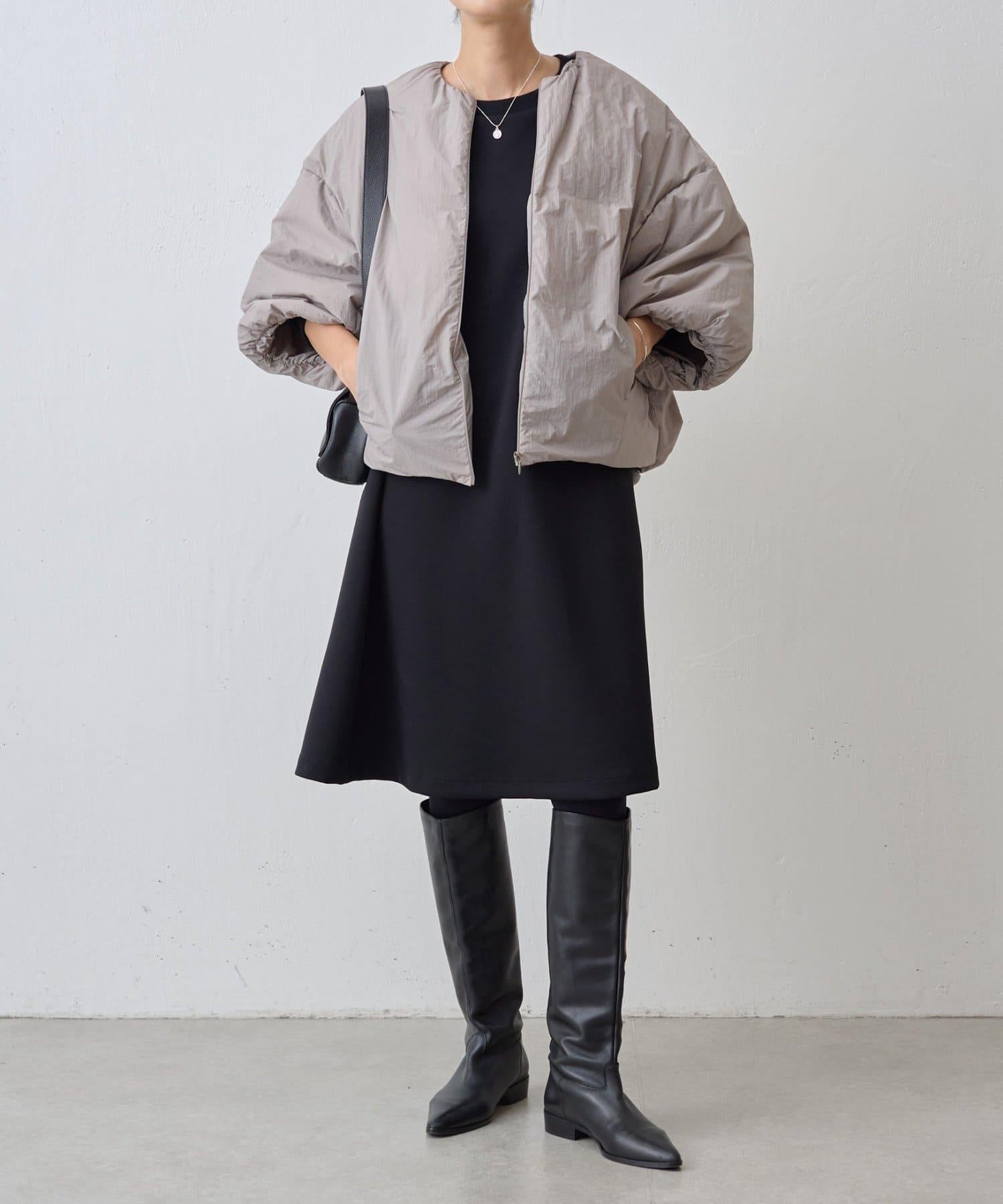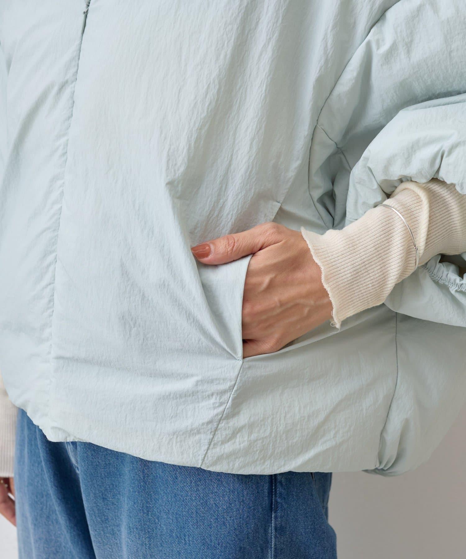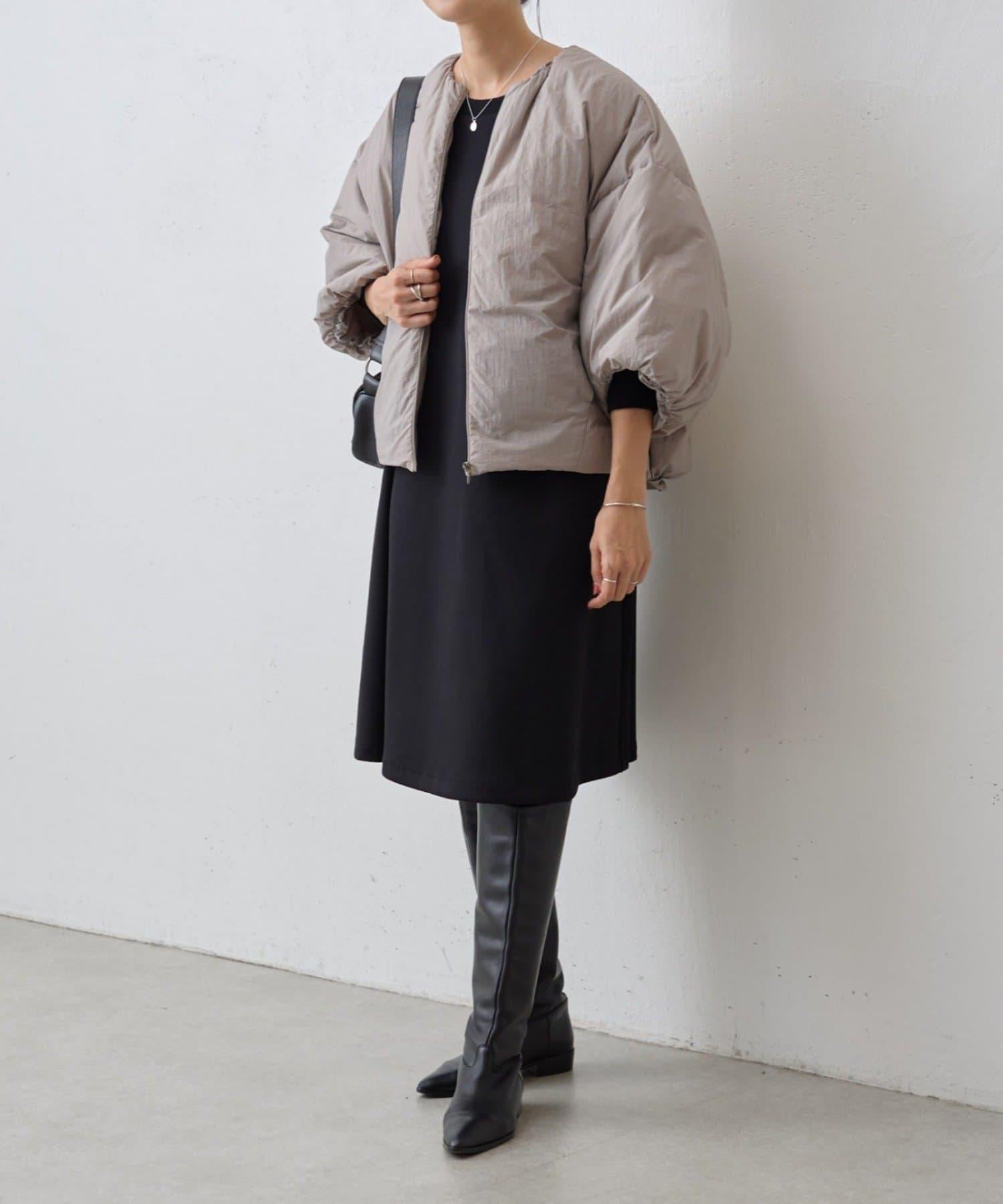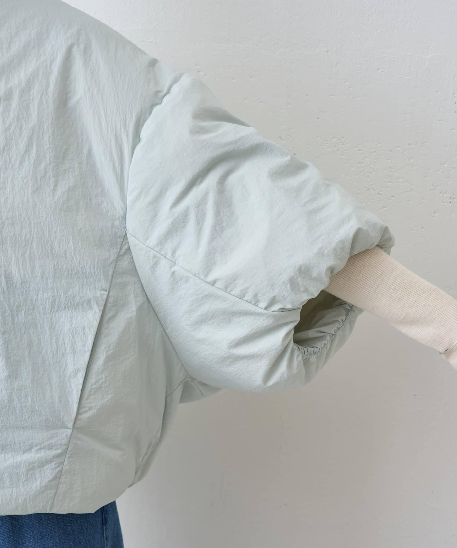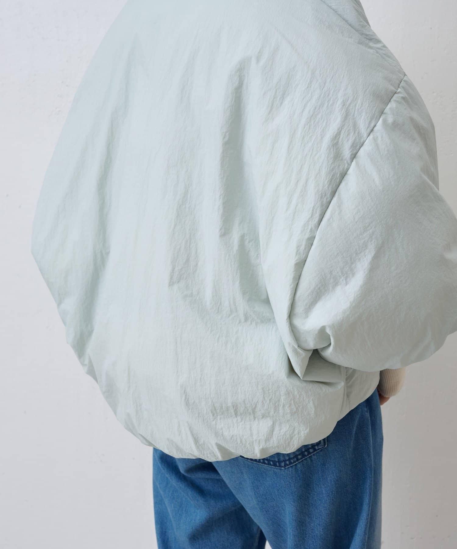 衣領採用無領設計,看起來乾淨利落,袖口內側收攏,營造出氣球的輪廓。