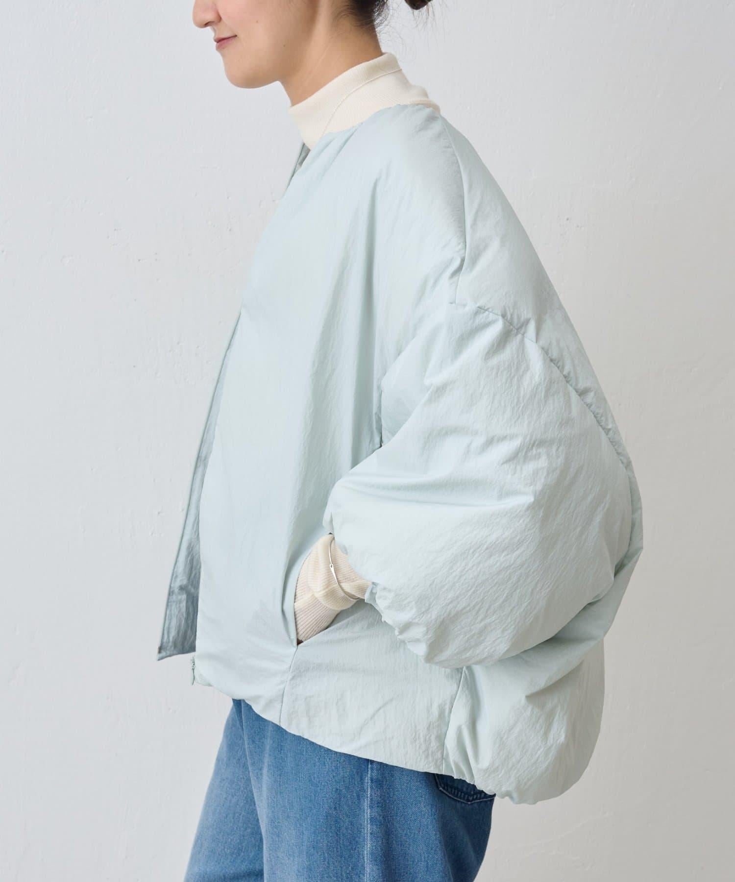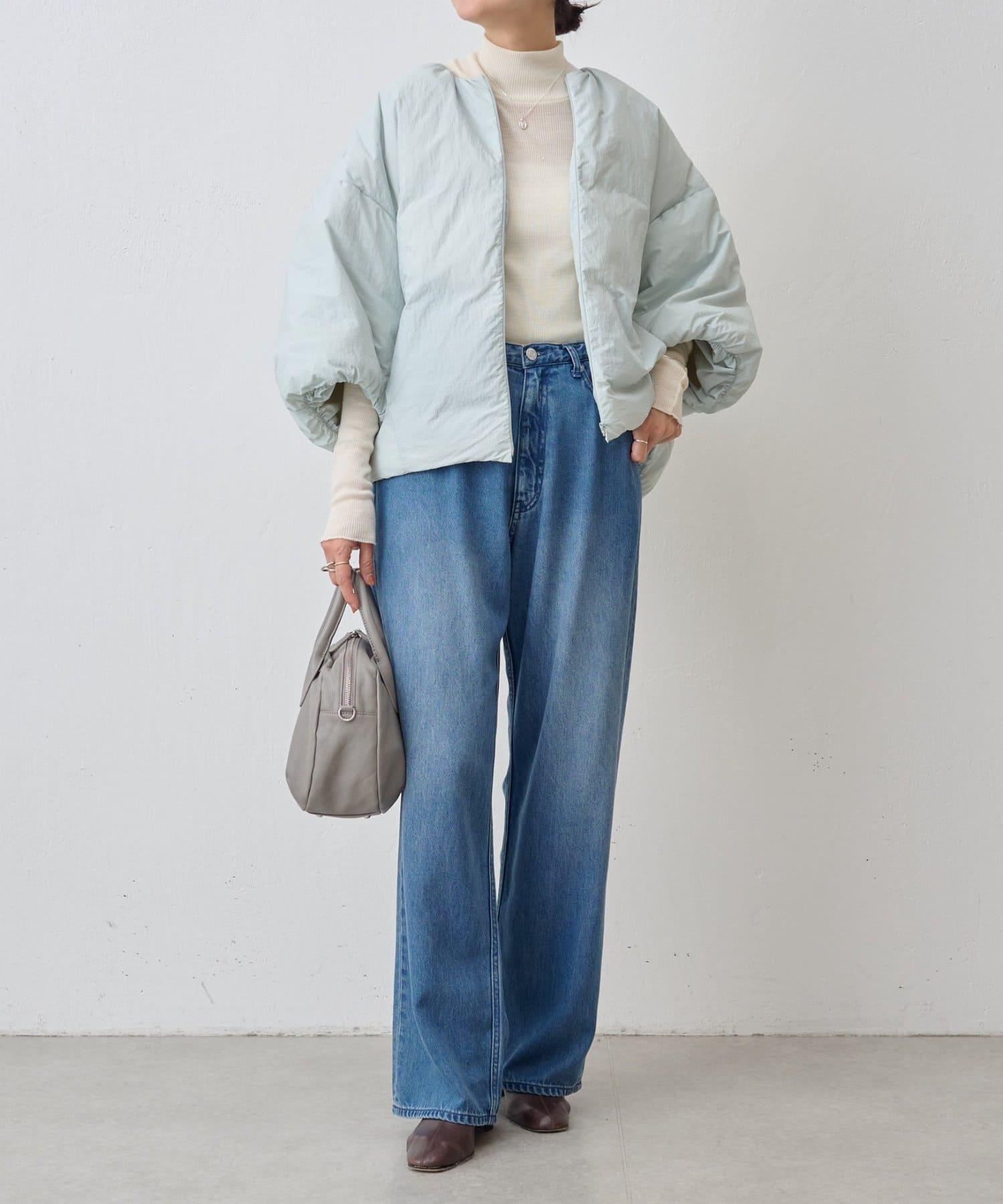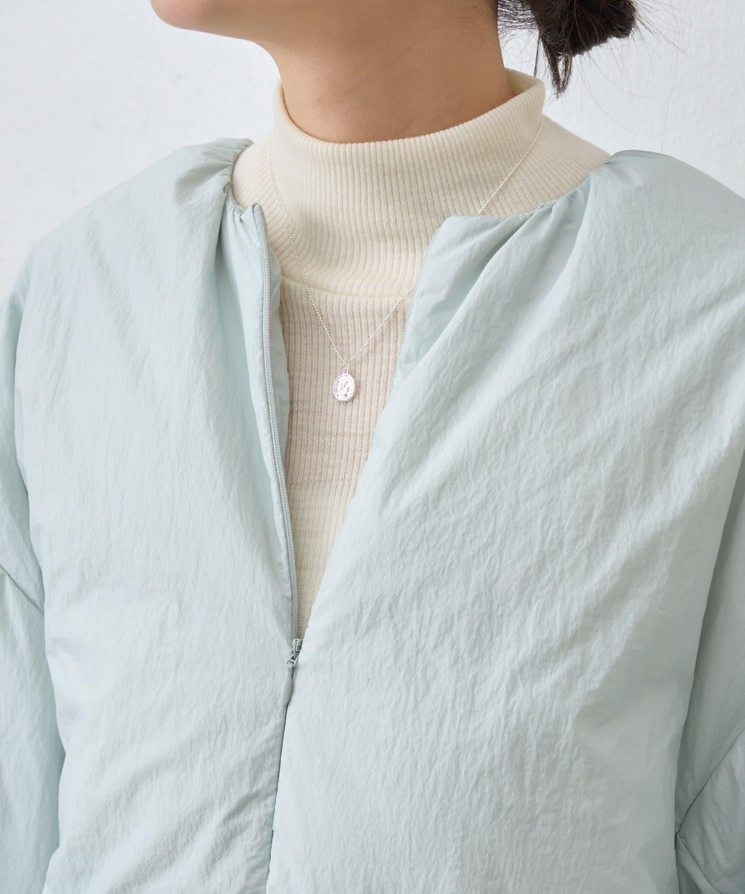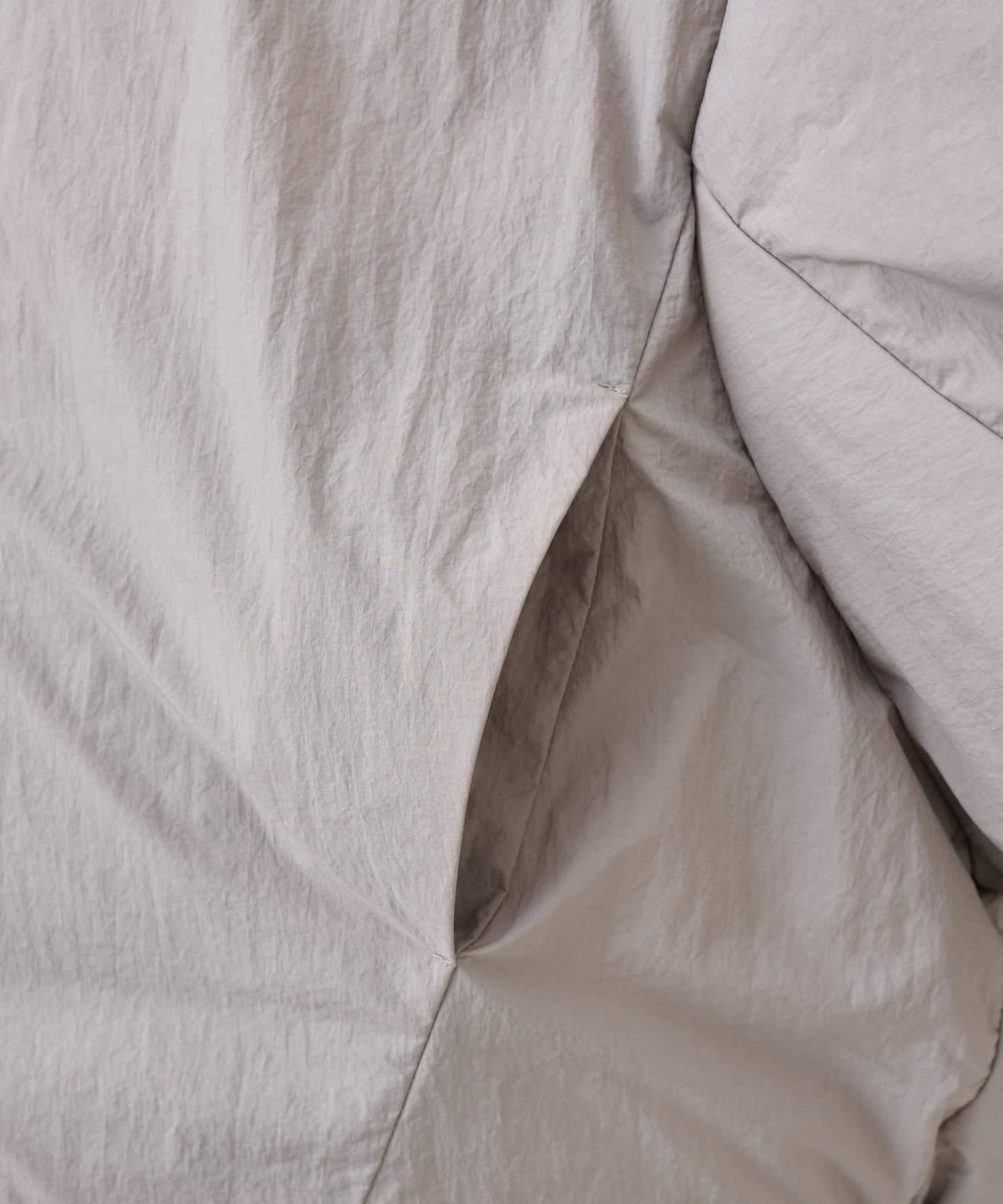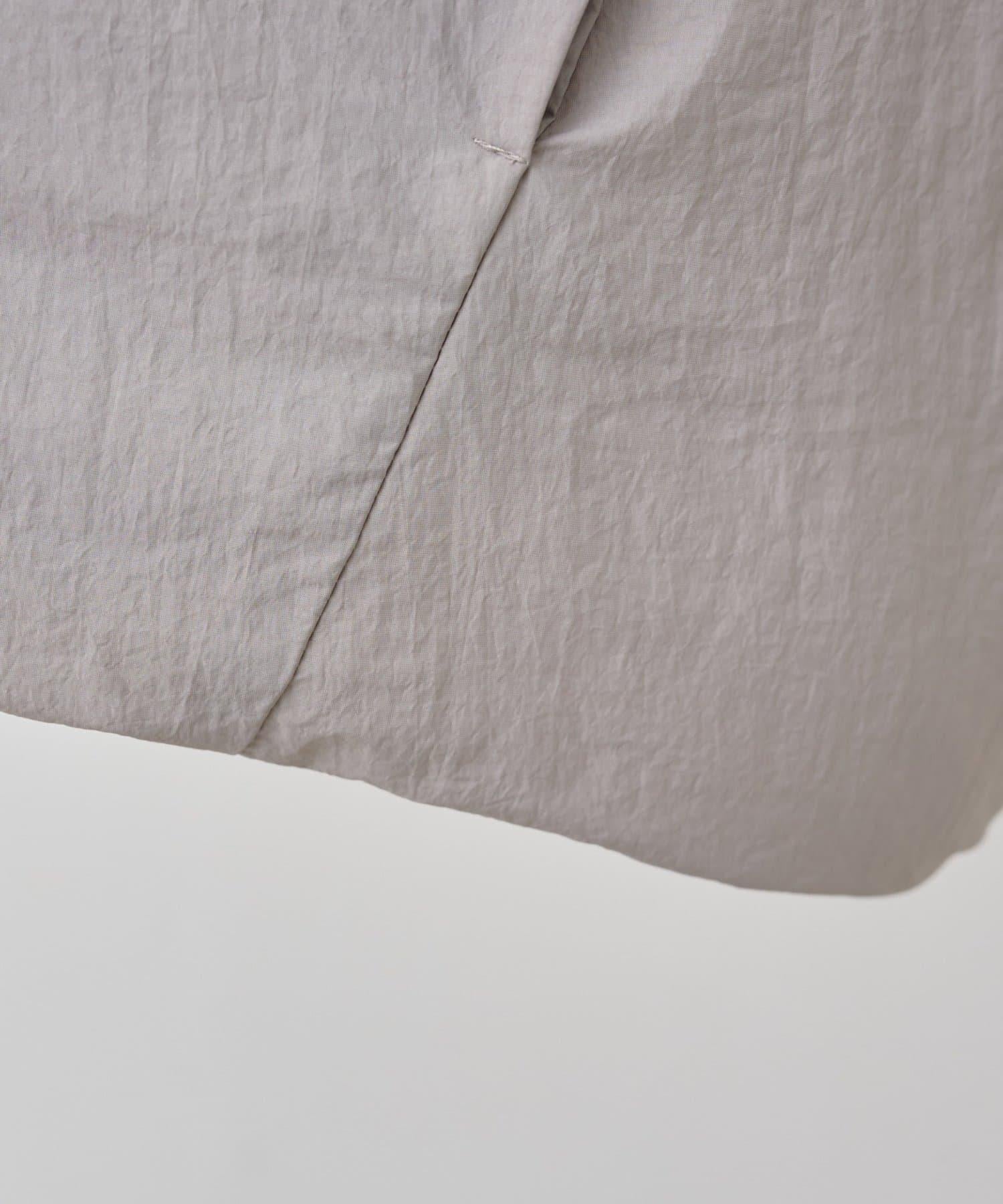 衣領採用無領設計,看起來乾淨利落,袖口內側收攏,營造出氣球的輪廓。