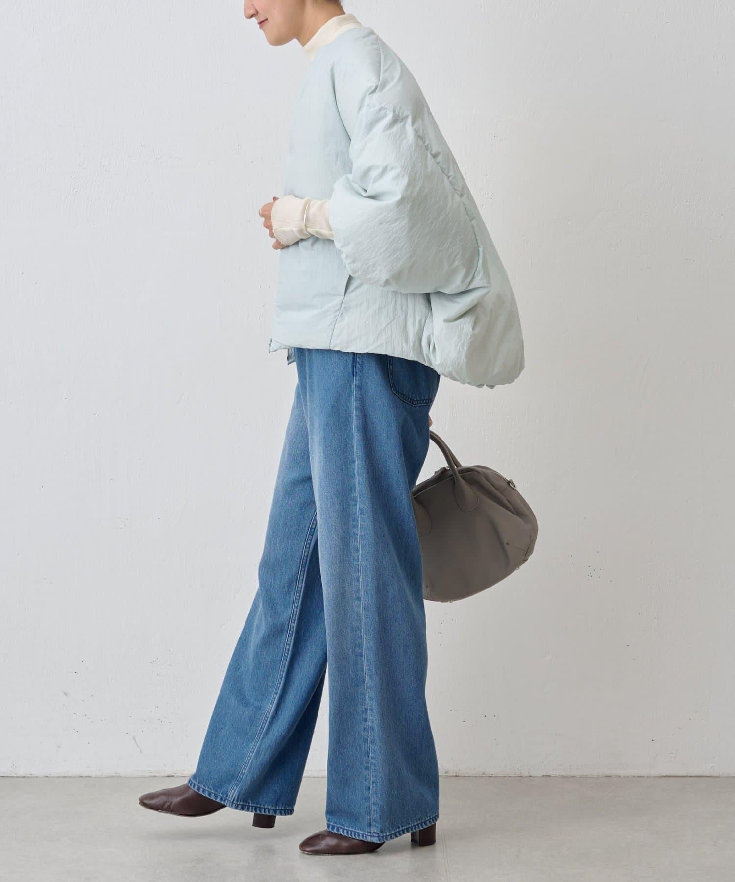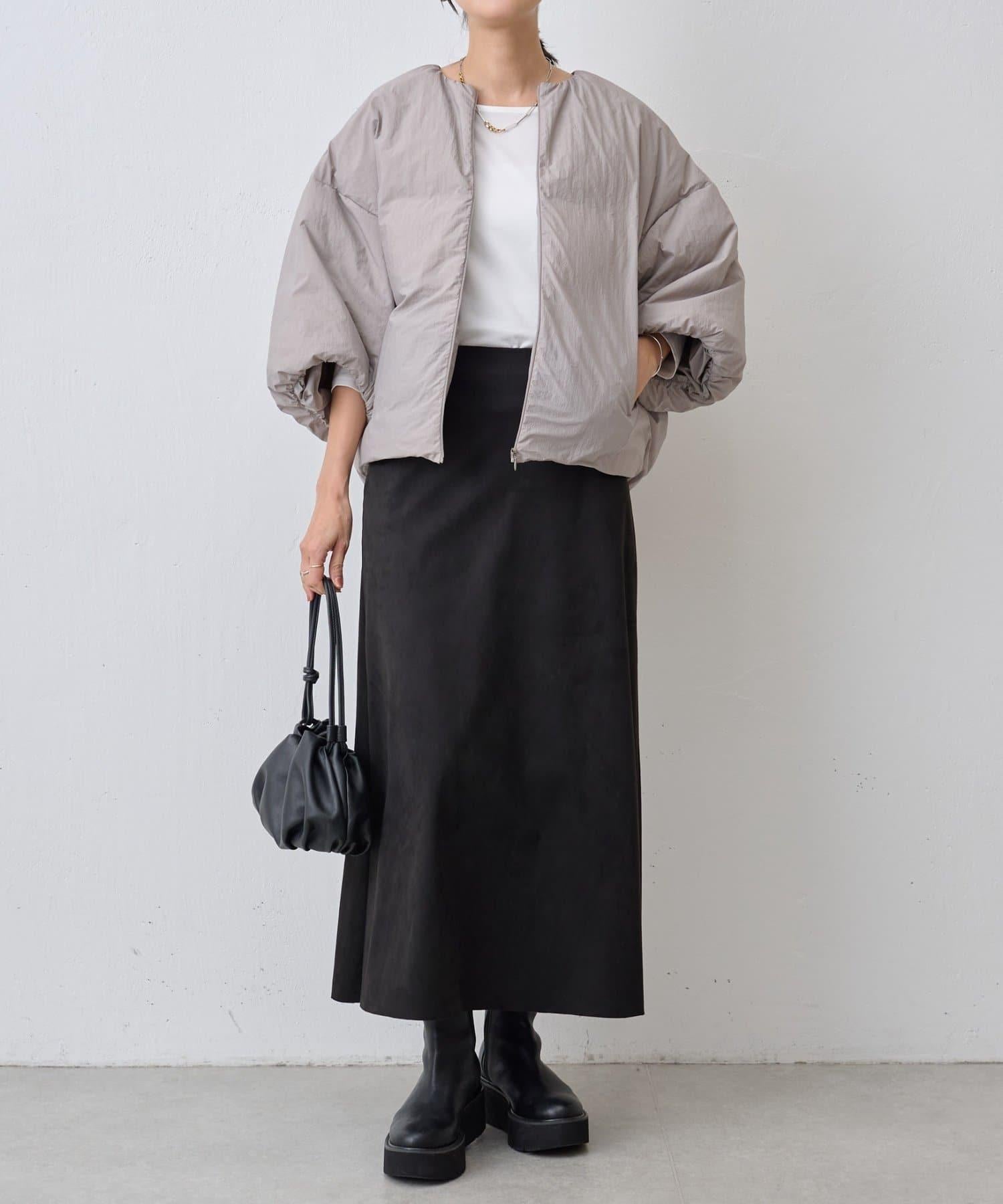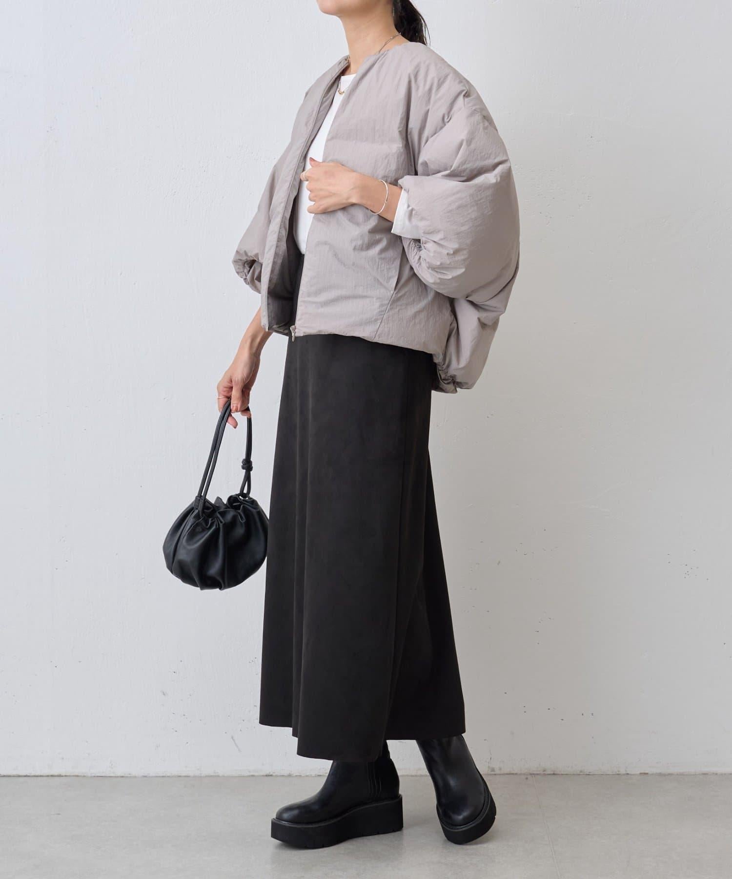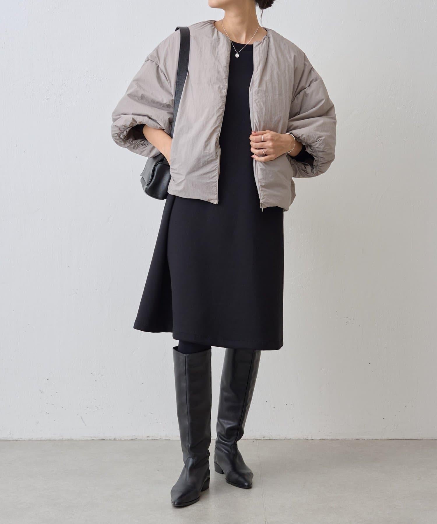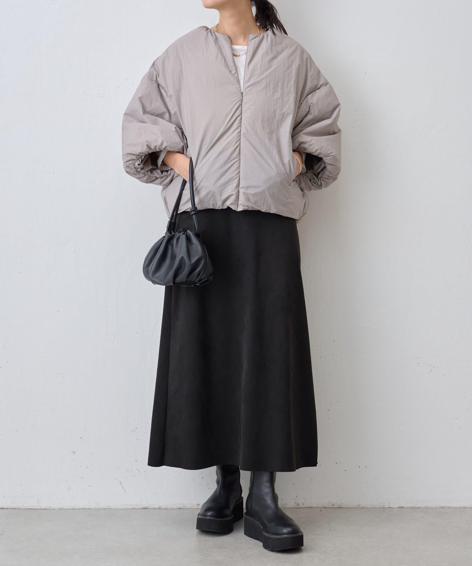 衣領採用無領設計,看起來乾淨利落,袖口內側收攏,營造出氣球的輪廓。