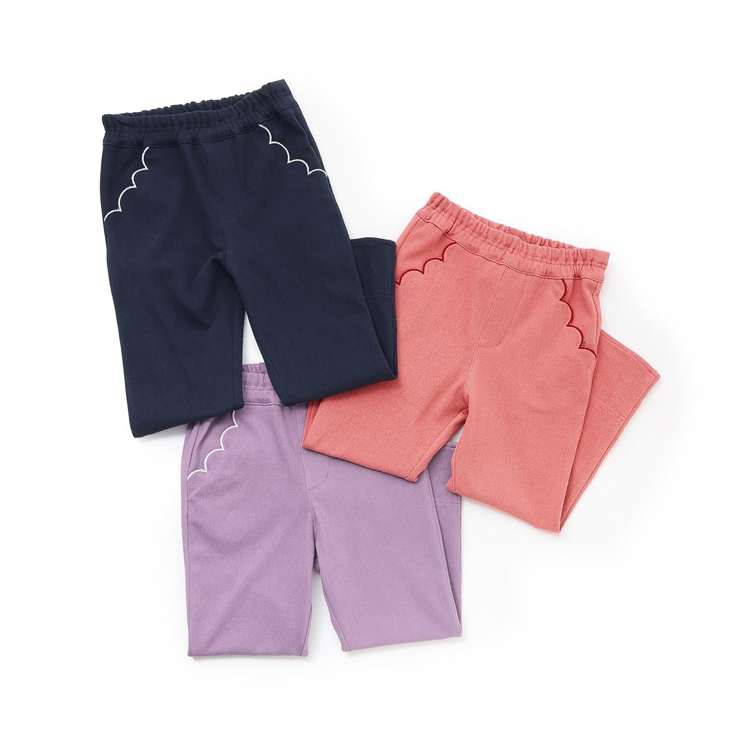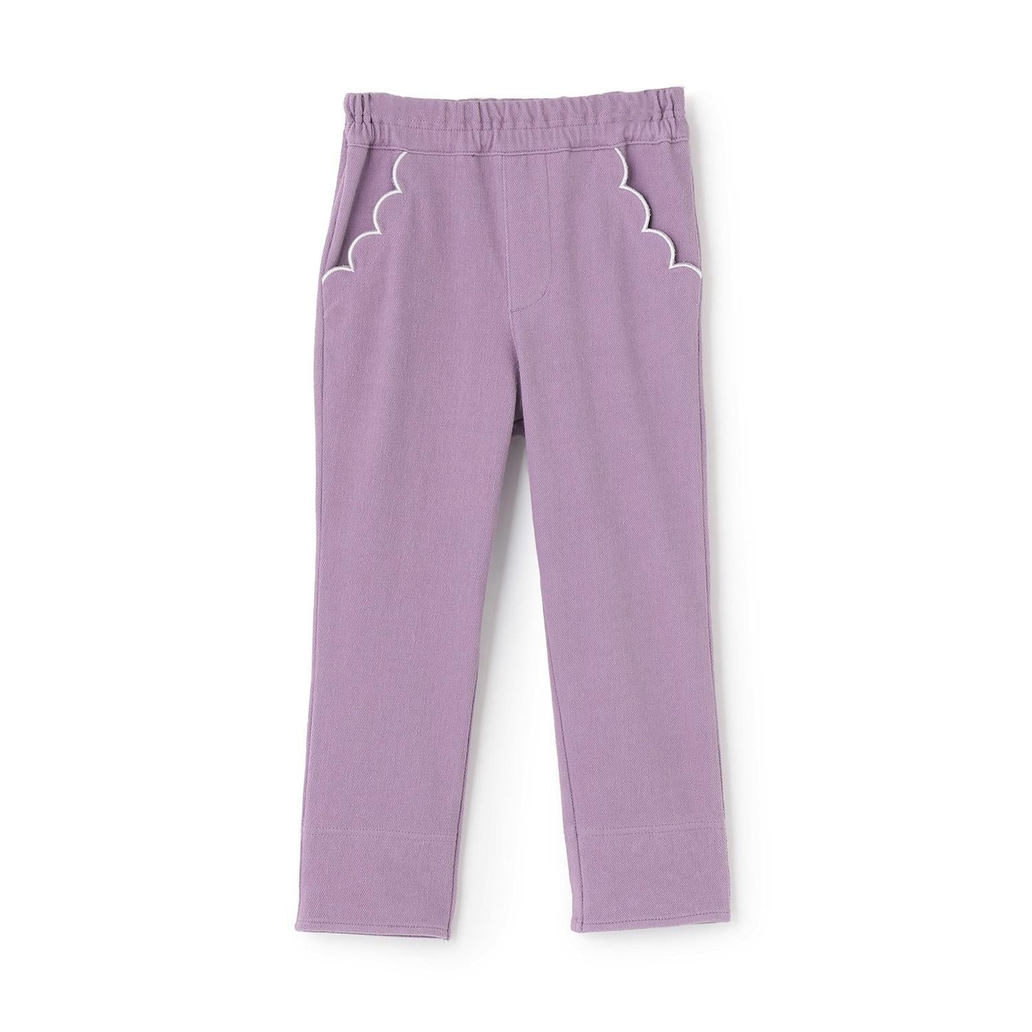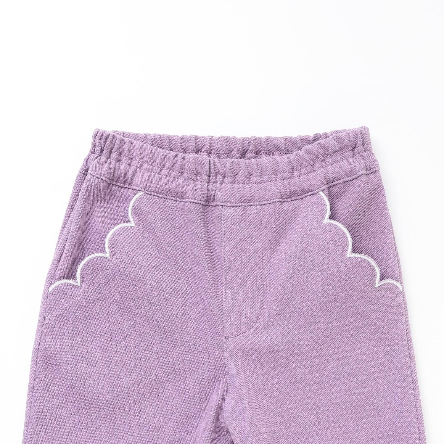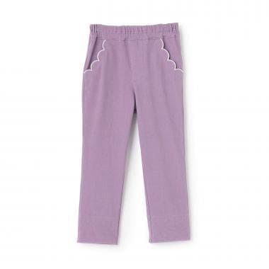 翻邊花邊口袋針織斜紋長褲