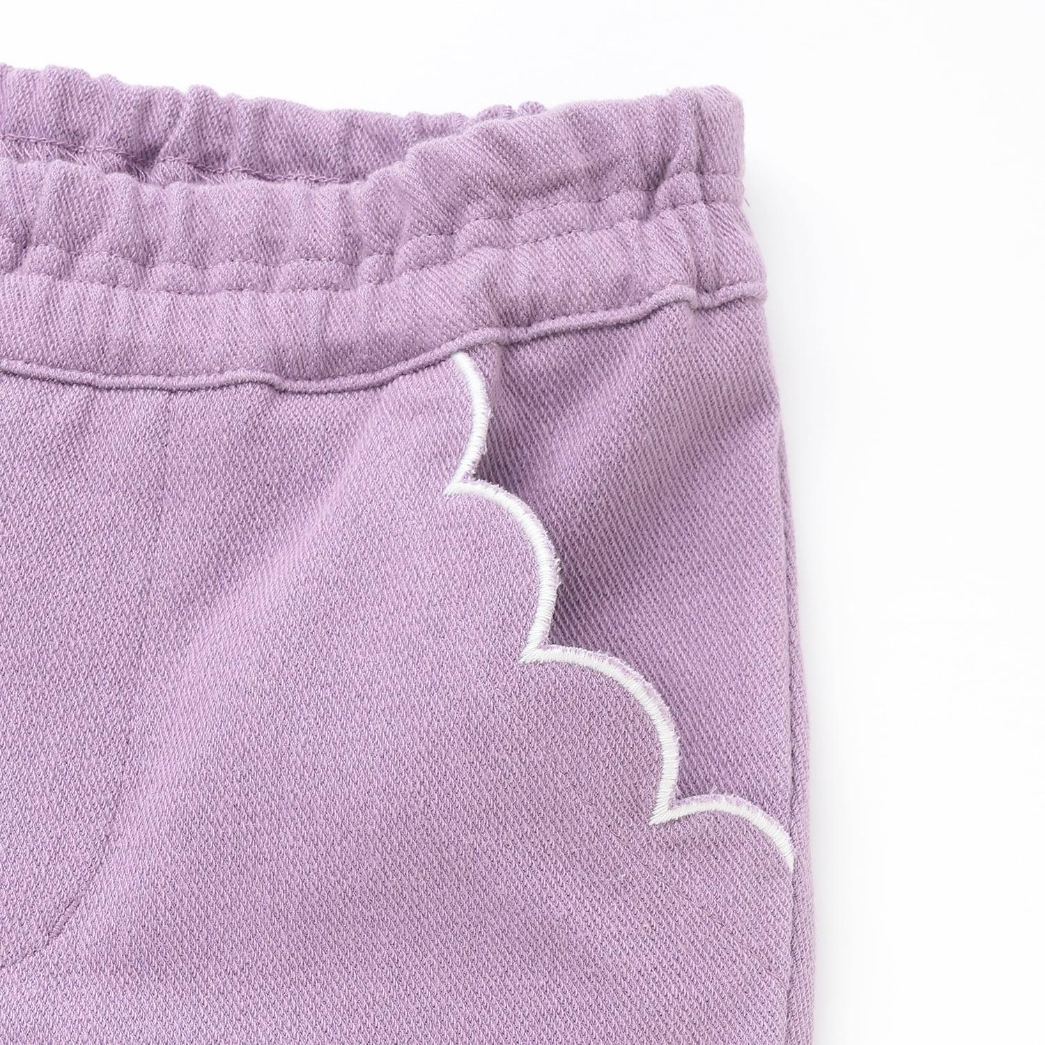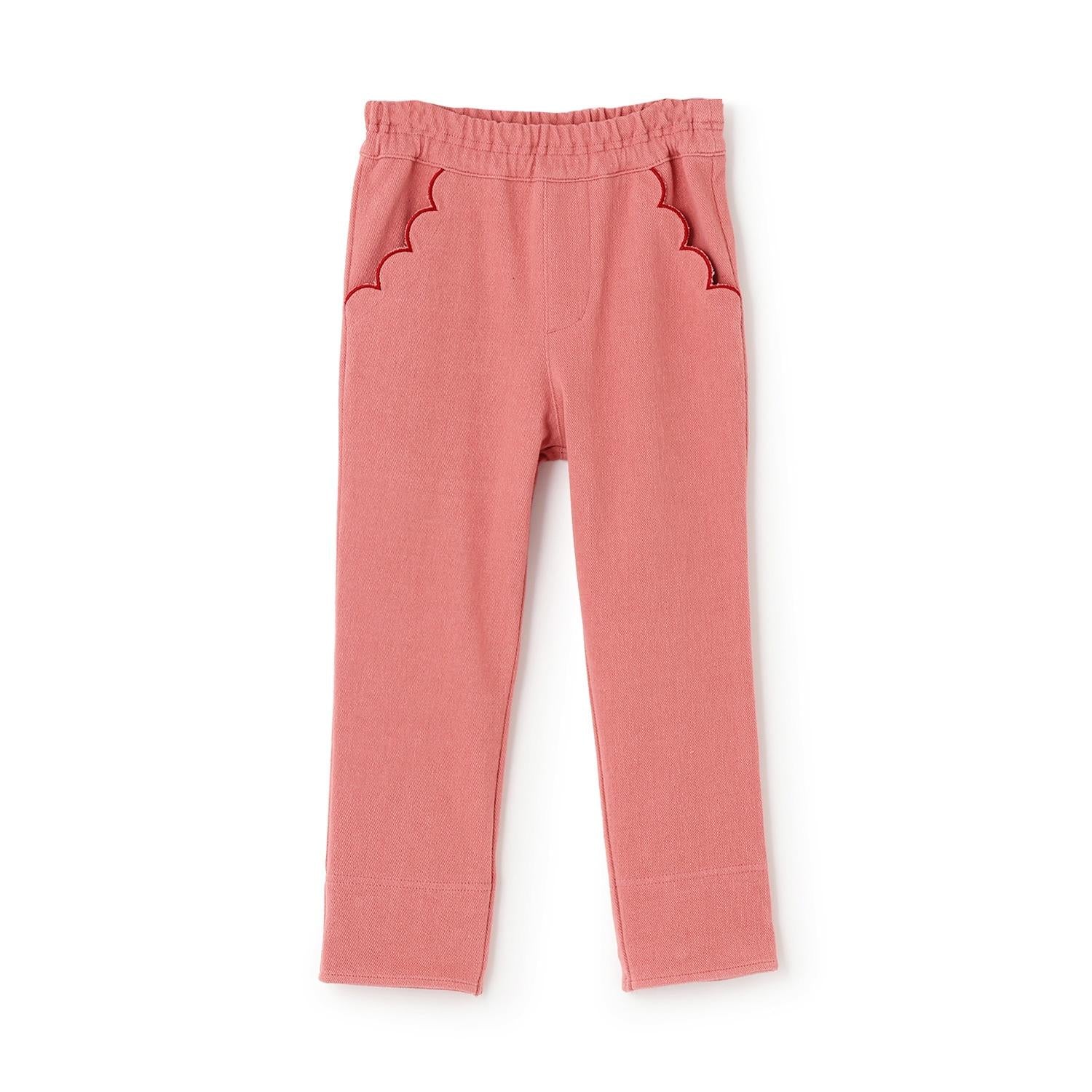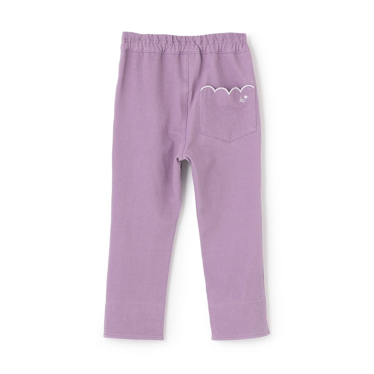 翻邊花邊口袋針織斜紋長褲