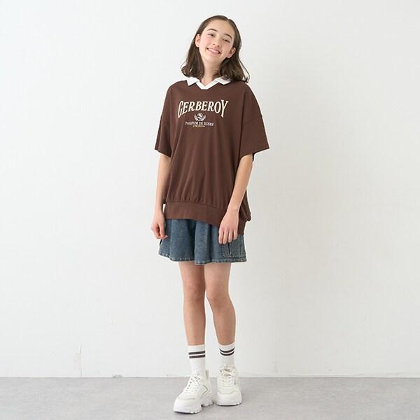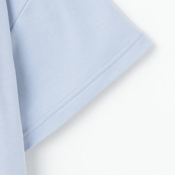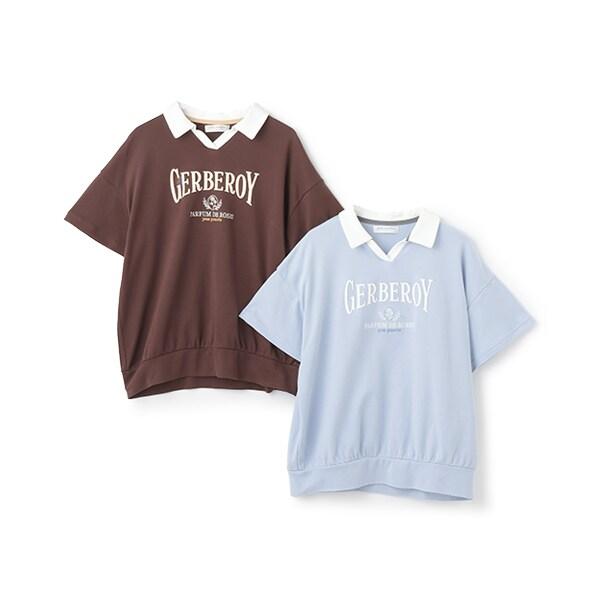 簡潔的 V 領和白色衣領營造出清新的氛圍。