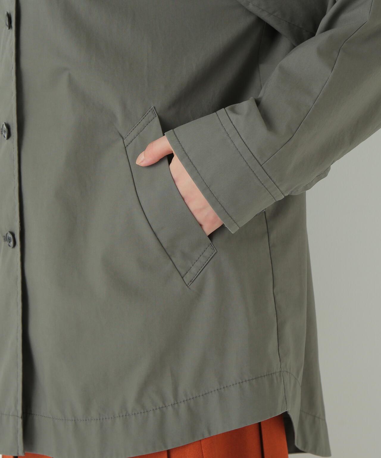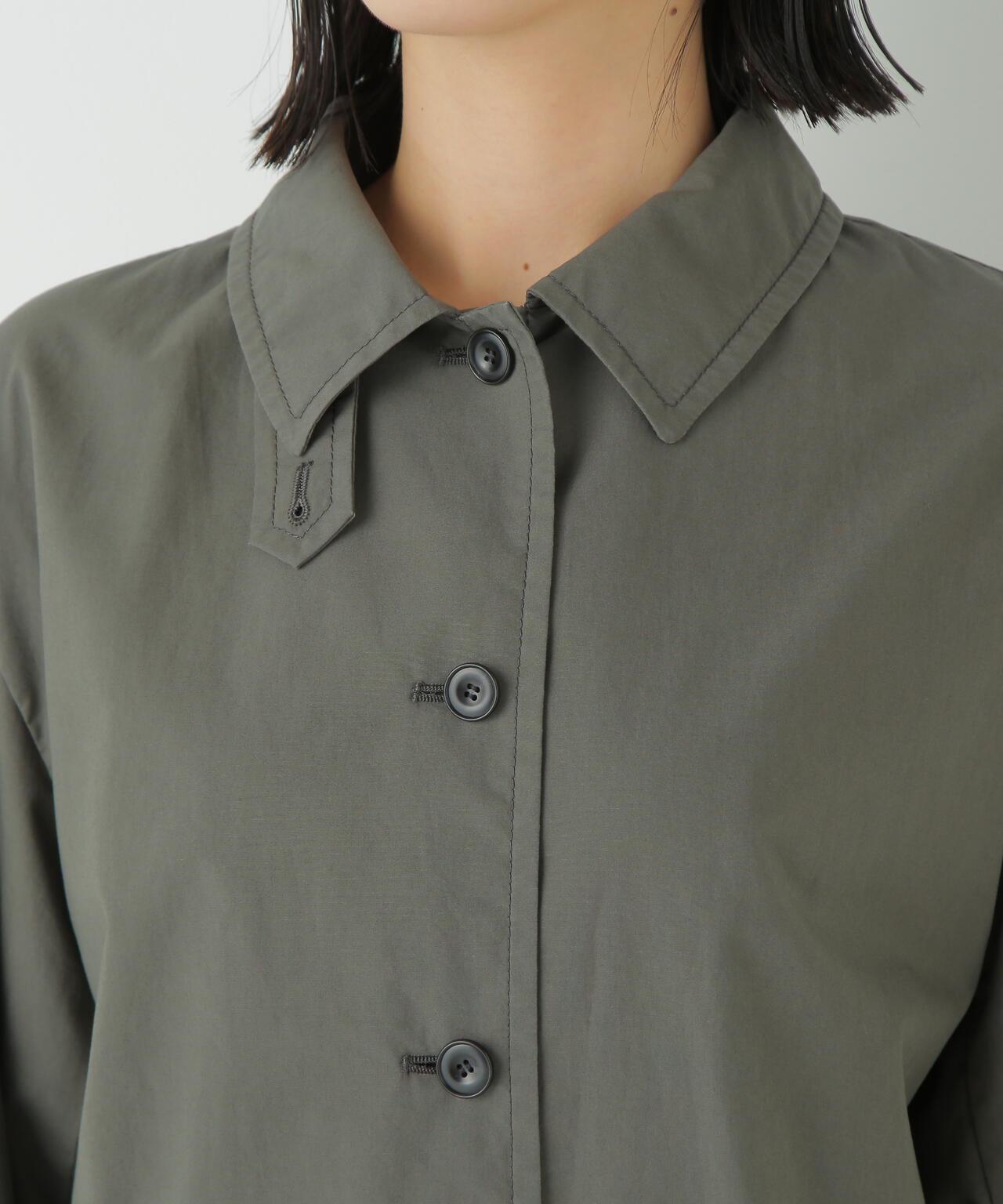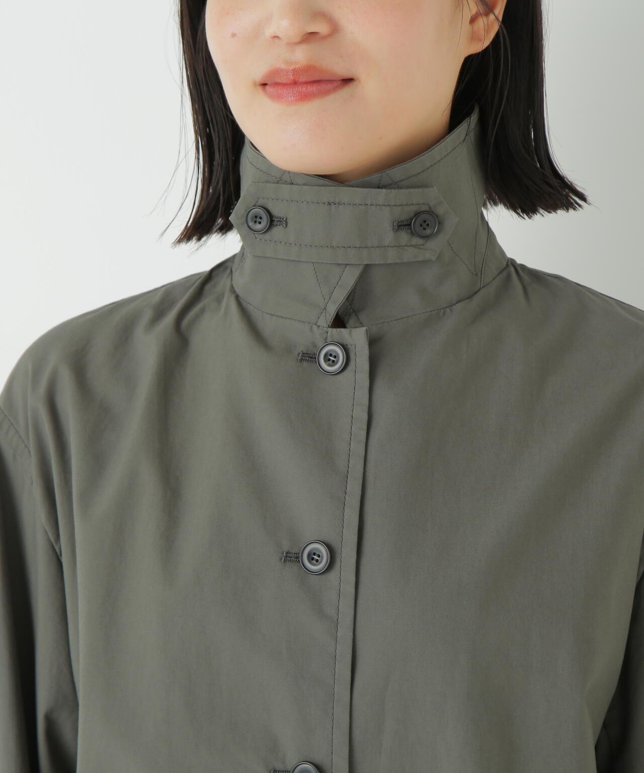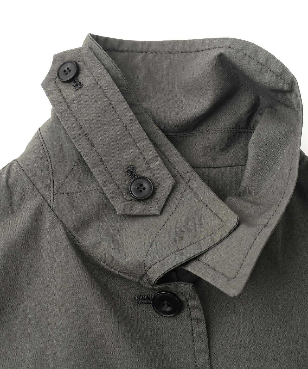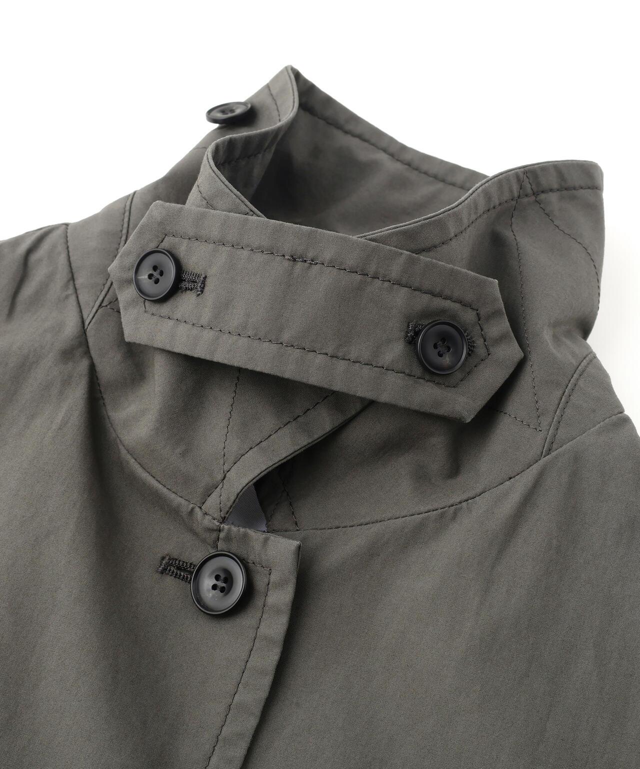 可當襯衫穿的斯登色大衣 [設計要點] 這款輕便的斯登色大衣採用襯衫面料製成。袖口可以用紐扣調節大小,脖子上的下巴帶也是一大特色。下巴腰帶還可以用衣領後部的紐扣扣緊。棉衣由緊密的棉紗製成,經過打毛和編織,然後用硅膠揉搓,以增加回彈性和自然感。推薦搭配】這是一款外衣,可作為襯衫等秋季輕薄織品,以傳統方式進行造型。