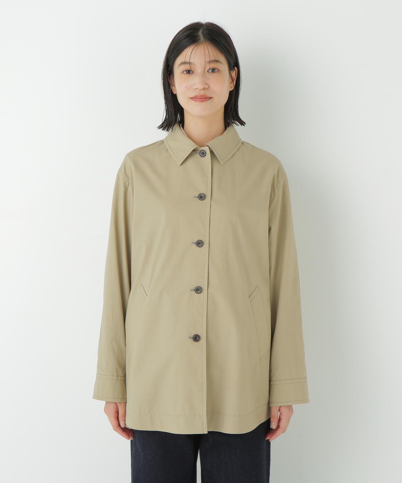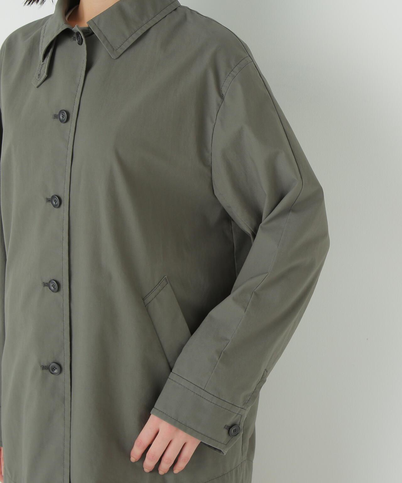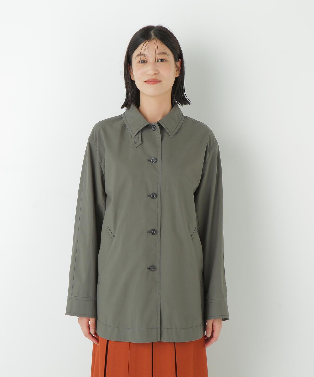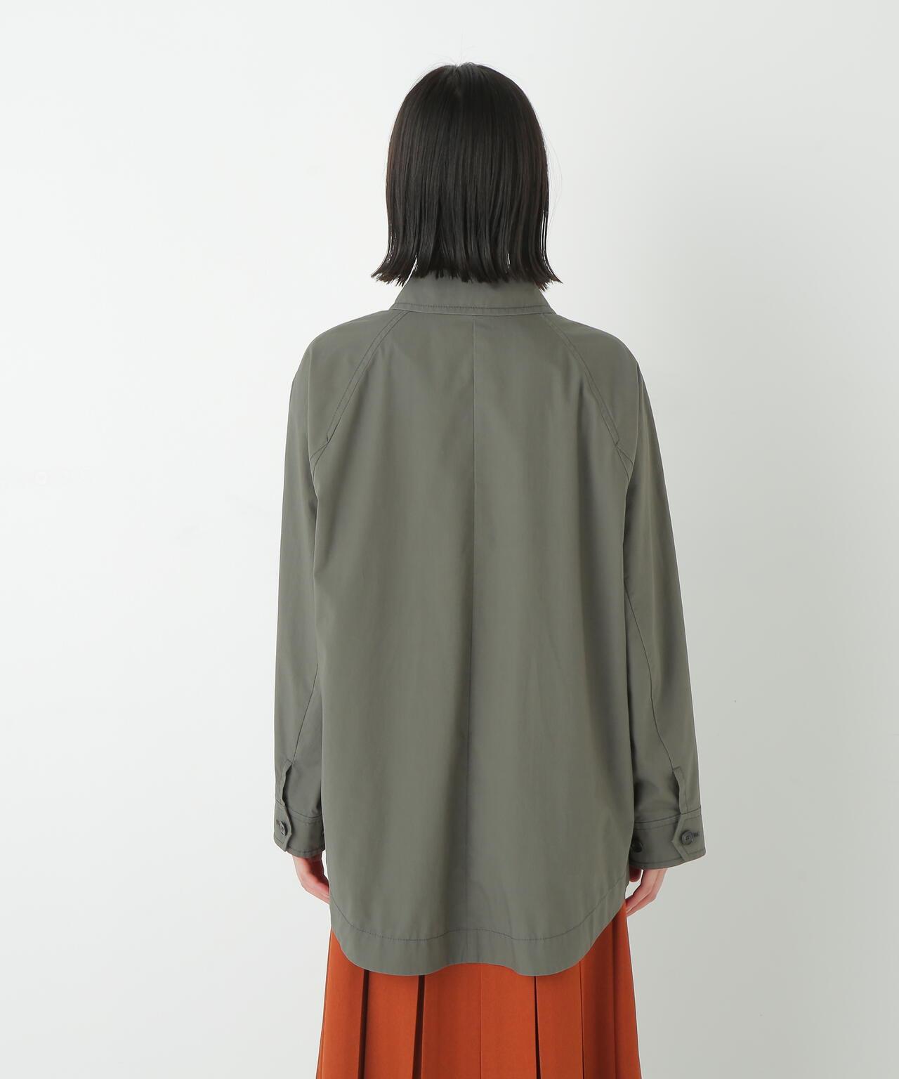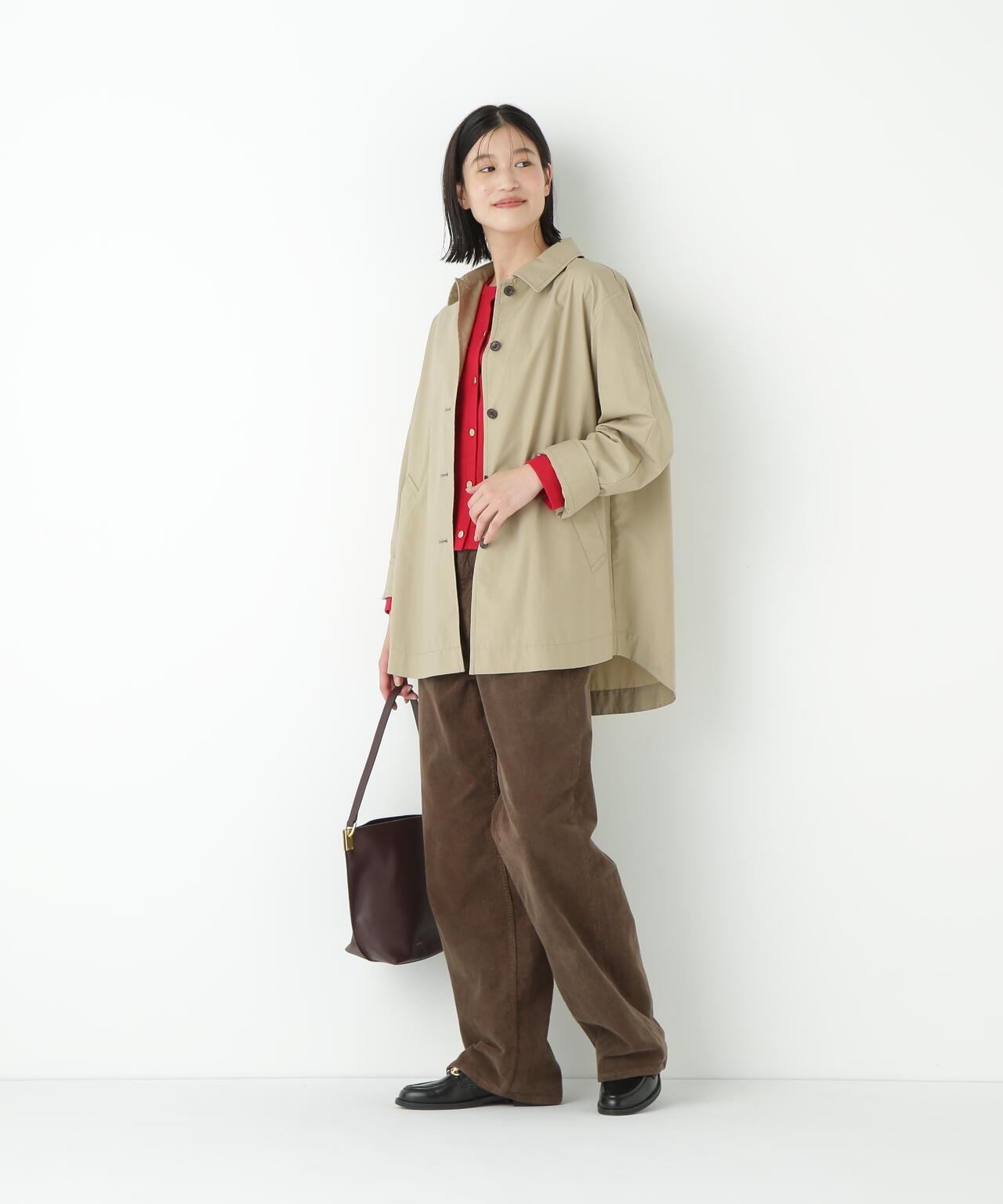 可當襯衫穿的斯登色大衣 [設計要點] 這款輕便的斯登色大衣採用襯衫面料製成。袖口可以用紐扣調節大小,脖子上的下巴帶也是一大特色。下巴腰帶還可以用衣領後部的紐扣扣緊。棉衣由緊密的棉紗製成,經過打毛和編織,然後用硅膠揉搓,以增加回彈性和自然感。推薦搭配】這是一款外衣,可作為襯衫等秋季輕薄織品,以傳統方式進行造型。