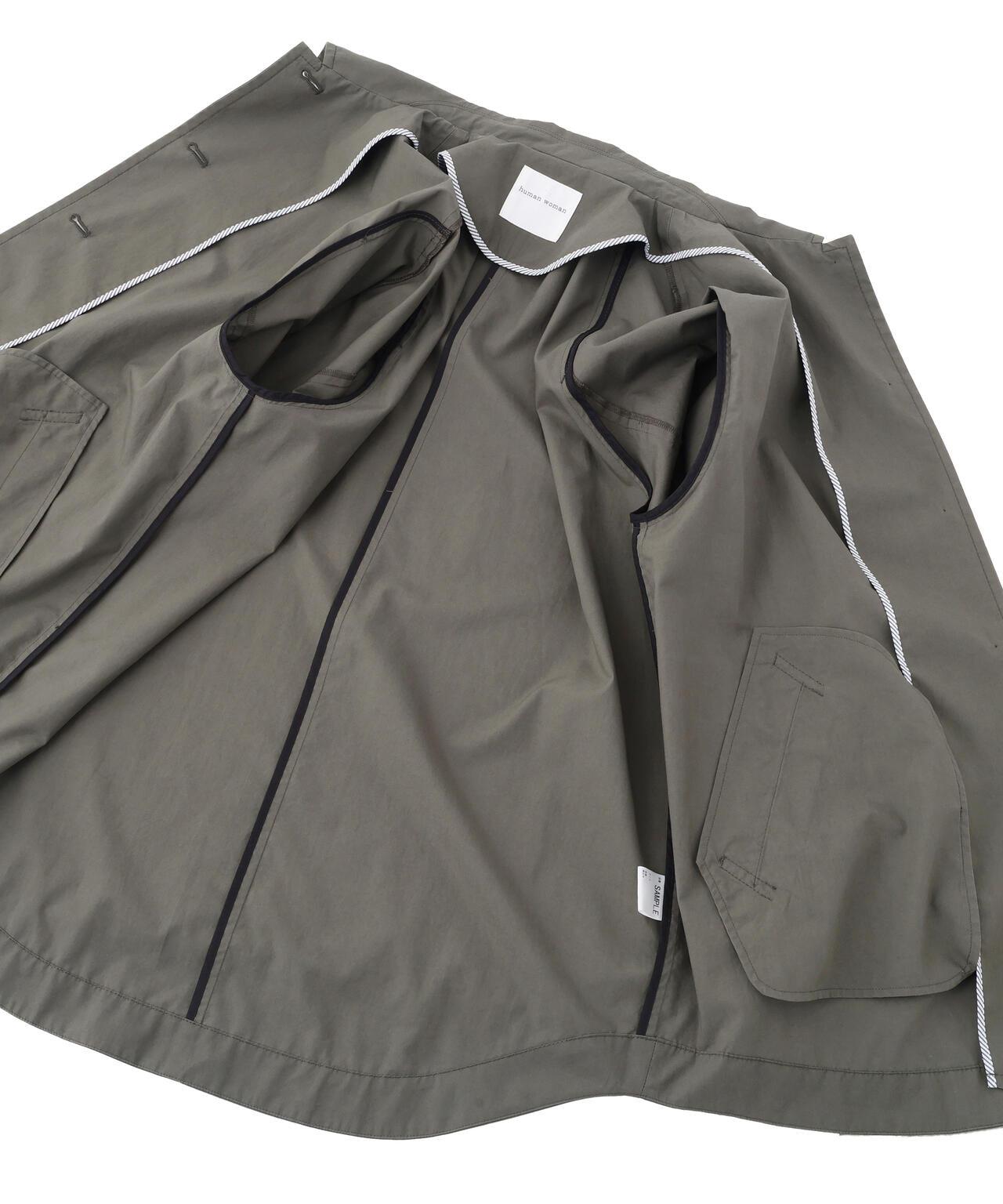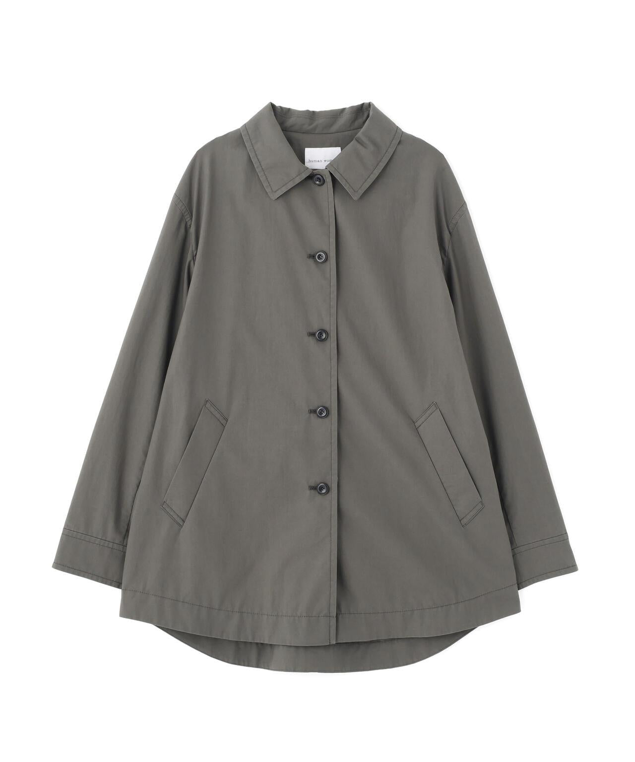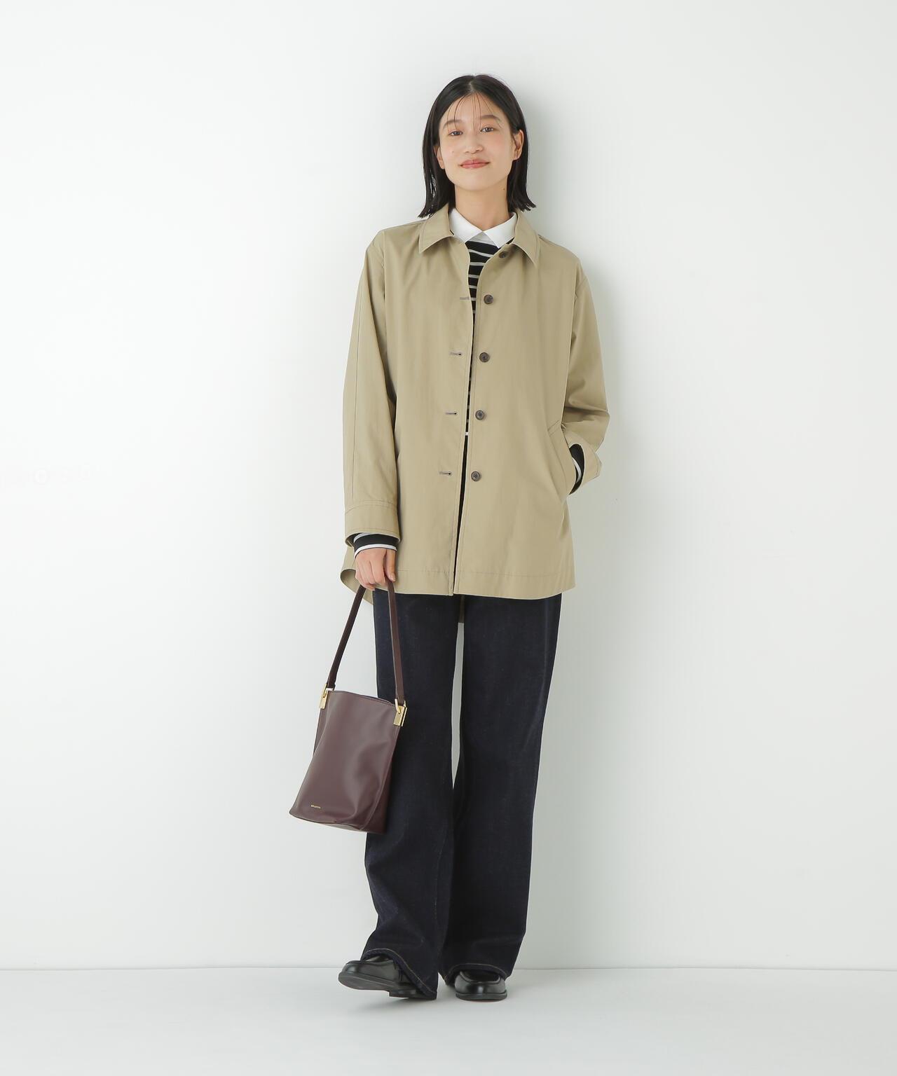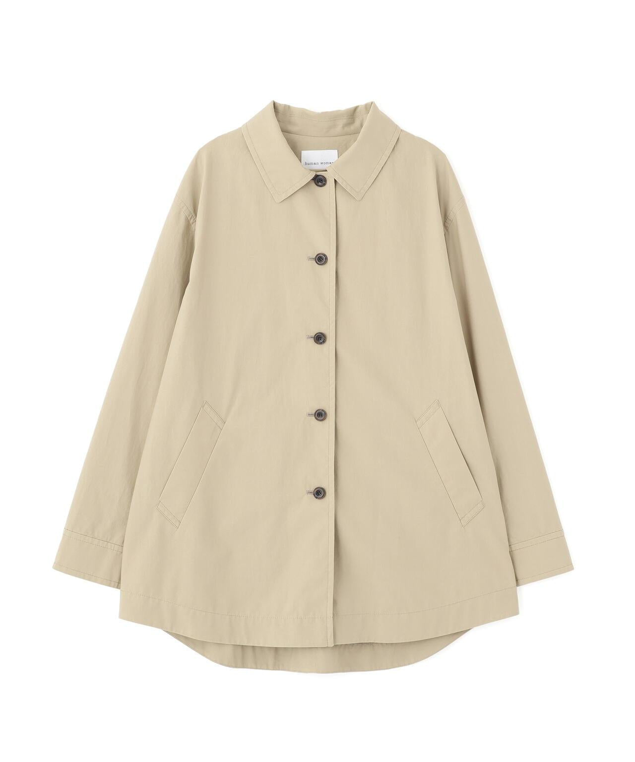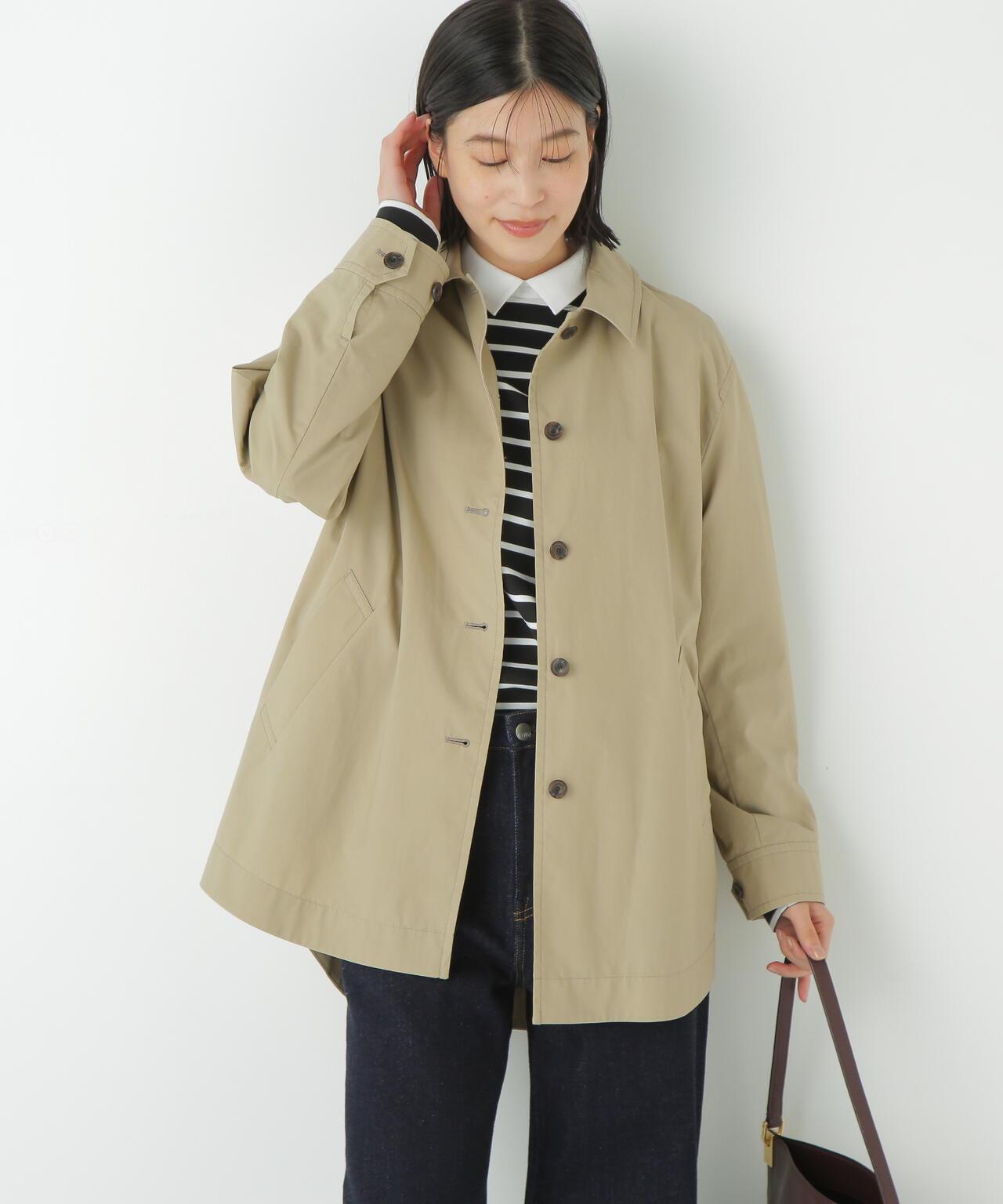 可當襯衫穿的斯登色大衣 [設計要點] 這款輕便的斯登色大衣採用襯衫面料製成。袖口可以用紐扣調節大小,脖子上的下巴帶也是一大特色。下巴腰帶還可以用衣領後部的紐扣扣緊。棉衣由緊密的棉紗製成,經過打毛和編織,然後用硅膠揉搓,以增加回彈性和自然感。推薦搭配】這是一款外衣,可作為襯衫等秋季輕薄織品,以傳統方式進行造型。