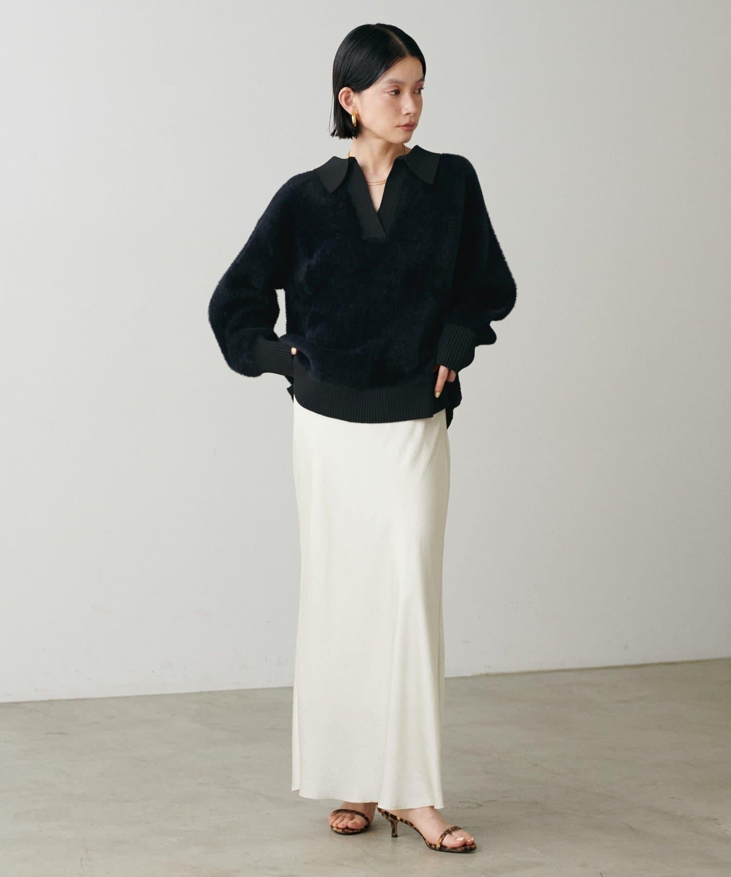 搭配緞面窄裙或人造革百褶裙,打造優雅成熟的造型。
