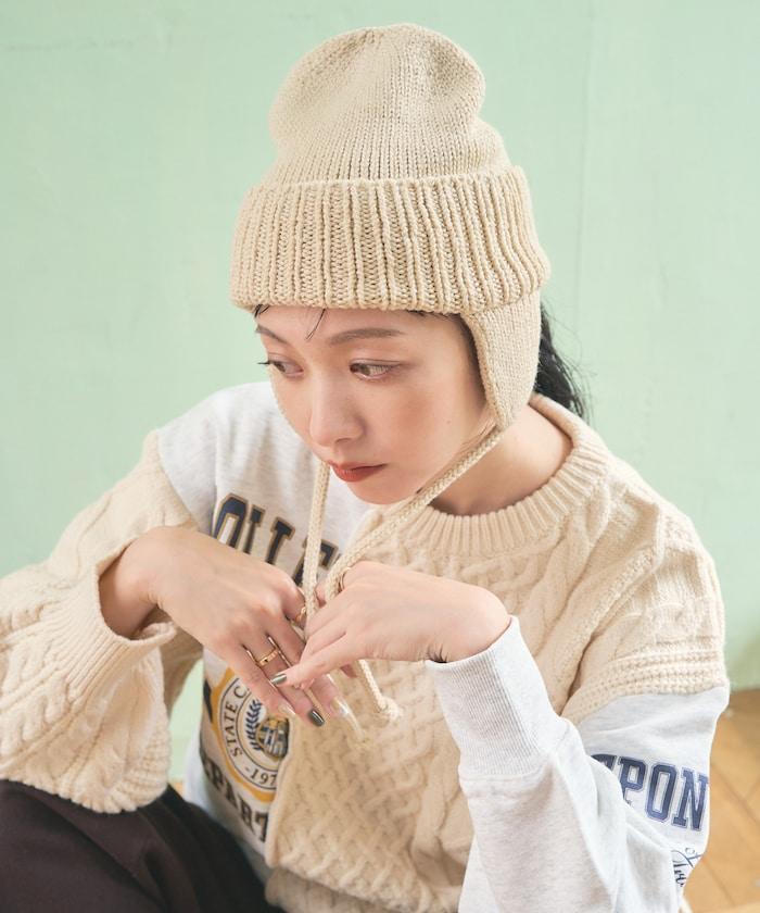 2024 秋冬季單品 來自 RACAL 的針織帽帶有蓬鬆的輪廓和耳墊。