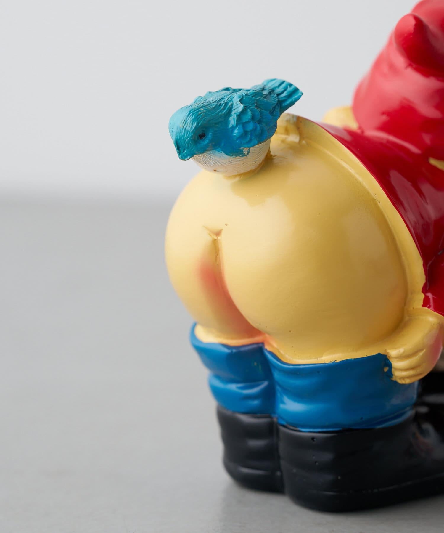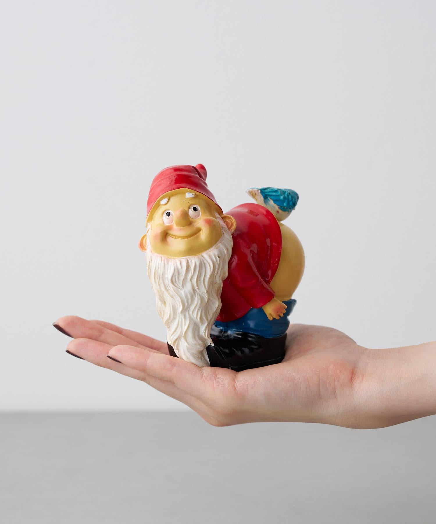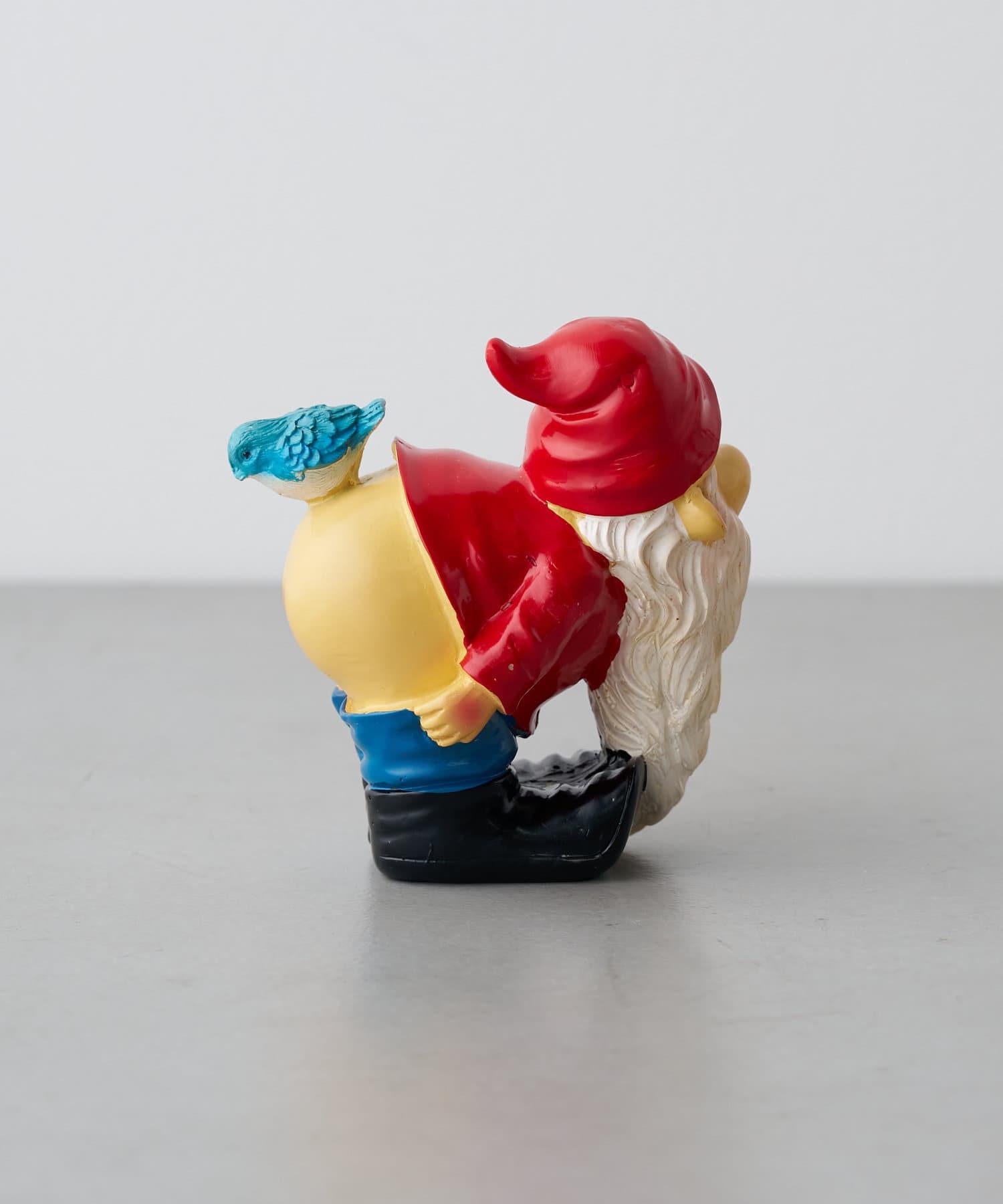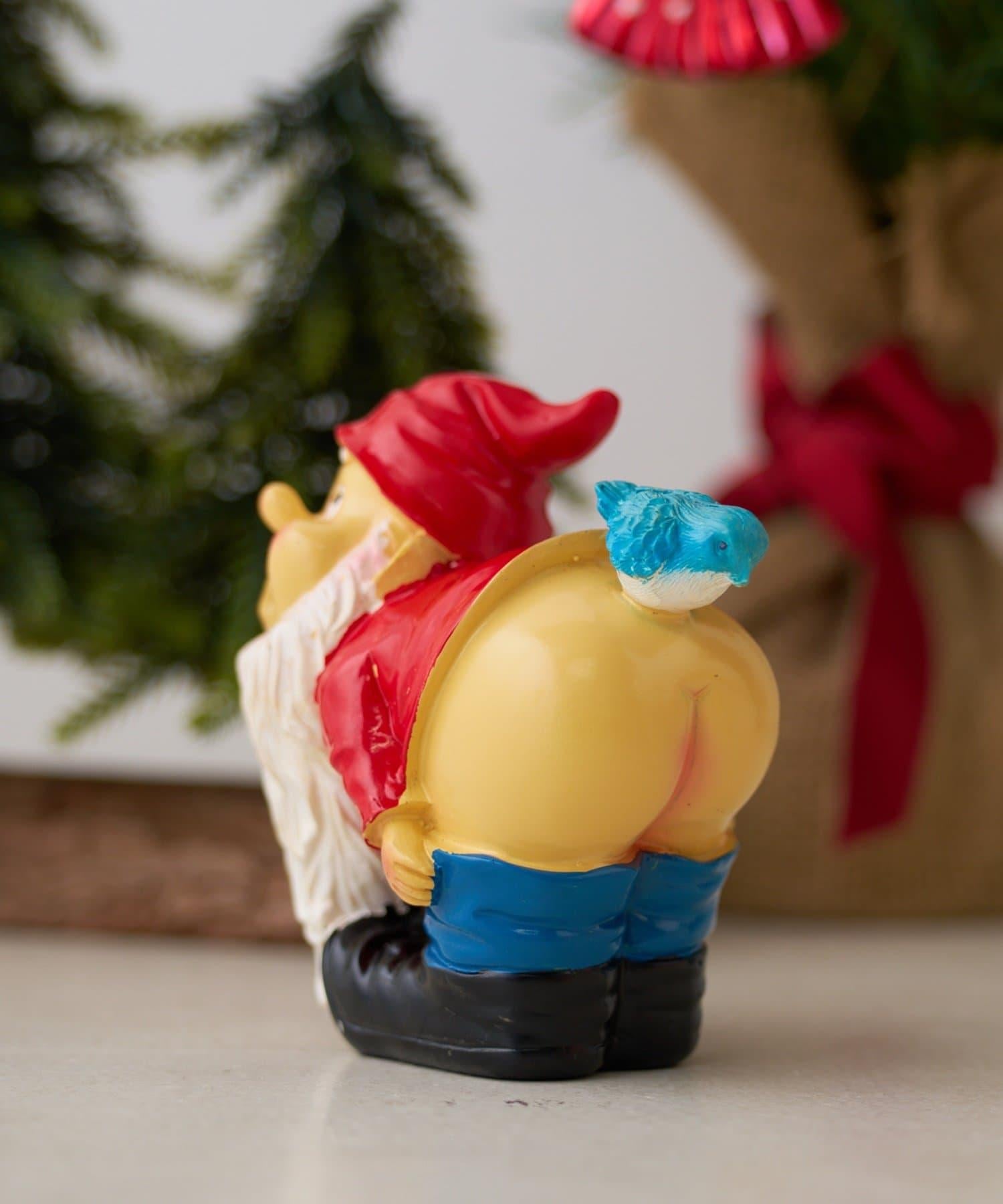 這是一個超現實的獨特物件,一隻小鳥棲息在聖誕老人的屁股上。