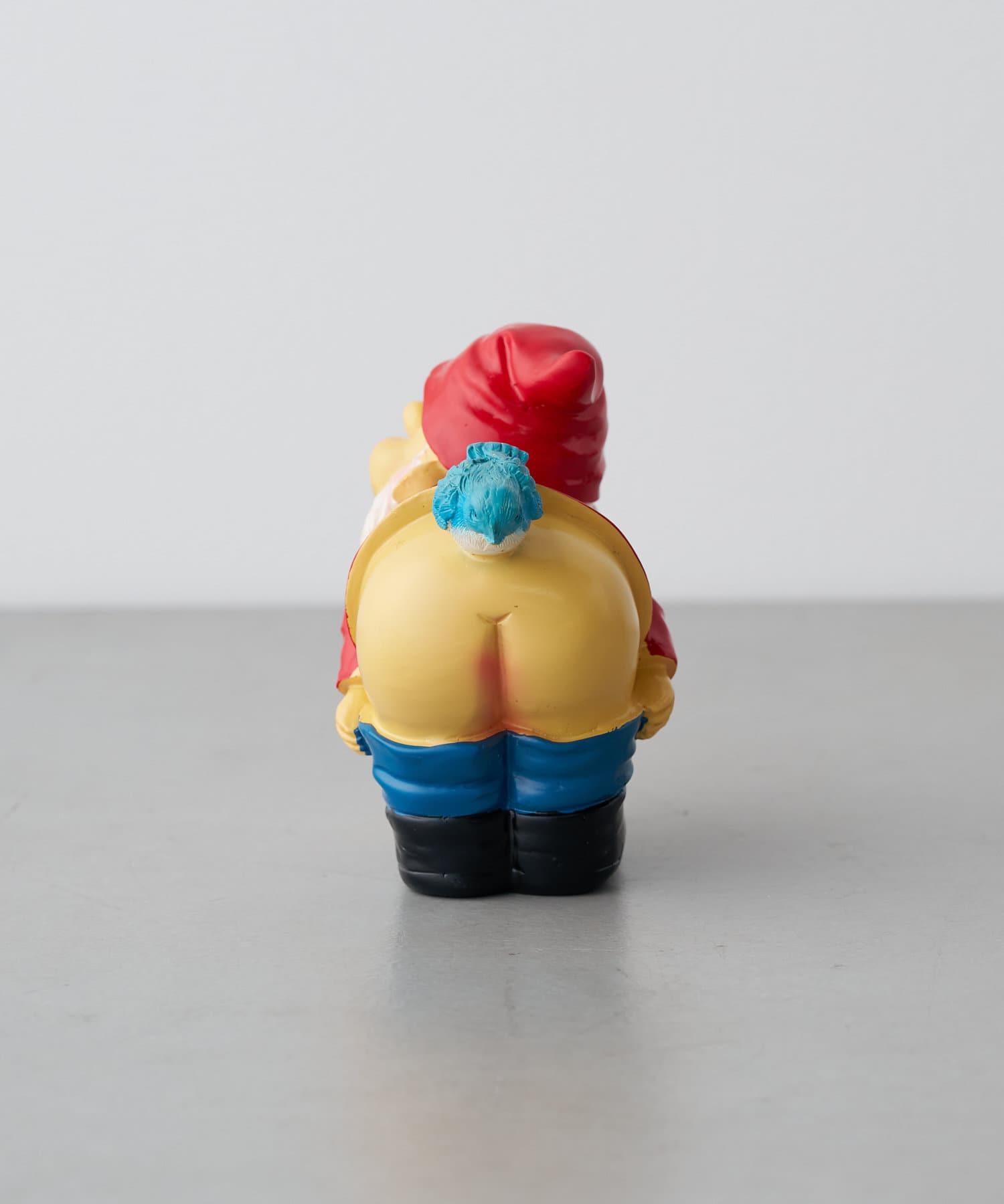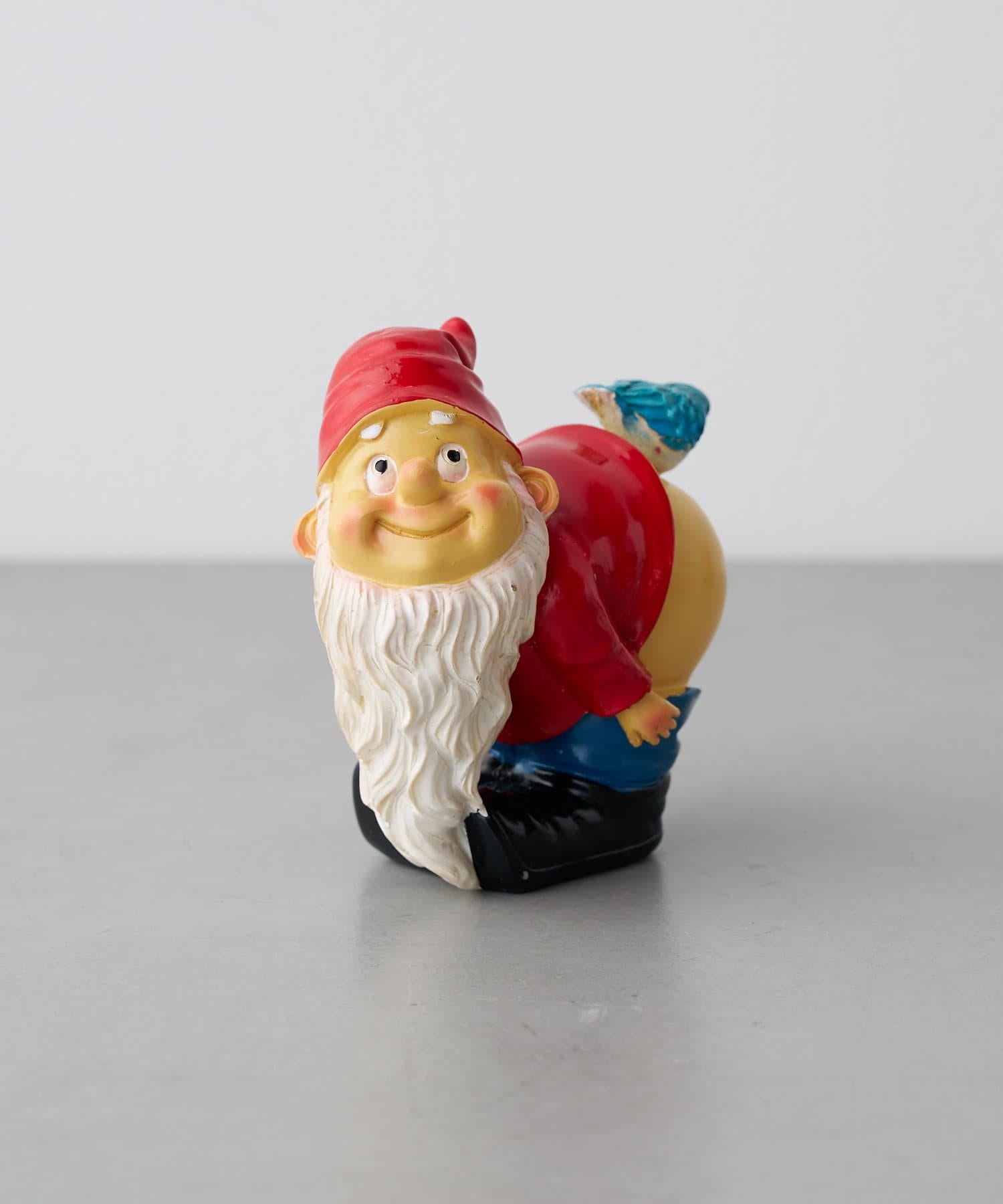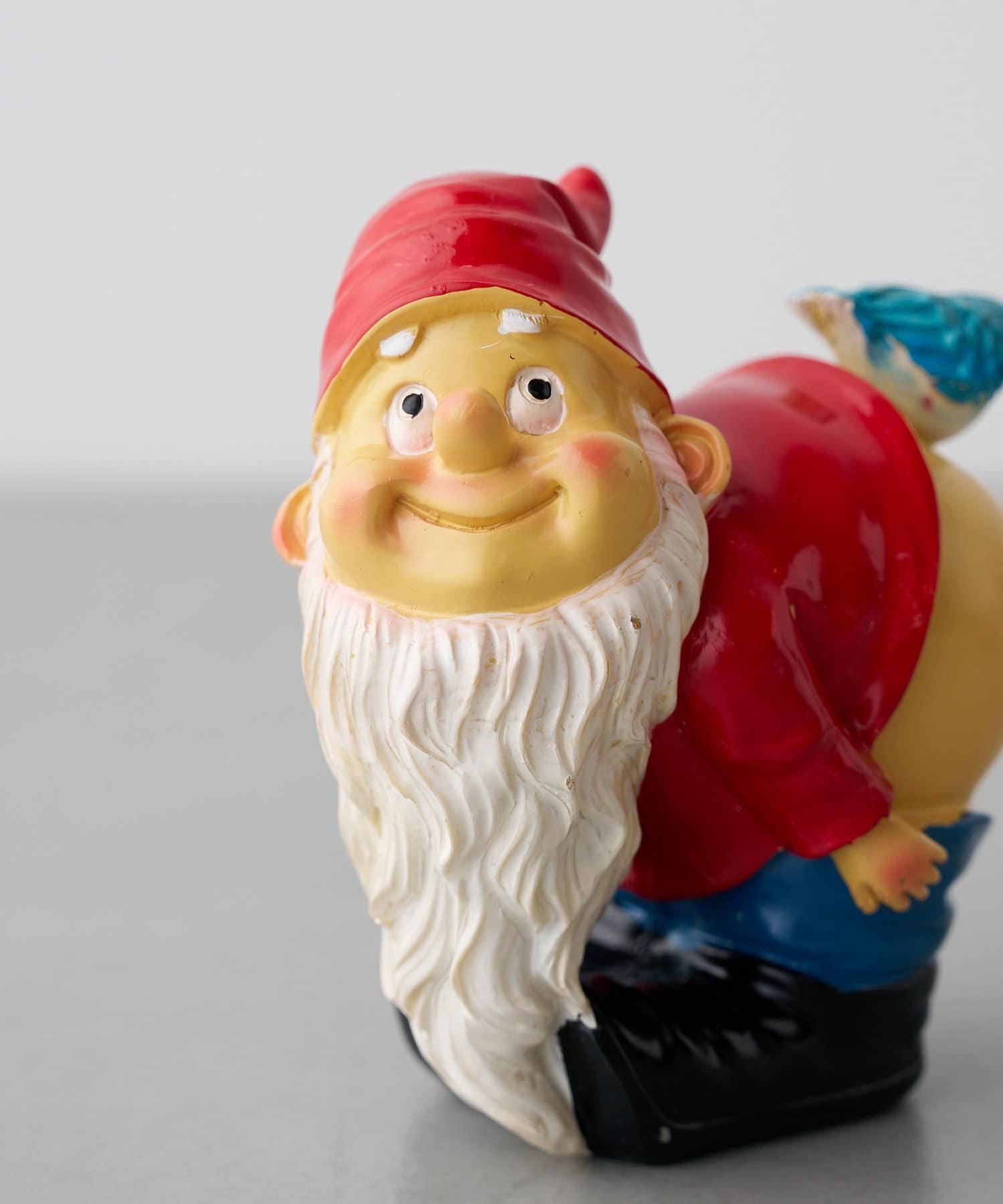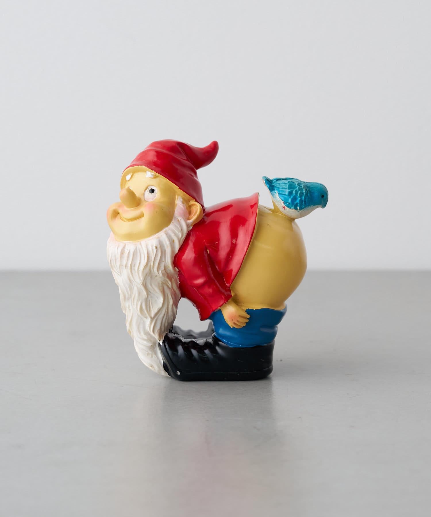 這是一個超現實的獨特物件,一隻小鳥棲息在聖誕老人的屁股上。