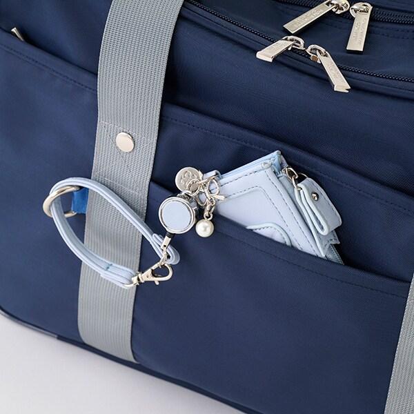 外側口袋可放置通勤證,並有一個 D 型罐,防止通勤證掉落。