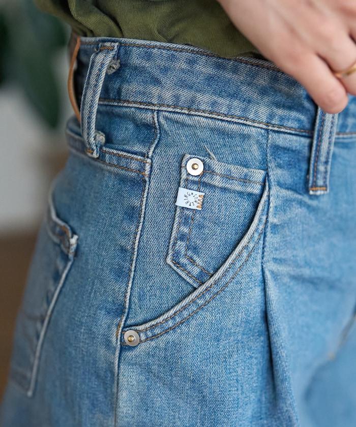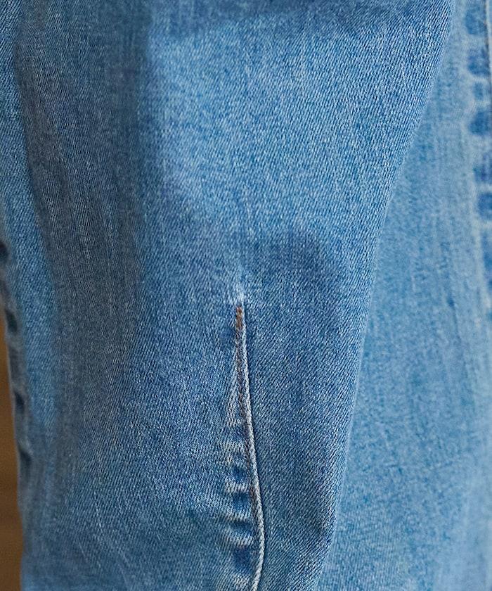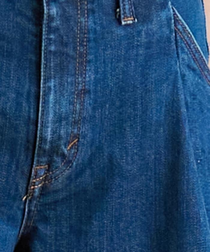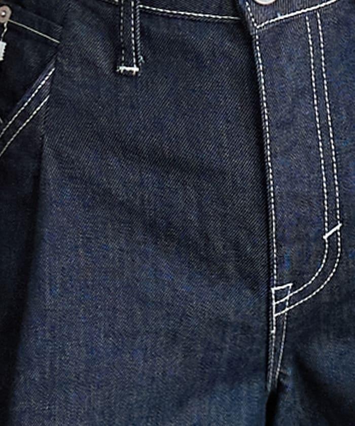 藍色經過生物處理,給人一種撞擊的感覺,然後再加上米色染料,使其呈現出深靛藍色。