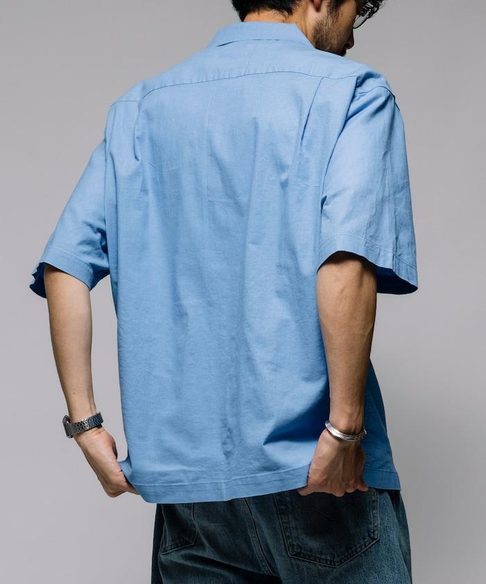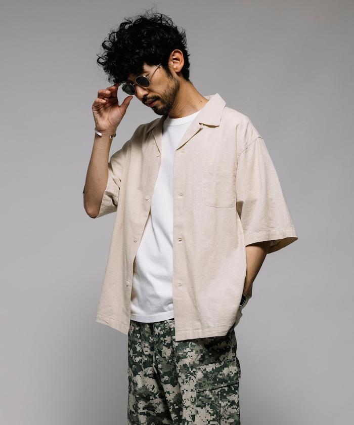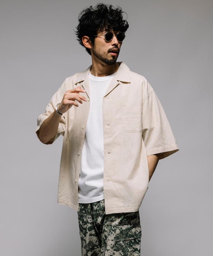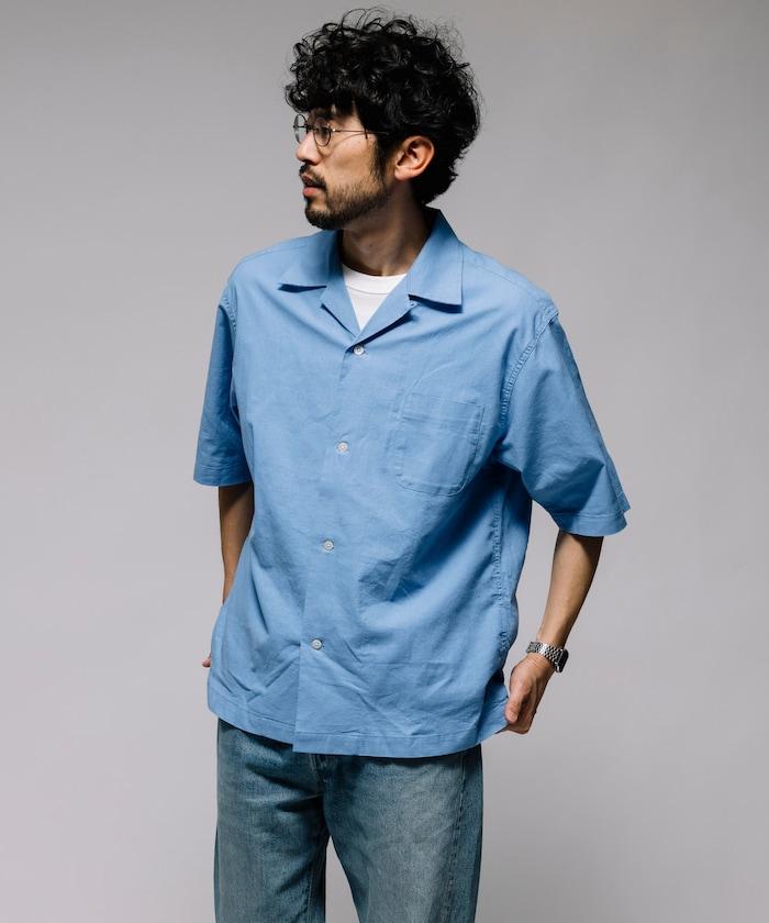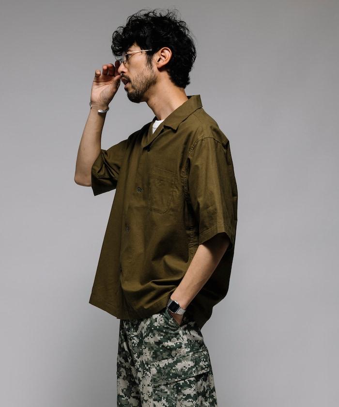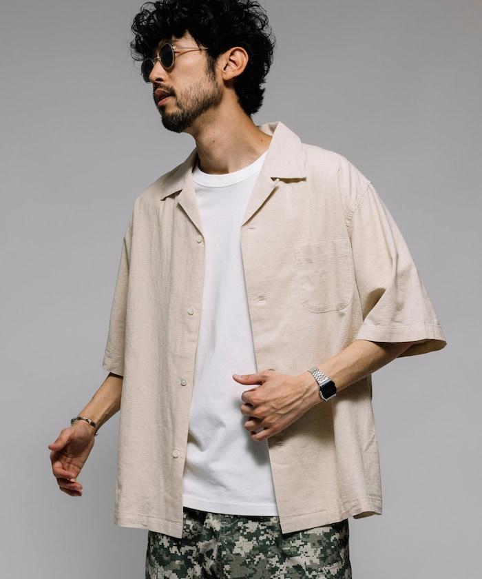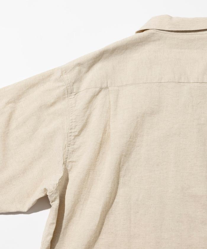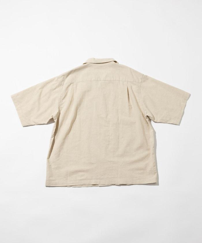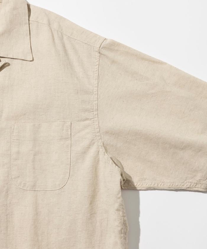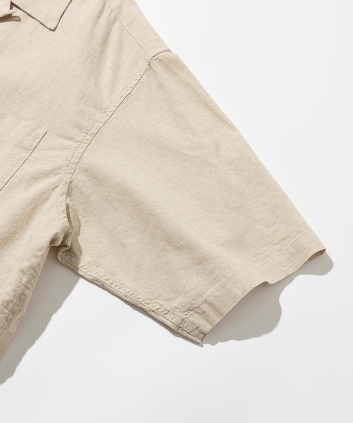 短袖開領襯衫由棉麻面料製成,手感涼爽乾爽。