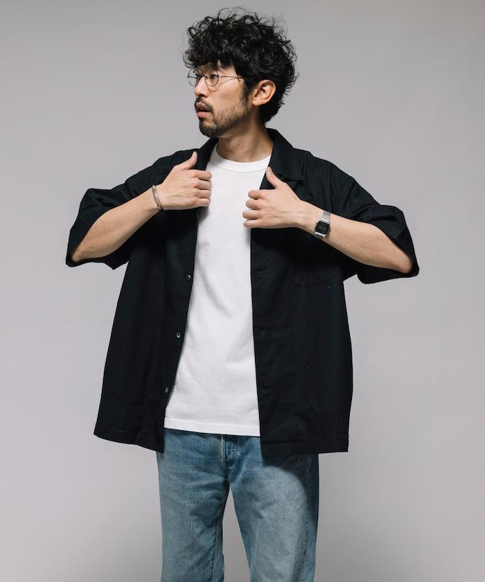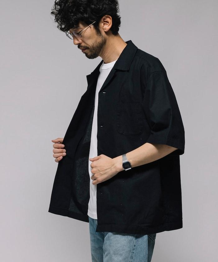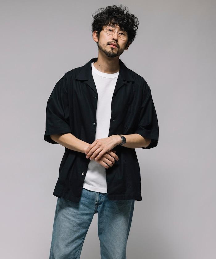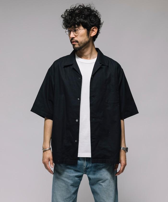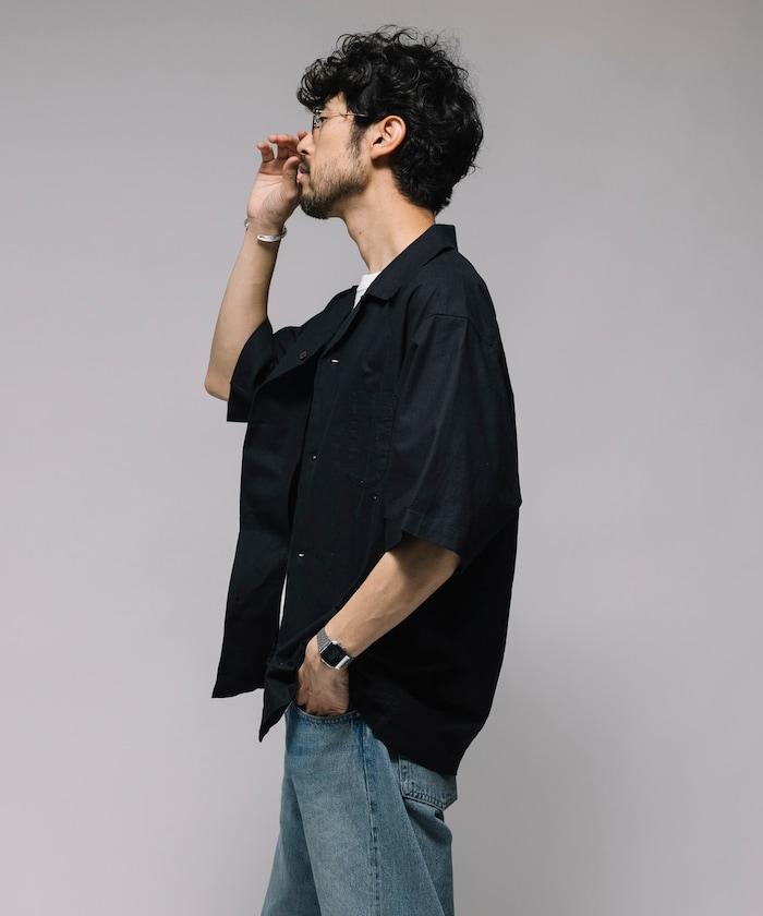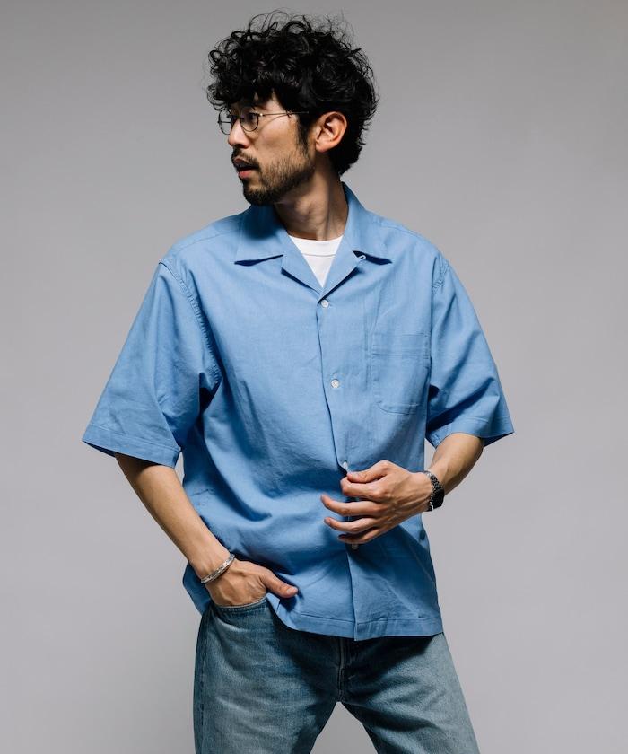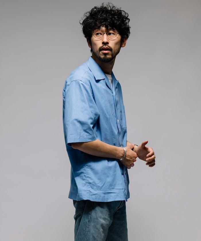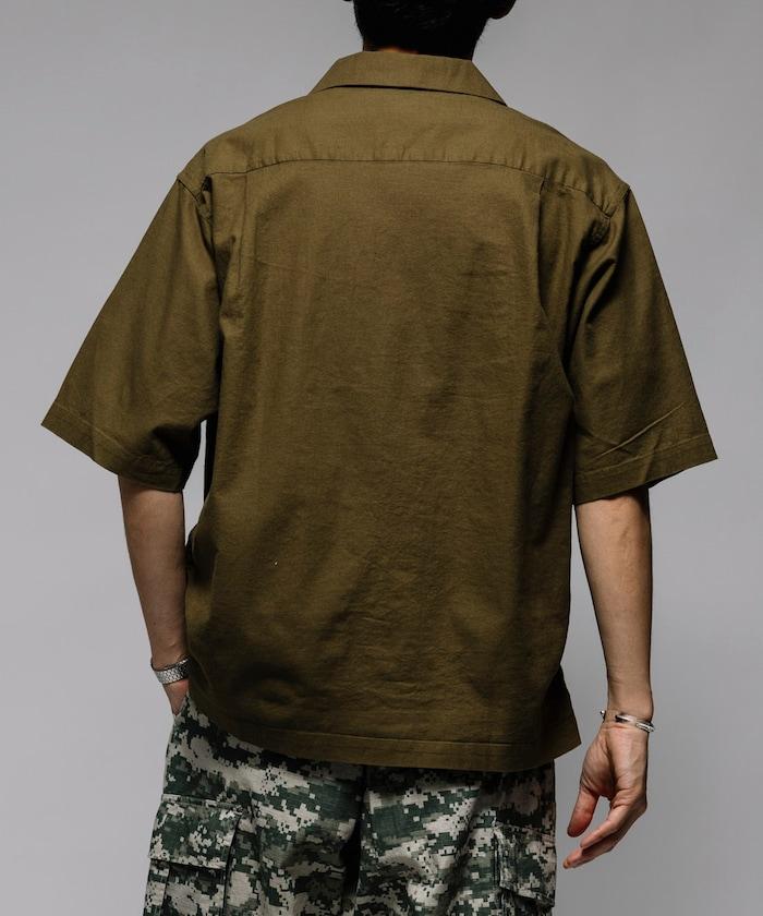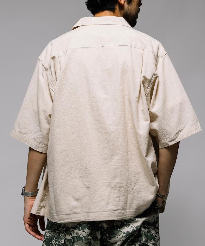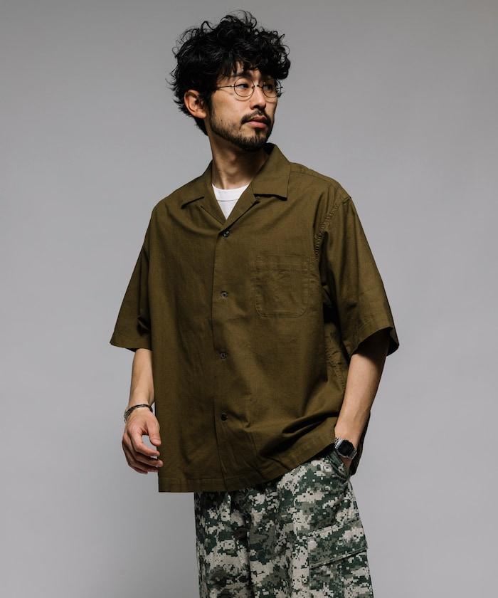 短袖開領襯衫由棉麻面料製成,手感涼爽乾爽。